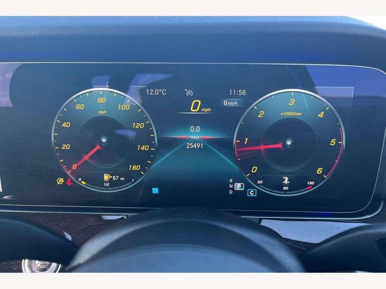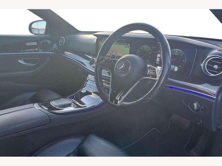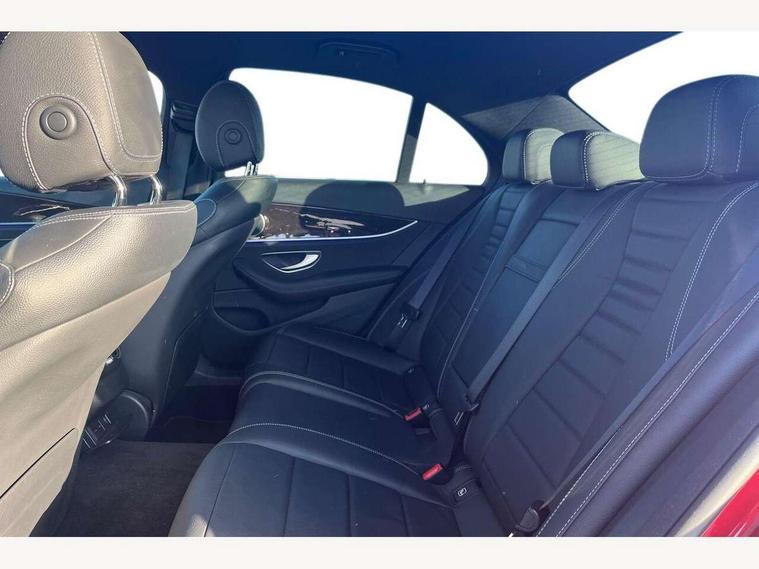 Attention assist, Blind spot assist, Brake wear warning display, Cockpit display 10.25" widescreen digital instrument cluster, Cruise control with variable speed limiter, Direct steer speed sensitive steering, DYNAMIC SELECT with a choice of driving modes (ECO, Comfort, Sport, Sport+ and Individual), ECO start/stop function, Emergency services call system, High resolution 10.25" multimedia colour display, MBUX voice control activated by keywords "Hey Mercedes", Mercedes connect me, Outside temperature display, Remote boot release, Service indicator (ASSYST), Smartphone integration via Android Auto/Apple CarPlay, Media Interface, USB and Bluetooth interface, Status display for rear seat belts in instrument cluster, Touchpad with controller, Traffic sign assist, Trip computer in multifunction display showing current fuel consumption, Wireless charging, 25 litre AdBlue tank, 66 litre fuel tank, 9G TRONIC 9 speed automatic transmission, Agility control sports suspension with selective damping system and lowered by 15mm, Diesel particulate filter, Incorrect fuelling protection, 2 USB ports in centre console, 2 USB ports in the rear, MBUX multimedia system with DAB digital radio and touchpad including satellite navigation, 3rd brake light, Adaptive brake lights, Aerial integrated in rear window, Body colour door mirrors, Chrome trim on the front bumper and high gloss black trim on the rear bumper, Electric windows with one touch opening/closing and obstruction sensors, Electrically adjustable and heated door mirrors, Green tinted glass, Illuminated front door sill panels with Mercedes-Benz lettering, LED High Performance headlamps including integral LED daytime running lamps and adaptive highbeam assist, LED rear lights, Pre-installation for roof rail systems, Radiator grille with chrome surround, two chrome louvres plus vertical bars with high-gloss black front edge and integral Mercedes star, Rain sensor with automatic headlight activation, Rear boot, Rear side wing doors, Tail lights, Top surround of side windows in polished aluminium, Visible twin pipe exhaust system integrated into bumper, 3 seat bench in 2nd row, 3 spoke multifunction steering wheel trimmed in nappa leather with touch control buttons, 40:20:40 split folding rear bench seat, Auto dual-zone climate control system, Automatic child seat recognition sensor, Black door pins, Central stowage compartment with 12 V socket in centre console, USB socket for use with Android Auto and Apple CarPlay, Courtesy lights in rear grab handles with reading light functionality, Four way partially front electric seat adjustment, Front centre armrest with stowage compartment, Glasses compartment in overhead control panel, Glove compartment - lockable, air conditioned and illuminated, Head restraints for driver and front passenger (four-way adjustability) and in rear (two-way), Heated front seats, Interior lighting - 64 colour Ambient lighting, Leather upholstery, Seat occupancy sensor for front passenger seat, Single front passenger seat, Steering column manually adjustable for height and reach, Steering wheel multifunction with gearshift paddles, Steering wheel touch control buttons for audio and onboard settings, Sunvisors with illuminated vanity mirrors, Velour floor mats, Mirror pack - E Class, Parking package with reversing camera - E Class, Seat comfort pack - E Class, Stowage pack - E Class, 3x3 point rear seatbelts, Active bonnet pedestrian safety measure which detects an impact and raises bonnet, Active brake assist, Adaptive brake system with HOLD function and brake drying in the wet, Airbags - sidebag for driver and front passenger with combined thorax/pelvis bag, Anti-lock braking system (ABS), Childproof locks manually operated for rear doors and electrically operated for rear power windows, Driver and adaptive front passenger airbags, Drivers knee airbag, Electronic parking brake, Electronic Stability Programme, Hill start assist, ISOFIX child seat attachment points two outer rear seats, Pre-Safe anticipatory safety system, Tyre pressure monitoring system, Warning triangle and first aid kit, Window airbags, Alarm system/interior protection/immobiliser, Central locking with interior switch, automatic locking and crash sensor with emergency opening function, Chrome surround in electric key, Keyless entry go starting function, Brown high glass ash wood trim and centre console in high gloss brown ash wood, 17" 5 spoke alloy wheels painted in black with a high-sheen finish, Summer tyres, TIREFIT with tyre inflation compressor,