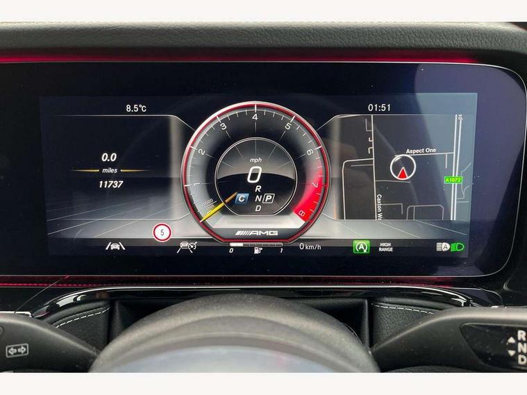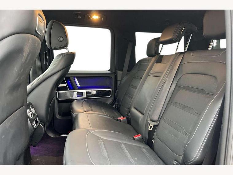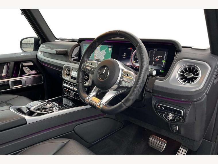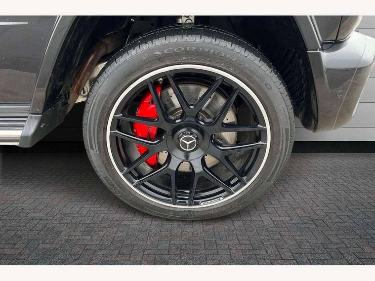 360 degree parking camera, Active lane keep assist, AMG DYNAMIC SELECT with ECO start/stop and 5 modes (comfort, slippery, sport, sport+ and manual), AMG instrument cluster with dual bonded 12.3" widescreen displays, AMG specific IWC design analogue clock, Attention assist, Bluetooth interface for hands free telephone, COMAND online HDD Nav with media interface, radio/CD/DVD/MP3, 12.3" screen, linguatronic voice control, Communications module (LTE), Mercedes connect me, Mercedes-Benz emergency call, Parking assistance PARKTRONIC, PAS, Preinstallation for rear seat entertainment, Service indicator (ASSYST), Smartphone integration with Apple CarPlay and Android auto, Touch pad controller for COMAND online, Traffic sign recognition, Trip computer, 4MATIC permanent four wheel drive, AMG Ride Control suspension, AMG SPEEDSHIFT 9G Tronic sports transmission with cruise control and variable speed limiter, Differential lock, Electronic selectable low range gearing, Low range gear reduction (Electronically selectable while driving), Petrol Particulate Filter, Aux-in socket, Burmester surround sound system with 16 speakers, DAB digital radio module, 3rd brake light, Adaptive highbeam assist plus - automatic low high beam switching, AMG bodystyling with exclusive Mercedes AMG G 63 front aprons with cooling air intakes and AMG flared wheel arches in vehicle colour, AMG performance exhaust system, selectable , left and right two chrome trimmed twin tailpipes, Automatic headlamp activation, Automatically dimming rear view mirror, Dark tinted heat insulated glass, Door mirror memory, Door mirrors - Electrically adjustable/heated/integrated indicators, front area lighting and automatically dimming driver's mirror, Electric sunroof sliding, with one-touch opening, Front and rear electric windows, Heated windscreen, LED daytime running lights, LED tail lights, Multibeam LED headlights with anti-dazzle feature, Privacy glass - Dark glass from B-pillar backwards, Rain sensor windscreen wipers, Rear side wing doors, Rear wiper, Running boards, Stainless steel spare wheel cover, Tail lights featuring LED technology, Trailer coupling with ESP trailer stabilisation, V8 BITURBO lettering, 1/3 to 2/3 split folding rear seats, 12V socket in centre console, rear and load compartment, 2 cup holders in front and rear, 3 seat bench in 2nd row, 3 spoke flat bottom AMG Performance steering wheel in nappa leather, Ambient lighting with 64 colours and projection of brand logo, AMG floor mats with AMG lettering, AMG metal badge on front seat backrest, AMG steering wheel buttons, Centre armrest between front seats with integrated stowage compartment, Designo dinamica microfibre roof lining in Black, Door centre panels, door trim, armrests in doors with nappa leather, Electric front headrests with memory, Electric front seats with memory function, Electrically adjustable steering column, with automatic adjustment for entry/exit, Front centre armrest with storage compartment, Heated front seats, Heated rear seats, Heated steering wheel, Illuminated AMG door sill panels in brushed stainless steel, Ionisation of interior air including fine particle activated charcoal filter system, Load protection net, Luggage compartment cover, Memory for steering wheel, Rear head restraints, Rubber mat for load compartment, Silver air vents, Silver chrome steering wheel trim with AMG lettering + silver aluminium shift paddles + 12 o clock marking and touch control buttons, Single front passenger seat, THERMOTRONIC automatic climate control, Driving assistance pack - G Class, Stowage space pack - G class, 3x3 point rear seatbelts, ABS with Brake Assist, Active brake assist, Adaptive brake with hold finction, priming and dry parking in the wet, Airbags - windowbags, AMG high performance braking system with internally ventilated and perforated brake discs, Driver/Front Passenger airbags, Electronic four wheel traction control, ESP with ASR, Front side airbags, Hill start assist, i-Size and ISOFIX rear child restraint system, Pre-safe system for anticipatory occupant protection, Rear door child safety locks, Rear side airbags, Red painted AMG brake calipers, Seat belts, 3-point design in black, Seatbelt pretensioners, Tyre pressure monitoring system, Anti-theft alarm system/interior protection with tow-away protection and interior monitoring systems, Immobiliser, Keyless Go access/ignition system, Remote central locking, G manufaktur black piano lacquer trim, Full size spare wheel,