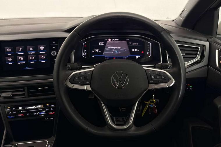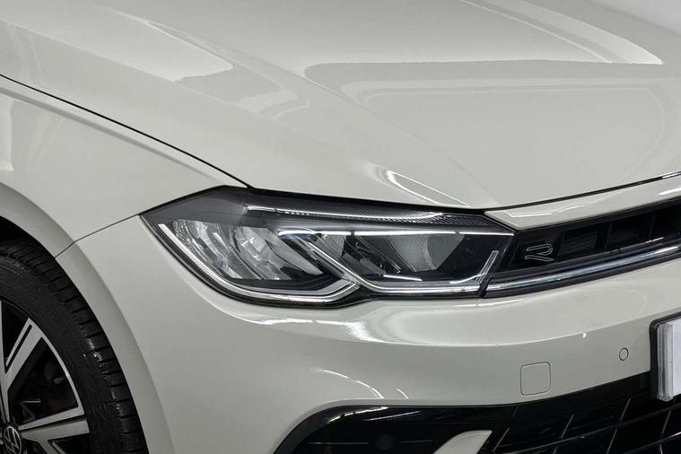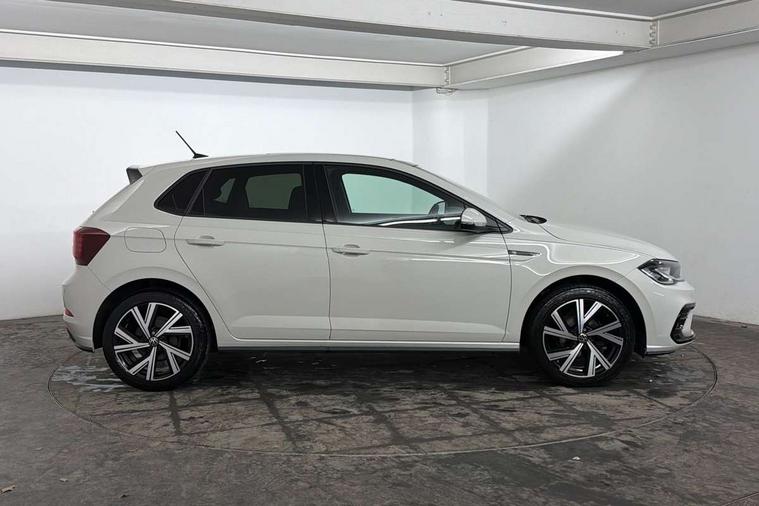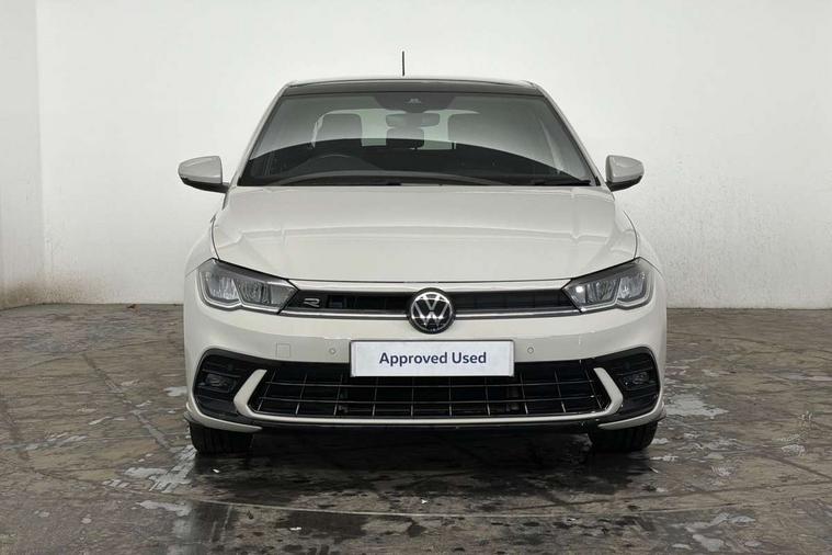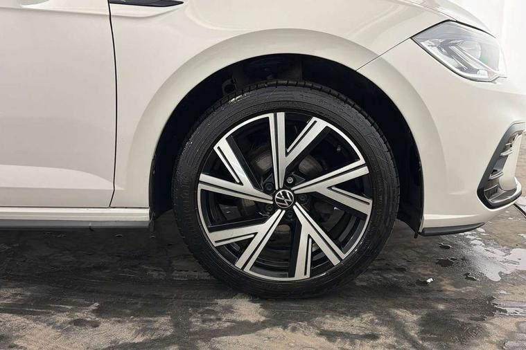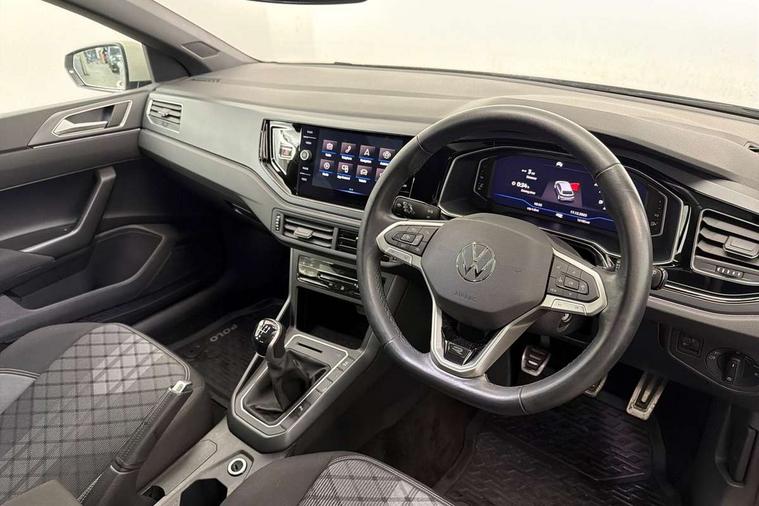 Adaptive cruise control without follow-to-stop and speed limiter, Bluetooth mobile phone interface, Digital Cockpit Pro with 10.25" Display, Driver alert system, Dynamic road sign display, Emergency call service, Power assisted speed sensitive steering, Preparation for We connect and We connect plus, Speedo and rev counter, electronic odometer, trip, service interval display and fuel gauge, Standard rear axle, Travel Assist - Lane keeping system and traffic jam assist, Travel assist including emergency assist, Trip computer, Warning signal and warning light for front and rear seatbelts not fastened, Washer fluid level indicator, Wireless app connect, Front wheel drive, Rear shock absorpion, Start-stop system with battery regeneration (recuperation - energy recovery during braking), DAB Digital radio, Diversity antenna for FM reception, Front and rear 6 speakers, Body colour bumpers, Body colour door handles, Electric front windows, Front scuff plates with R-Line logo, Heat insulating darkened glass in side and rear windows, Heat insulating glass windscreen, Power folding adjustable/heated exterior mirrors and front passenger exterior mirror lowering function, Rear electric windows, Rear fog light, Rear side wing doors, Rear windscreen washer and wiper with interval delay, Third brake light, 12V power socket in centre console, 2 USB-C ports in the front, 2 USB-C charging sockets on the center console in the rear, 3 rear head restraints, 60/40 split folding rear seat and rear seat bench not split, Air care climatronic air conditoning system with active combination filter and 2-zone temperature control, Black roof lining, Chrome plated radiator grille inserts, air vent surrounds and light switch surrounds, Door and side trim panel, Driver and front passenger seat height adjustment, Driver/passenger sunvisors with illuminated vanity mirrors, Front + rear carpet mats in recycled material, Front centre armrest, Front footwell illumination, Front seat backrest storage pockets, Front sports comfort seats, Handbrake lever handle in leather, Headliner in recycled material, Isofix child seat preparation easy-fit (for two outer rear seats, and front passenger seat) compatible with I-size, Karoso artvelours cloth upholstery, Leather trimmed gear knob, LED interior light with switch off delay and dimmer, 2 reading lights front and rear, Luggage compartment cover, Luggage compartment floor, Luggage compartment lighting, Lumbar adjustment for front seats, Multifunction steering wheel, Single front passenger seat, Stainless steel pedals, Standard pedal cluster, Light and sight pack - Polo R-Line/Black Edition, 3 point height adj front seatbelts + pretensioners, 3x3 point rear seatbelts, ABS, Driver and front passenger airbag with front passenger airbag deactivation, Drivers and front passengers safety optimised head restraints, ESC (Electronic stability control) + EDL (Electronic Differntial lock) and ASR (Traction control), Extended and predictive pedestrian/ cyclist protection, Front curtain and side airbags with center airbag, Hill hold control, Manual child lock in rear doors, Single tone horn, Tyre pressure loss indicator, Alarm with interior protection, Anti-theft alarm system with interior monitoring, backup horn, and towing protection, Anti-theft wheel bolts, Electronic engine immobiliser, Chrome applications on rotary light, mirror adjustment, window regulator switches, outlet with frame in black, Dark grey anodised matt decorative inserts in dash and front door panels, Low rolling resistance tyres,