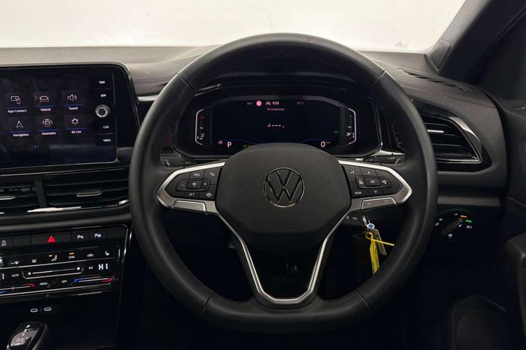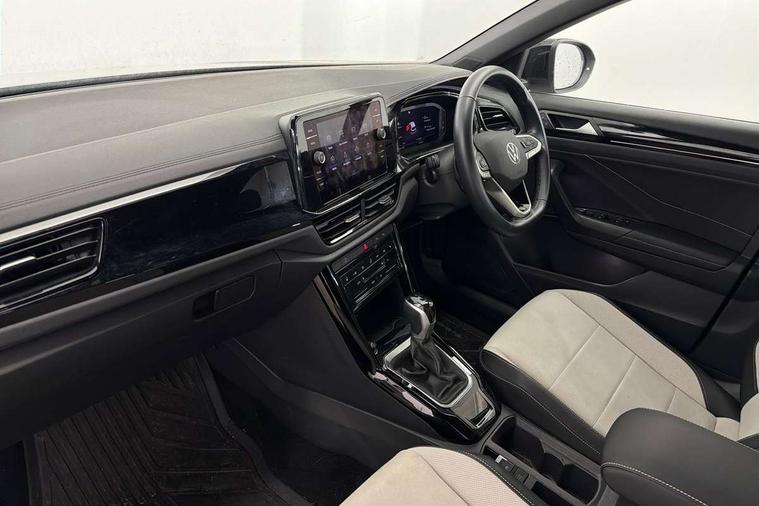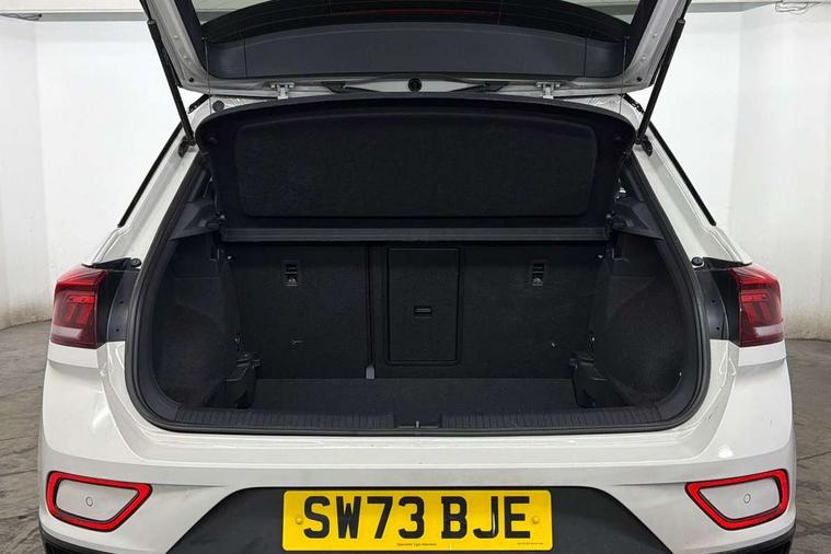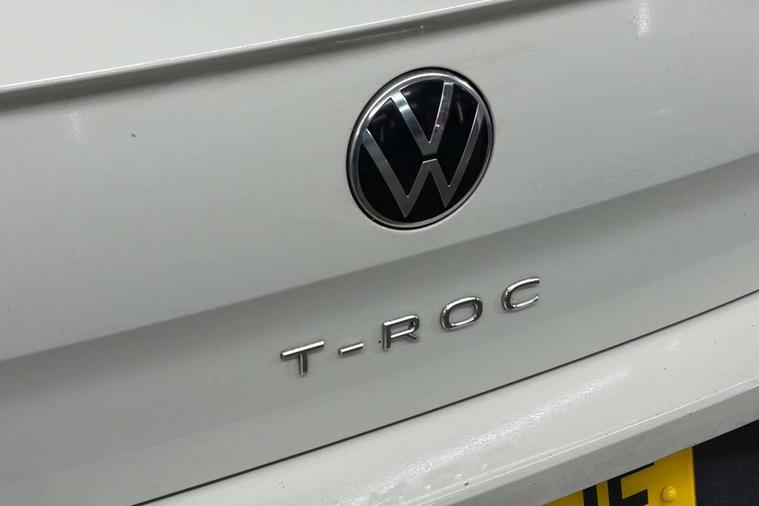 10.25" Digital cockpit pro, Bluetooth mobile phone interface, Driver alert system with fatigue detection, Driver tips and journey analysis, Emergency call service, Lane keeping system Lane Assist, Modified key software - reduce switch off time for key status change to Long no motion, Online services, Park assist including front and rear parking sensors, Service interval indicator, Tailgate/trunk lid release from outside, Think blue trainer driver tips and journey analysis, Warning sound and light for front seatbelts unfastened, Wireless app connect, Battery regeneration during braking, Start/stop function with battery regeneration, Diversity antenna for FM reception, Music playback - MP3, WMA and AAC files, Premium USB cable in choice of either Apple or Android smartphone compatibility, SD card slot, Simultaneous pairing of 2 compatible mobile devices, Title and cover art display, We Connect and We Connect Plus functionality, 3rd brake light, Auto dimming interior rear view mirror, Automatic hazard lights activation under emergency braking, Automatic headlight control with LED separate daytime running lights with coming/leaving home function, Body colour sports bumpers with silver metallic underbody fascia, Dynamic headlight range control with self adjusting whilst driving, Extended roof spoiler, Exterior mirrors aspherical on driver side, convex on front passenger side, External USB type C socket and charging sockets, Front windscreen wiper with intermittent wipe and 4 position delay, Heated rear window, LED rear combination lamps, LED rear number plate lights, LED tail lamp rear comination lamps, Light mode for poor weather, rain, fog or snow, Power windows with comfort operation and circuit breaker, Rain sensor, Rear exhaust tailpipe, Rear fog light on one side and reversing lights on both sides, Rear side wing doors, Rear wash/wipe with intermittent wipe setting, Remote electrically foldable door mirrors, puddle lights and reverse activated passenger's door mirror, 12V power socket in centre console, 3 rear head restraints, 3 seat bench in 2nd row, 4 load lashing points in luggage compartment, Air care climatronic air conditoning system with active combination filter and 2-zone temperature control, Chrome plated radiator grille inserts, air vent surrounds and light switch surrounds, Door and side trim panel with leatherette insert, Drawer under drivers seat, Front + rear carpet mats, Front centre armrest, Front comfort sports seats, Front cupholders x 2, Front footwell illumination, Instrument lighting, white adjustable panel illumination, Interior ambient lighting and surround lighting, Interior light delay, Isofix child seat preparation, Leather gearshift handle, LED interior light with switch off delay/dimmer and 2 front/rear LED reading lights, Load-through provision with cup holder when folded down ('Unsplit rear seat bench, split folding backrest, with centre armrest), Luggage compartment lighting, Non-folding front passenger seat backrest, Single front passenger seat, Storage compartment in left and right luggage area, Storage compartment in rear doors, Storage compartments in driver and front passenger doors, Sunvisors with illuminated vanity mirrors, Variable boot floor, height adjustable and removable, Driver assistance pack without proactive passenger protection - T-Roc, 3 point height adj front seatbelts + pretensioners, 3 point seatbelts in outer rear with ECE label, ABS, Child locks on rear doors, Driver and front passenger airbag with front passenger airbag deactivation, Driver and front passenger safety-optimised head restraints, Drivers seatbelt reminder, Electronic parking brake, Electronic Stability Control (ESC) inc EDL (Electronic Differential Lock) and ASR (Traction Control), Front and rear passengers curtain airbag system including front side airbags, Front assist with city emergency braking and pedestrian monitoring, Front seat side impact airbags, Predictive pedestrian protection, Rear disc brakes, Single tone horn, Tyre pressure loss indicator, Volkswagen roadside assistance, Anti-theft alarm system with interior monitoring, backup horn, and towing protection, Remote central locking with SAFELOCK, radio remote control with 2 remote control folding keys, Trims for alloy wheels,