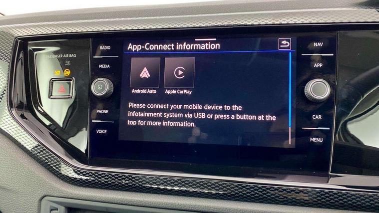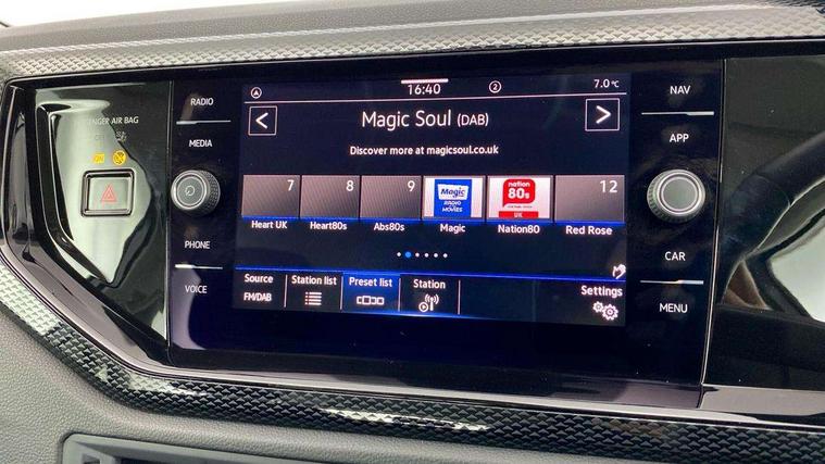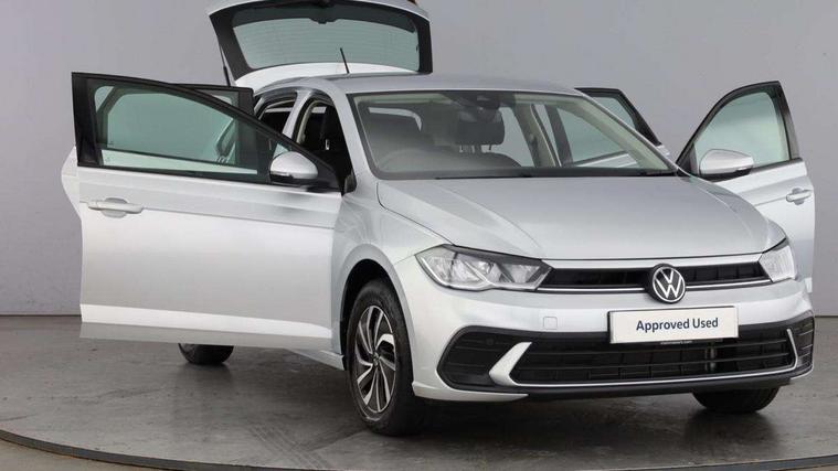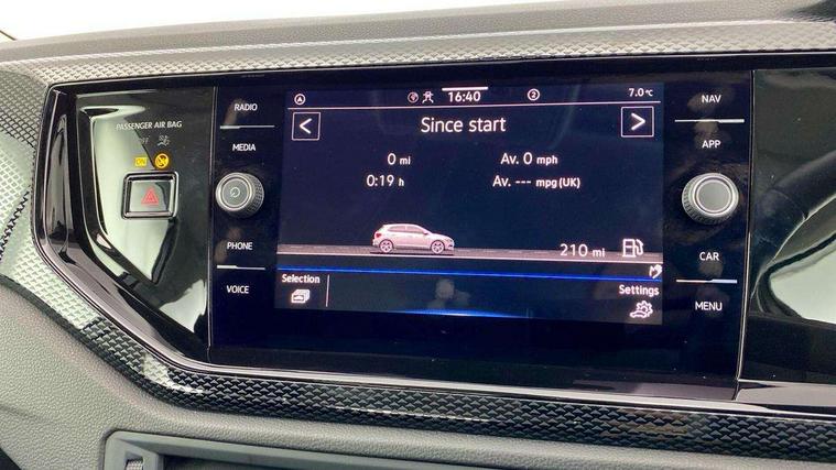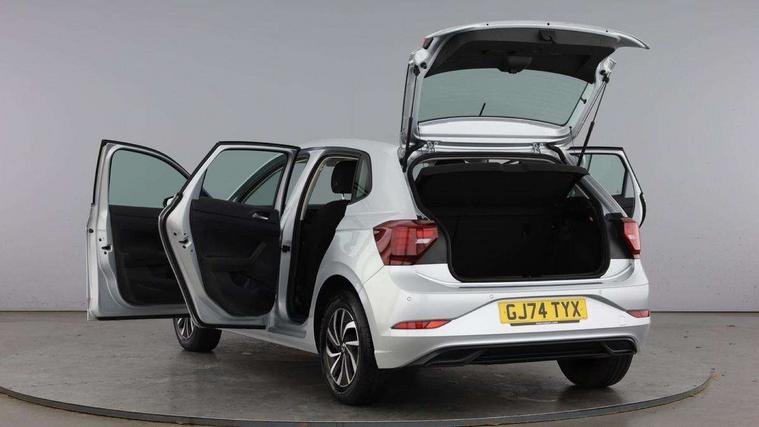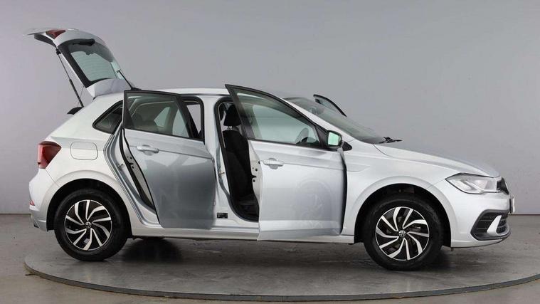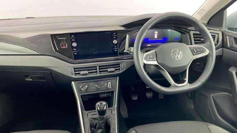Advanced driver attention and drowsiness monitor, Bluetooth mobile phone interface, Cruise control + speed limiter, Dynamic road sign display, Emergency call service, Lane keeping system Lane Assist, Multifunction camera, Power assisted speed sensitive steering, Preparation for navigation system with media and internet package, Preparation for We connect and We connect plus, Speedo and rev counter, electronic odometer, trip, service interval display and exterior temperature gauge, Standard rear axle, Trip computer, Warning signal and warning light for front and rear seatbelts not fastened, Washer fluid level indicator, Wireless app connect, Front wheel drive, Rear shock absorpion, Start-stop system with battery regeneration (recuperation - energy recovery during braking), DAB Digital radio, Diversity antenna for FM reception, Front and rear 6 speakers, Automatic dimming interior rear view mirror, Automatic headlight control with LED separate daytime running lights with coming/leaving home function, Body colour bumpers with chrome inserts, Body colour door handles, Body colour door mirrors, Electric front windows, Engine badge deletion, Headlight range adjustment, Heat insulating and laminated safety glass windshield, Heat insulating darkened glass in side and rear windows, LED Headlights, LED rear combination lamps, Power folding adjustable/heated exterior mirrors and front passenger exterior mirror lowering function, Rain sensor, Rear electric windows, Rear fog light, Rear side wing doors, Rear windscreen washer and wiper with interval delay, Third brake light, 12V power socket in centre console, 2 front and 2 rear reading lights with switch off delay and dimmer, 2 USB-C ports in the front, 2 USB-C charging sockets on the center console in the rear, 3 rear head restraints, 60/40 split folding rear seat and rear seat bench not split, Ceramique roof lining, Chrome plated radiator grille inserts, air vent surrounds and light switch surrounds, Door and side trim panel, Driver and front passenger seat height adjustment, Driver/passenger sunvisors with illuminated vanity mirrors, Front centre armrest, Front seat backrest storage pockets, Front standard seats, Handbrake lever handle in leather, Hartley/Thomas cloth upholstery, Headliner in recycled material, Isofix child seat preparation easy-fit (for two outer rear seats, and front passenger seat) compatible with I-size, Leather trimmed gear knob, Luggage compartment cover, Luggage compartment lighting, Removable luggage compartment floor, Single front passenger seat, Standard climatic zones, Standard pedal cluster, Three spoke leather wrapped multifunction steering wheel, Light and vision pack - Polo, 3 point height adj front seatbelts + pretensioners, 3x3 point rear seatbelts, ABS, Driver and front passenger airbag with front passenger airbag deactivation, Drivers and front passengers safety optimised head restraints, ESC (Electronic stability control) + EDL (Electronic Differntial lock) and ASR (Traction control), Extended and predictive pedestrian/ cyclist protection, Front assist with autonomous emergency braking (for Adaptive Cruise Control ACC up to 130 mph), Front curtain and side airbags with center airbag, Front disc brakes, Hill hold control, Manual child lock in rear doors, Rear drum brakes, Single tone horn, Tyre pressure loss indicator, Alarm with interior protection, Anti-theft alarm system with interior monitoring, backup horn, and towing protection, Anti-theft wheel bolts, Electronic engine immobiliser, Lava stone black gloss/matt decorative inserts in dash and front door panels, Low rolling resistance tyres,
