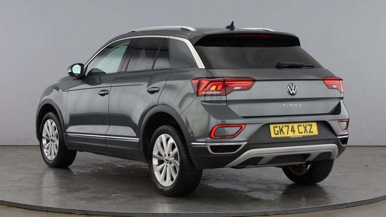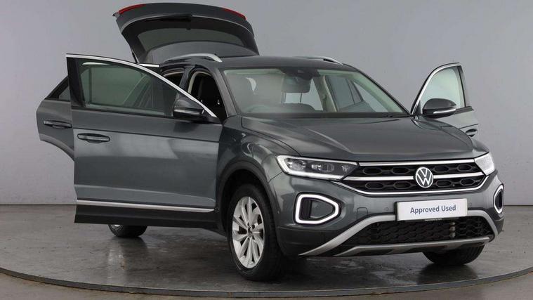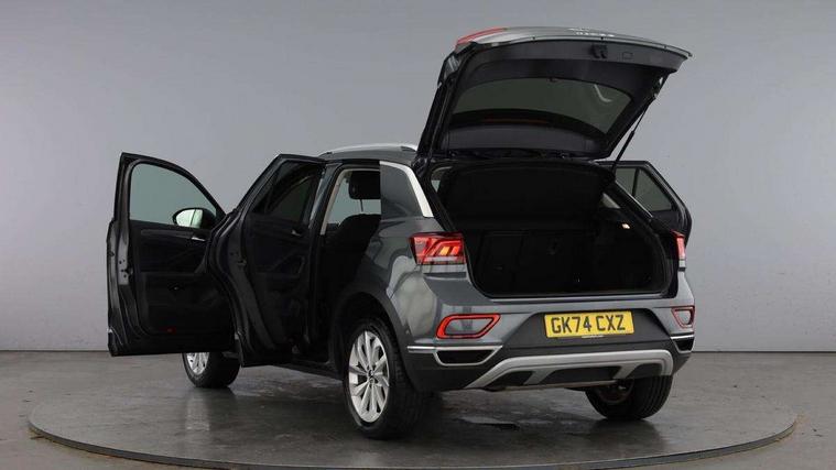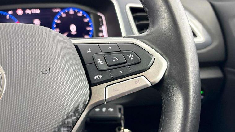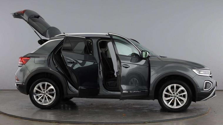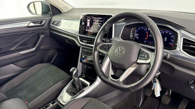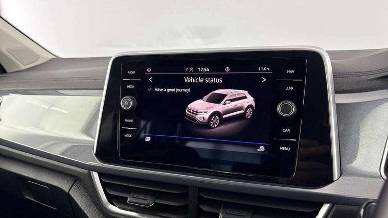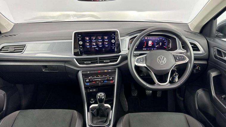 10.25" Digital cockpit pro, Advanced driver attention and drowsiness monitor, Emergency call service, Lane keeping system Lane Assist, Mobile phone interface, Modified key software - reduce switch off time for key status change to Long no motion, Online services, Park assist including front and rear parking sensors, Power assisted speed sensitive steering, Service interval indicator, Tailgate/trunk lid release from outside, Think blue trainer driver tips and journey analysis, Warning sound and light for front seatbelts unfastened, Wireless app connect, Wireless Smartphone charger, Battery regeneration during braking, Start/stop function with battery regeneration, DAB Digital radio, Diversity antenna for FM reception, Front and rear 6 speakers, Music playback - MP3, WMA and AAC files, Premium USB cable in choice of either Apple or Android smartphone compatibility, SD card slot, Simultaneous pairing of 2 compatible mobile devices, Title and cover art display, We Connect and We Connect Plus functionality, Auto dimming interior rear view mirror, Automatic hazard lights activation under emergency braking, Automatic headlight control with LED separate daytime running lights with coming/leaving home function, Body colour sports bumpers with silver metallic underbody fascia, Dynamic headlight range control with self adjusting whilst driving, Electrically adjustable and heated door mirrors, Extended roof spoiler, Exterior mirrors aspherical on driver side, convex on front passenger side, External USB type C socket and charging sockets, Front windscreen wiper with intermittent wipe and 4 position delay, Heated rear window, LED 3rd brake light, LED rear combination lamps, LED rear number plate lights, Light mode for poor weather, rain, fog or snow, Power windows with comfort operation and circuit breaker, Rain sensor, Rear exhaust tailpipe, Rear fog light on one side and reversing lights on both sides, Rear side wing doors, Rear wash/wipe with intermittent wipe setting, Remote electrically foldable door mirrors, puddle lights and reverse activated passenger's door mirror, 12V power socket in centre console, 3 rear head restraints, 3 seat bench in 2nd row, 4 load lashing points in luggage compartment, Air care climatronic air conditoning system with active combination filter and 2-zone temperature control, Chrome plated radiator grille inserts, air vent surrounds and light switch surrounds, Door and side trim panel with leatherette insert, Drawer under drivers seat, Front + rear carpet mats, Front centre armrest, Front comfort sports seats, Front cupholders x 2, Front footwell illumination, Front seat back storage pockets, Glove compartment door with light, Instrument lighting, white adjustable panel illumination, Interior ambient lighting and surround lighting, Interior light delay, Isofix child seat preparation, Leather gearshift handle, LED interior light with switch off delay/dimmer and 2 front/rear LED reading lights, Load-through provision with cup holder when folded down ('Unsplit rear seat bench, split folding backrest, with centre armrest), Luggage compartment lighting, Non-folding front passenger seat backrest, Single front passenger seat, Storage compartment in left and right luggage area, Storage compartment in rear doors, Storage compartments in driver and front passenger doors, Sunvisors with illuminated vanity mirrors, Variable boot floor, height adjustable and removable, Driver assistance pack without proactive passenger protection - T-Roc, 3 point height adj front seatbelts + pretensioners, 3 point seatbelts in outer rear with ECE label, ABS, Child locks on rear doors, City emergency braking and pedestrian monitoring, Driver and front passenger airbag with front passenger airbag deactivation, Driver and front passenger safety-optimised head restraints, Drivers seatbelt reminder, Electronic parking brake, Electronic Stability Control (ESC) inc EDL (Electronic Differential Lock) and ASR (Traction Control), Front and rear passengers curtain airbag system including front side airbags, Predictive pedestrian protection, Rear disc brakes, Two tone horn, Tyre pressure loss indicator, Volkswagen roadside assistance, Trims for alloy wheels,