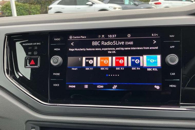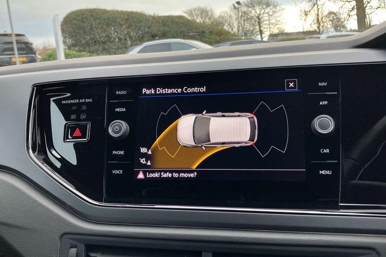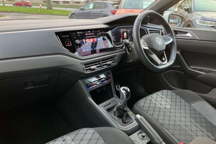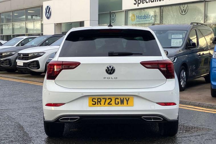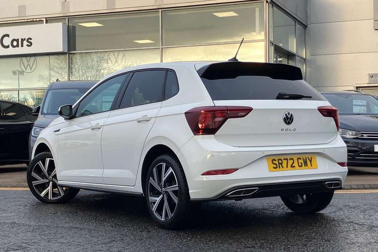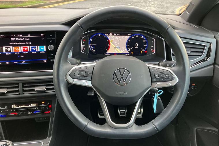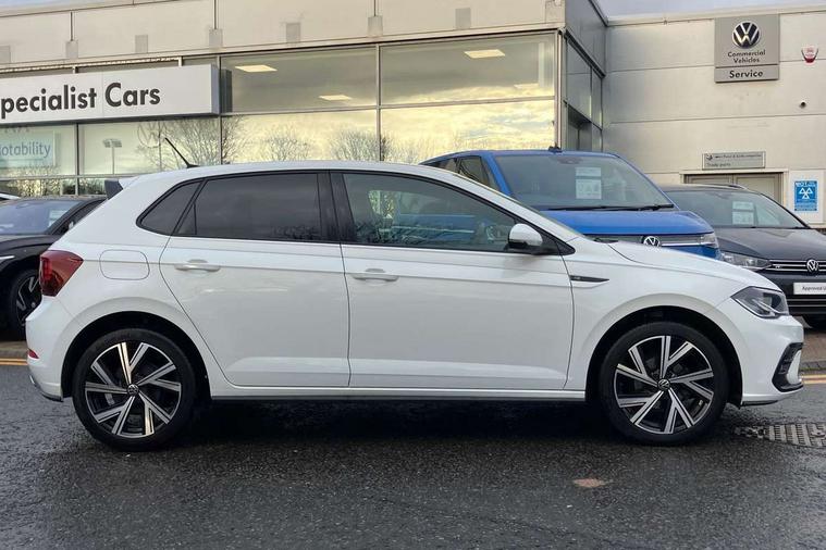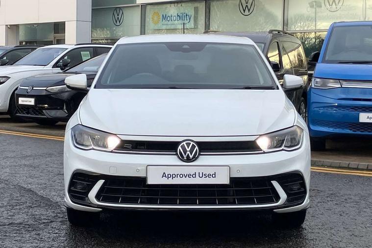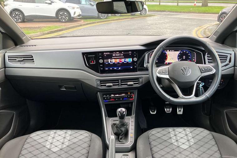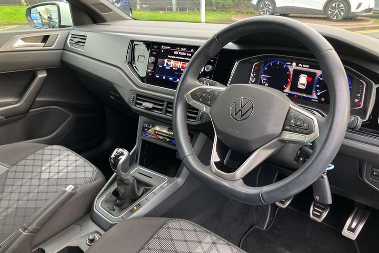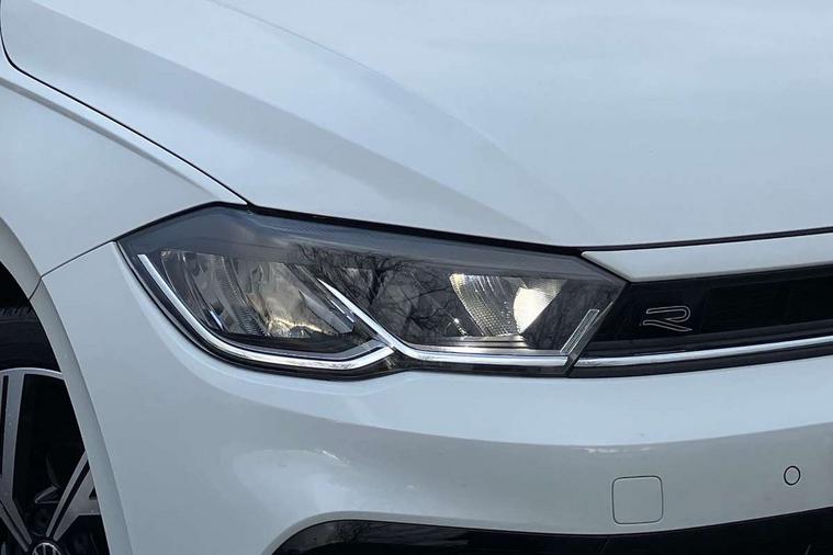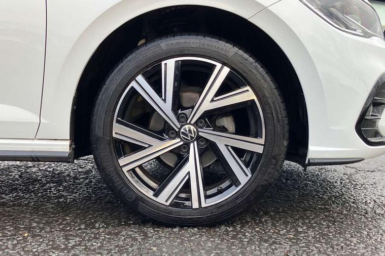 Adaptive cruise control without follow-to-stop and speed limiter, Bluetooth mobile phone interface, Digital Cockpit Pro with 10.25" Display, Driver alert system, Dynamic road sign display, Emergency call service, Power assisted speed sensitive steering, Preparation for We connect and We connect plus, Speedo and rev counter, electronic odometer, trip, service interval display and fuel gauge, Standard rear axle, Travel Assist - Lane keeping system and traffic jam assist, Travel assist including emergency assist, Trip computer, Warning signal and warning light for front and rear seatbelts not fastened, Washer fluid level indicator, Wireless app connect, Front wheel drive, Rear shock absorpion, Start-stop system with battery regeneration (recuperation - energy recovery during braking), DAB Digital radio, Diversity antenna for FM reception, Front and rear 6 speakers, Body colour bumpers, Body colour door handles, Electric front windows, Front scuff plates with R-Line logo, Heat insulating darkened glass in side and rear windows, Heat insulating glass windscreen, Power folding adjustable/heated exterior mirrors and front passenger exterior mirror lowering function, Rear electric windows, Rear fog light, Rear side wing doors, Rear windscreen washer and wiper with interval delay, Third brake light, 12V power socket in centre console, 2 USB-C ports in the front, 2 USB-C charging sockets on the center console in the rear, 3 rear head restraints, 60/40 split folding rear seat and rear seat bench not split, Air care climatronic air conditoning system with active combination filter and 2-zone temperature control, Black roof lining, Chrome plated radiator grille inserts, air vent surrounds and light switch surrounds, Door and side trim panel, Driver and front passenger seat height adjustment, Driver/passenger sunvisors with illuminated vanity mirrors, Front + rear carpet mats in recycled material, Front centre armrest, Front footwell illumination, Front seat backrest storage pockets, Front sports comfort seats, Handbrake lever handle in leather, Headliner in recycled material, Isofix child seat preparation easy-fit (for two outer rear seats, and front passenger seat) compatible with I-size, Karoso artvelours cloth upholstery, Leather trimmed gear knob, LED interior light with switch off delay and dimmer, 2 reading lights front and rear, Luggage compartment cover, Luggage compartment floor, Luggage compartment lighting, Lumbar adjustment for front seats, Multifunction steering wheel, Single front passenger seat, Stainless steel pedals, Standard pedal cluster, Light and sight pack - Polo R-Line/Black Edition, 3 point height adj front seatbelts + pretensioners, 3x3 point rear seatbelts, ABS, Driver and front passenger airbag with front passenger airbag deactivation, Drivers and front passengers safety optimised head restraints, ESC (Electronic stability control) + EDL (Electronic Differntial lock) and ASR (Traction control), Extended and predictive pedestrian/ cyclist protection, Front curtain and side airbags with center airbag, Hill hold control, Manual child lock in rear doors, Single tone horn, Tyre pressure loss indicator, Alarm with interior protection, Anti-theft alarm system with interior monitoring, backup horn, and towing protection, Anti-theft wheel bolts, Electronic engine immobiliser, Chrome applications on rotary light, mirror adjustment, window regulator switches, outlet with frame in black, Dark grey anodised matt decorative inserts in dash and front door panels, Low rolling resistance tyres,