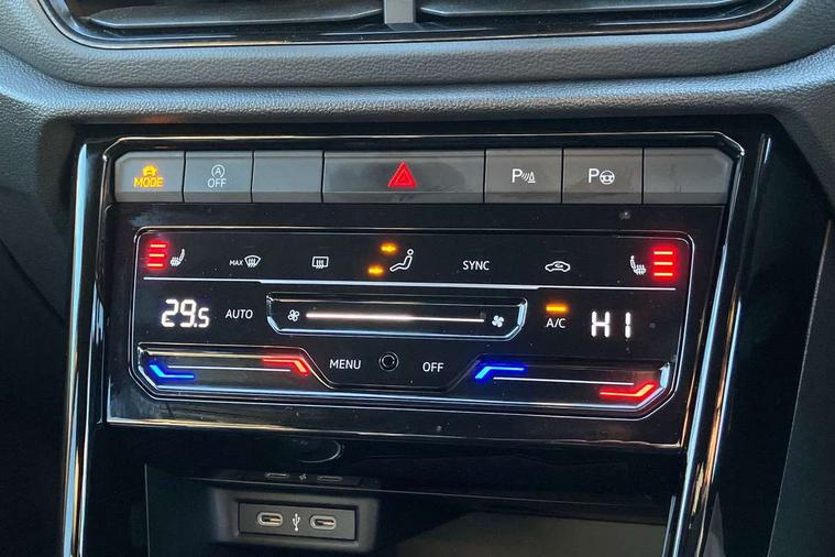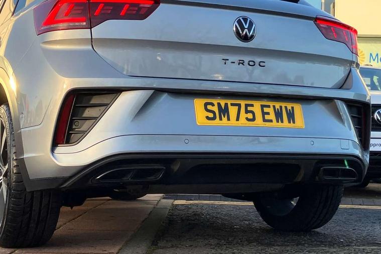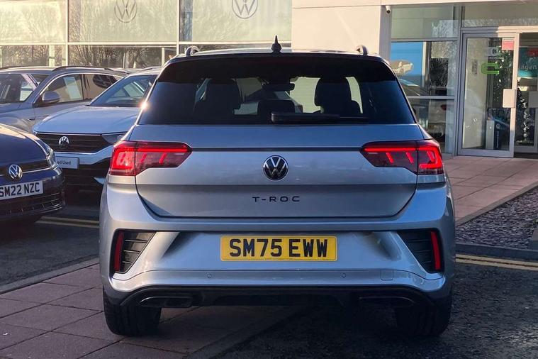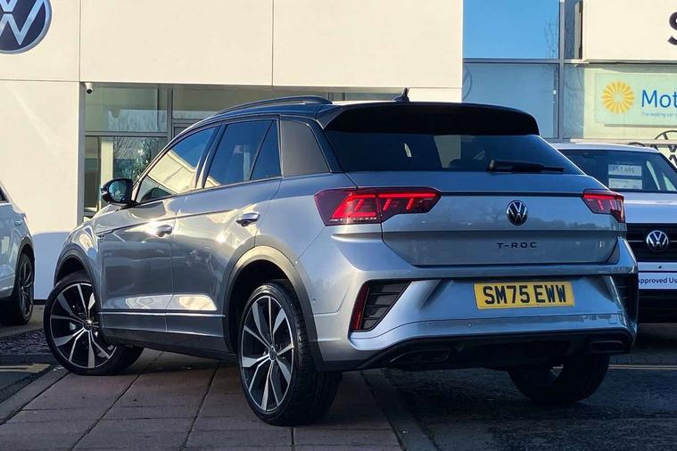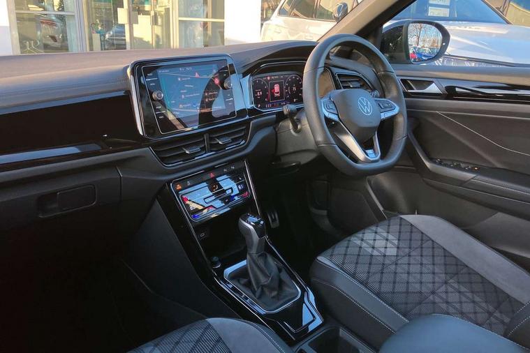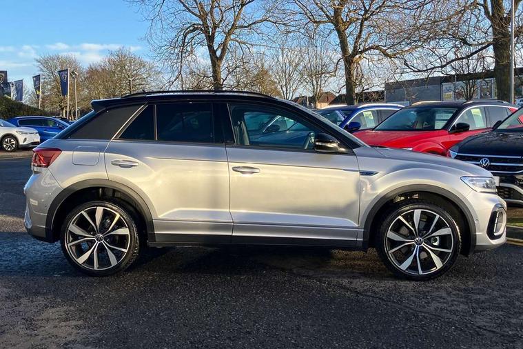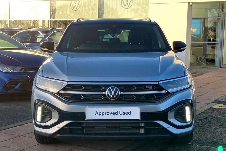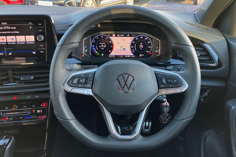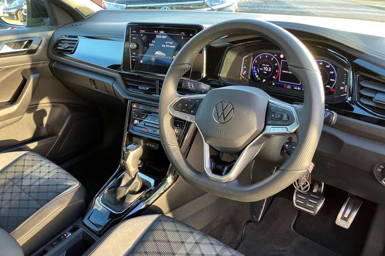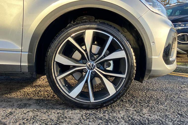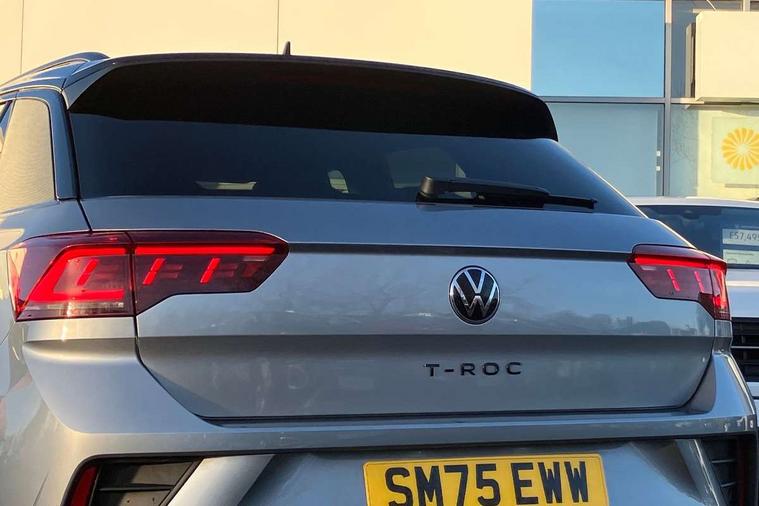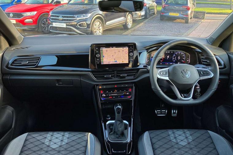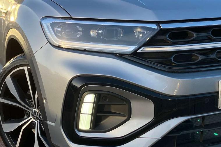 10.25" Digital cockpit pro, Advanced driver attention and drowsiness monitor, Emergency call service, Lane keeping system Lane Assist, Mobile phone interface, Modified key software - reduce switch off time for key status change to Long no motion, Online services, Park assist including front and rear parking sensors, Power assisted speed sensitive steering, Service interval indicator, Tailgate/trunk lid release from outside, Think blue trainer driver tips and journey analysis, Warning sound and light for front seatbelts unfastened, Wireless app connect, Battery regeneration during braking, Rear shock absorption chassis with increased ride height, Start/stop function with battery regeneration, DAB Digital radio, Diversity antenna for FM reception, Front and rear 6 speakers, Music playback - MP3, WMA and AAC files, Premium USB cable in choice of either Apple or Android smartphone compatibility, SD card slot, Simultaneous pairing of 2 compatible mobile devices, Title and cover art display, We Connect and We Connect Plus functionality, Auto dimming interior rear view mirror, Automatic hazard lights activation under emergency braking, Automatic headlight control with LED separate daytime running lights with coming/leaving home function, Dynamic cornering light, Electrically adjustable and heated door mirrors, Extended roof spoiler, Exterior mirrors aspherical on driver side, convex on front passenger side, External USB type C socket and charging sockets, Front windscreen wiper with intermittent wipe and 4 position delay, Heated rear window, Illuminated front grille, IQ LED matrix headlights, LED 3rd brake light, LED rear number plate lights, LED rear tail lights with dynamic turn signal, Light mode for poor weather, rain, fog or snow, Power windows with comfort operation and circuit breaker, R-Line design body coloured bumpers, Rain sensor, Rear exhaust tailpipe, Rear fog light on one side and reversing lights on both sides, Rear side wing doors, Rear wash/wipe with intermittent wipe setting, Remote electrically foldable door mirrors, puddle lights and reverse activated passenger's door mirror, 12V power socket in centre console, 3 rear head restraints, 3 seat bench in 2nd row, 4 load lashing points in luggage compartment, Air care climatronic air conditoning system with active combination filter and 2-zone temperature control, Artvelours cloth upholstery, Black roof lining, Chrome plated radiator grille inserts, air vent surrounds and light switch surrounds, Door and side trim panel with leatherette insert, Drawer under drivers seat, Driver seat height adjust, Driver's seat lumbar support, Front + rear carpet mats, Front centre armrest, Front comfort sports seats, Front cupholders x 2, Front footwell illumination, Front reading light, Front scuff plates with R Line logo, Front seat back storage pockets, Glove compartment door with light, Instrument lighting, white adjustable panel illumination, Interior ambient lighting and surround lighting, Interior light delay, Isofix child seat preparation, Leather gearshift handle, Leather wrapped multifunction steering wheel with paddle shift, Load-through provision with cup holder when folded down ('Unsplit rear seat bench, split folding backrest, with centre armrest), Luggage compartment lighting, Non-folding front passenger seat backrest, Passenger seat height adjuster, Passenger seat lumbar support, Single front passenger seat, Stainless steel pedals, Storage compartment in left and right luggage area, Storage compartment in rear doors, Storage compartments in driver and front passenger doors, Sunvisors with illuminated vanity mirrors, Variable boot floor, height adjustable and removable, Winter pack without heated windscreen washer jets - T-Roc, 3 point height adj front seatbelts + pretensioners, 3 point seatbelts in outer rear with ECE label, ABS, Child locks on rear doors, City emergency braking and pedestrian monitoring, Driver and front passenger airbag with front passenger airbag deactivation, Driver and front passenger safety-optimised head restraints, Drivers seatbelt reminder, Electronic parking brake, Electronic Stability Control (ESC) inc EDL (Electronic Differential Lock) and ASR (Traction Control), Front and rear passengers curtain airbag system including front side airbags, Front disc brakes, Hill start assist, Predictive pedestrian protection, Rear disc brakes, Two tone horn, Tyre pressure loss indicator, Volkswagen roadside assistance, Tool kit, Trims for alloy wheels, Tyre mobility kit including compressor and sealing foam,
