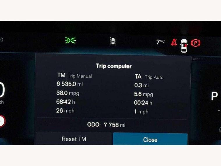 12.3" Progressive Driver Display, 360 degree surround view parking camera with side proximity sensors, 9" centre console touch screen, Adjustable steering wheel force, Android Auto, Apple CarPlay, Bluetooth handsfree system, Driver alert control with lane keeping aid, Driver assistance (pilot assist and adaptive cruise control), Driver awareness - Blind spot information system with steer assist, cross traffic alert with autobrake and rear collision warning and mitigation, E-call, Front and rear park assist, Google automotive services - Enabled entertainment apps, navigation with google maps, voice recognition with google assistant, Information centre, Intelligent speed assistance, Oncoming Lane Mitigation, Pilot assist, Power operated tailgate with handsfree opening and closing, Service interval indicator, Speed sensitive steering, Trip computer, Volvo cars services with app, Volvo on call app, Wireless/Inductive Mobile Phone Charging, Automatic transmission with start/stop and manual change functions, Dynamic chassis, DAB Digital radio, Premium sound by Harman Kardon, Dolby Pro Logic II surround sound, Dirac Unison, 13 speakers/600W and fresh air subwoofer, Steering wheel remote infotainment controls, Active bending headlights with adaptive shadow technology, Adaptive brake lights with high level LED brake lights, Auto dimming interior + exterior mirrors, Automatic headlight levelling system, Automatic LED Headlights + Active high beam incorporating daytime running lights, Dark tinted windows - rear side windows and rear screen, Front aluminium tread plates, Front and rear power windows, Headlight cleaning system, Heated front windscreen, High gloss black autofolding heated power door mirrors, High gloss black front and rear bumper deco, High gloss black mesh front grille with high gloss black surround, High gloss black window surround, Home safe and approach lighting, Integrated roof rails in high gloss black, LED front fog lights, Power glass tilt and slide panoramic sunroof with sun curtain, Puddle lights, Rain sensor with automatic windscreen wiper activation, Rear side wing doors, Rear wiper, Roof antenna, Roof spoiler, Variable front intermittent wipers, Visible VIN plate, 12V socket in front tunnel console and luggage compartment, 3 Spoke tailored steering wheel with chrome trim, 4 zone electronic climate control with Clean zone air quality system + pollen filter, 60/40 versatile split folding 3 bench rear seats in 2nd row, A-pillar parking ticket holder, Air purifier PM2.5, B Pillar ventilation, Bright metal luggage scuff plate, Centre console storage, Charcoal carpets and floor mats, Extended front seat cushions, Front and rear courtesy and front reading lights, Front cupholders, Front footwell illumination, Front head restraints, Front/rear door pockets and front cupholder illumination, Glovebox compartment with illumination, Heated front seats, Heated rear seats outer positions, Heated steering wheel, Height/reach adjustable steering column, Illuminated vanity mirrors + ticket holder, ISOFIX attachment on outer rear seats, Load cover, Load protection net, Luggage compartment divider with grocery bag holder, Luggage compartment illumination, Luggage compartment load hooks, Multi directional lumbar support, Power driver seat with memory + exterior mirrors memory, Power folding rear headrests, Power height adjustable passenger seat, Power passenger seat with memory, Rear armrest with cupholder, Rear footwell and front and rear side step illumination, Rear reading lights, Single front passenger seat, Tailgate illumination, Underfloor cargo storage, 5 x 3 point seatbelts, City safety with steering support with Pedestrian + cyclist + front collision warning with full auto brake and rear auto brake, Driver and passenger airbags, First aid kit, Front seats SIPS airbags, Hill start assist, IC (Inflatable Curtains) - Full Length, Passenger airbag cut-off switch, Power child locks on rear doors, Power parking brake with auto hold function, Road sign information display, Run off Road Mitigation, Run off Road Protection, Seatbelt reminder and pretensioners for all seats, SIPS (Side Impact Protection System), Slippery road and hazard light alert, Stability and Traction Control with Spin control, Engine Drag Control and Corner Traction Control, Tyre pressure monitoring system, Vehicle deceleration control with Anti-lock Brake System, Electronic Brake Distribution and Emergency Brake Assist, Warning triangle, WHIPS whiplash protection system - front, 2X Key integrated remote control central locking with deadlocking system and auto open/close power windows, Anti-theft alarm including immobiliser/volume sensor + level sensor, Care key with user defined top speed, Keyless drive includes keyless entry and keyless start, Locking wheel nuts, Private locking luggage compartment, 19" 5 Triple spoke diamond cut/black alloy wheels,