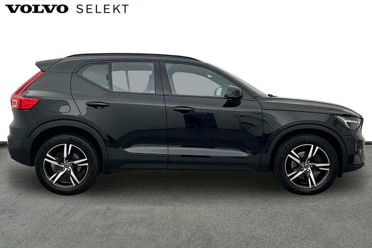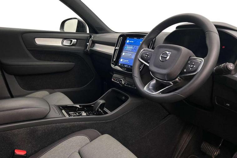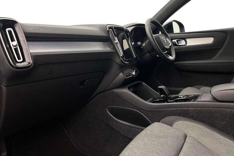 12.3" Progressive Driver Display, 9" centre console portrait touch screen, Adjustable steering wheel force, Bluetooth hands free telephone kit, E-call, eCall emergency call system, Front park assist, Google automatic services - Nav with google maps, apple carplay/android auto, voice recognition with google assistant, Hands free power tailgate, Lane keep assist with driver alert control, Oncoming Lane Mitigation, Rear park assist, Speed limiter, Speed sensitive steering, Wireless/Inductive Mobile Phone Charging, Dynamic chassis, DAB Digital radio, High performance sound, 8 speakers/250W, front USB and 2 rear type C USB, Steering wheel mounted remote controls, Adaptive brake lights with high level LED brake lights, Auto dimming interior mirror, Automatic headlamp levelling, Automatic LED Headlights + Active high beam incorporating daytime running lights, Front aluminium tread plates, Front and rear electric windows, High gloss black front and rear skid plate, High gloss black mesh front grille with high gloss black surround, High gloss black window trim, Home safe and approach lighting, Integrated roof rails in high gloss black, LED front fog lights, Puddle lights, Rain sensor with automatic windscreen wiper activation, Rear side wing doors, Rear wiper, Roof antenna, Roof spoiler, Visible VIN plate, 12V socket in front tunnel console and luggage compartment, 2-Zone electronic climate control with CleanZone air quality system and pollen filter, 3 seat bench in 2nd row, 3 Spoke tailored steering wheel with chrome trim, 60/40 versatile split folding rear seat, A-pillar parking ticket holder, Ambient front door and instrumental panel lighting, Centre console cupholders and storage, Flexible load floor and grocery bag holder, Floor mats, Front door pocket and front cupholder illumination, Front footwell illumination, Front headrests, Front reading light and theatre lighting, Front seat cushion extensions, Front tunnel pocket, Glovebox bag hook, Height adjustable passenger seat, Height/reach adjustable steering column, High gloss centre tunnel deco, Illuminated glovebox, Illuminated luggage compartment, Illuminated tailgate, Illuminated vanity mirrors, Integrated waste bin, Isofix attachments on outer rear seats, Load protection net, Multi directional lumbar support, Power driver seat with memory + exterior mirrors memory, Rear armrest / integral cup holders / storage tray, Rear headrests, Rear reading and courtesy lights, Single front passenger seat, Underfloor cargo storage, Climate pack - XC40, 3x3 point rear seatbelts, City safety with steering support with Pedestrian + cyclist + front collision warning with full auto brake and rear auto brake, Drivers knee airbag, Dual stage driver/passenger airbags, Electronic parking brake with auto hold, First aid kit, Front and outer rear seatbelt reminder and pretensioners, Front seats SIPS airbags, Hill descent control, Hill start assist, Inflatable curtain, Passenger airbag cut-off device, Power child locks on rear doors, Road sign information display, Run off Road Mitigation, Run off Road Protection, SIPS (Side Impact Protection System), Slippery road and hazard light alert, Stability and Traction Control with Spin control, Engine Drag Control and Corner Traction Control, Tyre pressure monitoring system, Vehicle deceleration control with Anti-lock Brake System, Electronic Brake Distribution and Emergency Brake Assist, Warning triangle, WHIPS whiplash protection system - front, Anti-theft alarm including immobiliser/volume sensor + level sensor, Care key with user defined top speed, Key integrated remote control central locking + fuel flap with deadlocking system and auto open/close power windows, Keyless drive includes keyless entry and keyless start, Locking wheel nuts, Private locking for tailgate,
