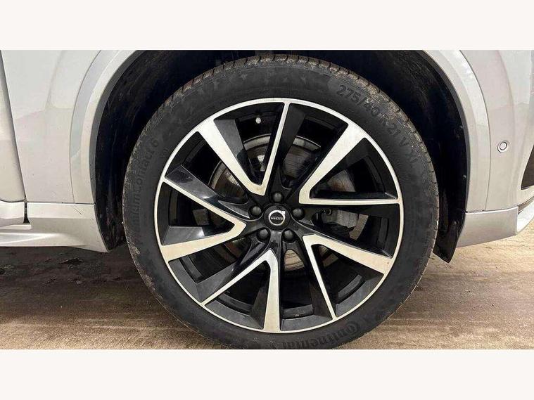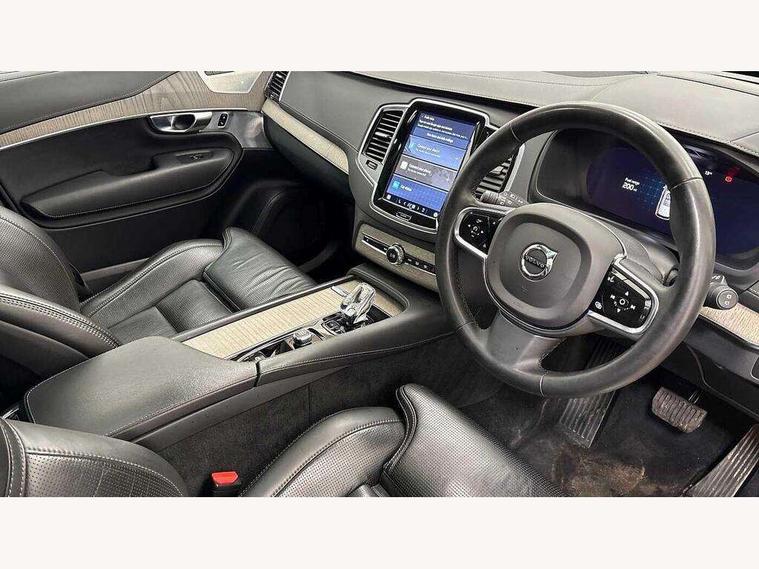12.3" Progressive Driver Display, 360 degree surround view parking camera with side proximity sensors, 9" centre console portrait touch screen, Adjustable steering wheel force, Bluetooth hands free telephone connection, Driver alert control with lane keeping aid, Driver assistance (pilot assist and adaptive cruise control), Driver awareness - Blind spot information system with steer assist, cross traffic alert with autobrake and rear collision warning and mitigation, Emergency call service, Front and rear park assist, Google Automotive Services - Navigation with Voice recoginition and google assistant, Handsfree power tailgate opening and closing, Oncoming Lane Mitigation, Power operated tailgate, Service interval indicator, Speed limiter, Speed sensitive steering, Trip computer, Volvo on call, Wireless Mobile Phone Charger, 8 speed automatic transmission with start/stop + manual change functions, Active four C chassis - four corner adaptive dampers with electronic air suspension, DAB Radio (Digital Audio Broadcasting), Premium Sound by Bowers and Wilkins, dirac live, dolby pro logic II surround sound, 18 speakers/1400W output and fresh air subwoofer, Steering wheel remote infotainment controls, Active bending headlights with adaptive shadow technology, Adaptive brake lights with high level LED brake lights, Auto dimming interior + exterior mirrors, Auto folding and heated power door mirrors, Automatic headlight levelling system, Automatic LED Headlights + Active high beam incorporating daytime running lights, Body colour bumpers, Dark tinted windows - rear side windows and rear screen, Front and rear power windows, Headlight cleaning system, High gloss black door mirrors and window surround, High gloss black front and rear bumper deco, High gloss black mesh front grille with surround, Home safe and approach lighting, Integrated roof rails in high gloss black, LED front fog lights with cornering light function, Power glass tilt and slide panoramic sunroof with sun curtain, Puddle lights, Rain sensor with automatic windscreen wiper activation, Rear side wing doors, Rear wash/wipe with intermittent wipe setting, Roof antenna, Roof spoiler, Visible VIN plate, 12V socket front tunnel console, rear passenger compartment and cargo area, 2 seat bench in 3rd row, 2nd Row centre armrest with and cupholders, 3 seat bench in 2nd row, 4 zone electronic climate control with Clean zone air quality system + pollen filter, A-pillar parking ticket holder, Advanced interior air cleaner PM2.5, Air conditioning for 3rd row of seats, Ambient door and instrument panel lighting, B Pillar ventilation, Bright metal luggage threshold, Centre console cupholders and storage, Floor mats, Front and rear door pocket and front cupholder illumination, Front and rear reading lights, Theatre lighting and centre armrest storage illumination, Front footwell and side step illumination, Front headrests, Front seat cushion extensions, Heated front seats, Heated rear seats, Heated steering wheel, Height/reach adjustable steering column, Illuminated front and rear tread plates, Illuminated luggage compartment, Illuminated tailgate, Illuminated vanity mirrors + ticket holder, Illumination lockable glovebox compartment, Integrated sun curtains in rear doors, Isofix outer rear child seat preparation in 2nd row, Load protection net, Luggage compartment divider with grocery bag holder, Outboard armrest with cupholder and storage for third row passengers, Power driver seat with multi directional lumbar support and memory for seat and exterior mirrors, Power folding 2nd row headrests, Power passenger seat with multi directional lumbar support and memory, Rear footwell and side step illumination, Rear headrests, Semi automatic load cover, Single front passenger seat, Underfloor luggage compartment storage, 7 three point seatbelts, City safety with steering support includes pedestrian, cyclist and large animal detection and front collision warning with full auto brake, Drivers knee airbag, Dual stage driver/passenger airbags, First aid kit, Front seats SIPS airbags, Hill descent control - off drive mode, Hill start assist, IC (Inflatable Curtains) - Full Length, Passenger airbag cut-off switch, Power child locks on rear doors, Power parking brake with auto hold function, Road sign information display, Run off Road Mitigation, Run off Road Protection, Seatbelt reminder and pretensioners for all seats, SIPS (Side Impact Protection System), Slippery road and hazard light alert, Stability and Traction Control with Spin control, Engine Drag Control and Corner Traction Control, Tyre pressure monitoring system, Vehicle deceleration control with Anti-lock Brake System, Electronic Brake Distribution and Emergency Brake Assist, Warning triangle, WHIPS whiplash protection system - front, Anti-theft alarm including immobiliser/volume sensor + level sensor, Care key with user defined top speed, Key integrated remote control central locking + fuel flap with deadlocking system and auto open/close power windows, Keyless drive includes keyless entry and keyless start, Locking wheel nuts, Private locking for glovebox and tailgate, Tailored Instrument Panel and Door Tops with Contrast Stitching, Tempa spare wheel and jack,