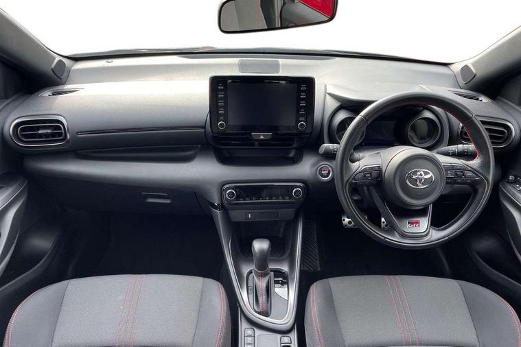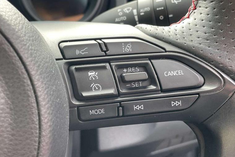 Adaptive cruise control, Adjustable speed limit with speed warning, Bluetooth connectivity, Colour binocular inspired displays with digital speedometer, E-call, Electric power steering, Hybrid energy display, Multi information display switches on steering wheel, Reversing camera, Smartphone integration with Apple CarPlay and Android auto, Tailgate, Voice recognition, Vehicle Stability Control (VSC), 6 speakers, 8" Multimedia display touch screen, Toyota Touch 2 with DAB, USB connection, Acoustic windscreen glass, Auto windscreen wipers, Automatic headlights, Body coloured door mirrors, Dark chrome lower front grille, Electric adjustable heated door mirrors, Follow me home headlights, Front auto power windows with anti jam protection, Full LED rear lights, LED daytime running lights, LED front fog lights, LED front light guide, LED Headlights, LED High mounted stop lamp, LED Indicators, LED rear light guide, Manual headlight levelling, Painted chequered front grille with hot stamp in mesh design, Rain sensor, Rear auto power windows with anti jam protection, Rear privacy glass, Rear side wing doors, Rear spoiler, Rear wiper, Shark fin antenna, Turning signal integrated indicators in door mirrors, Variable front intermittent wipers, 3 adjustable rear headrests, 3 seat bench in 2nd row, 3 spoke leather steering wheel, 60/40 split folding rear seat, Active headrests, Adjustable boot height, Black roof lining, Coat hooks in rear grab handles, Cup holders (2 front & door), Data Communication Module (DCM) connected services, Dual zone automatic air conditioning, Fabric upholstery with red stitching, Front armrest, Front sport seats, Glovebox, Height adjustable driver's seat, Height adjustable passenger seat, Isofix seat fixing, Leather gearshift, Map pockets on the backs of the front seats, Pollen filter, Shopping bag hooks, Single front passenger seat, Tilt/telescopic steering column, 3 point seatbelts on all rear seats, ABS+EBD+Brake assist, Electronic parking brake, Emergency brake light system (EBS), Front passenger airbag on/off switch, Front seatbelt reminder, Hill start assist control (HAC), Rear child proof door locks, Rear seat belt reminder, Supplemental Restraint System (SRS) 8 airbags: Driver & passenger's airbags, dual side curtain airbags, side impact airbags, front centre airbag, Toyota Safety Sense 2, Precollison + Night time Pedestrian & Cyclist Detection, Lane Trace Assist, Auto High Beam, Intelligent ACC & Road Sign Assist, Tyre pressure warning system, 2x Master key, Alarm/immobiliser, Keyless smart entry with push button start, Remote AC via MyT, Remote locking via MyT, Remote powered central double locking doors, GR Sport interior styling with accents and exterior styling, Piano black interior trim, Soft touch instrument panel, 18" machined face alloy wheels with GR Sport red deco lines, Space saver spare wheel,