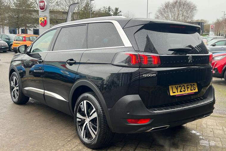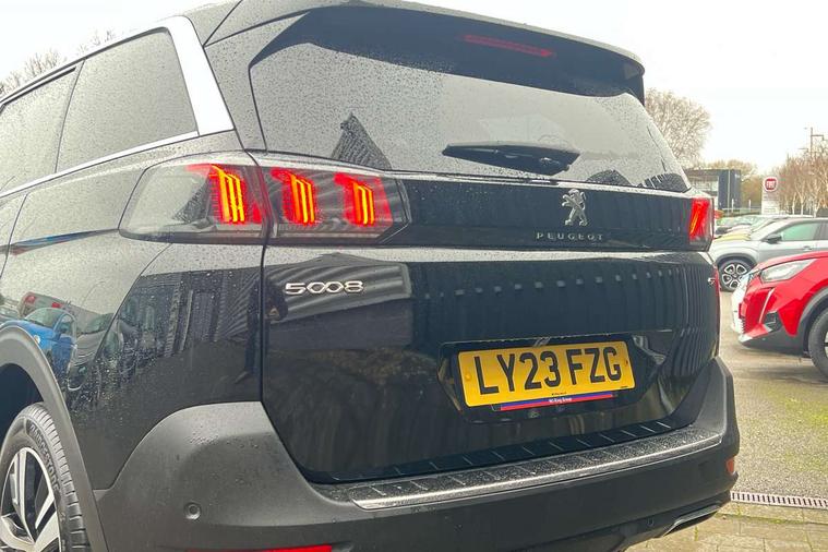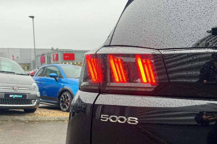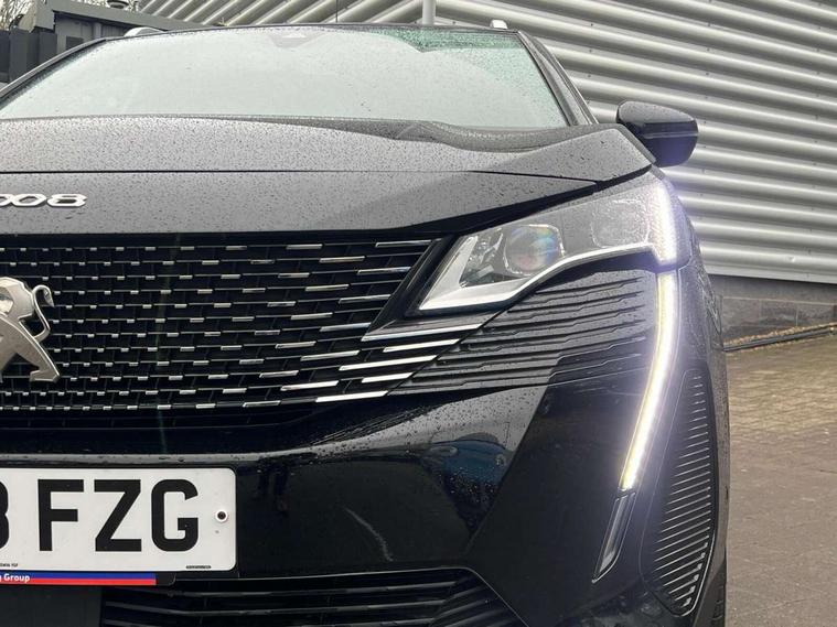 3D connected navigation with 10" HD touchscreen + voice recognition system, Apple car play and Android auto, Bluetooth telephone connection, Drive mode selector (Eco, Normal and Power), Driving timer alert system, Emergency services call system, Extended traffic sign recognition, Exterior temperature indicator with ice warning, Front and rear parking sensors, Lane departure warning system, Multi function trip computer, Peugeot i-cockpit with configurable 12.3" headup digital instrumental panel and compact sports steering wheel, Rear passenger USB charging sockets (x2) (type A), Speed limit recognition and recommendation, Dynamic stability control and electronic anti-skid system, Bi Tuner radio including DAB, USB socket, Aluminium front door sills, Auto self levelling headlights, Automatic activation of hazard warning lights, Black diamond door mirror covers, Black diamond roof, Body colour door handles, Body protectors in black, Dark tinted rear side and tailgate windows, Dynamic frameless design in front radiator grille, Electric adjustable heated door mirrors, Front windscreen wiper with magic wash cleaning system, Full LED headlights with fog mode, Gloss black B and C pillar and aerodynamic deflector trim, Gloss black rear cluster connecting strip, Gloss black windscreen trim, GT emblem (front wings and tailgate), Headlights left on audible warning, Heated rear windscreen with integrated antenna, LED daytime running lights in fang style, LED front indicator, LED rear number plate lighting, LED side indicator lights integrated into door mirrors, LED third brake light, One touch electric front/rear windows with pinch protection, Power folding door mirrors, Rear LED PEUGEOT signature Claw Effect lights (with daylight function) with clear lens and scrolling LED direction indicators, Rear side wing doors, Rear windscreen wiper with auto activation when reversing, Stainless steel door sill scuff plates, Twin exhaust effect trim, 2 cupholders in front centre console, 2 rear reading spotlights, 2 separate seats in 3rd row, 2nd row window blinds, 3 bench rear seats in 2nd row, 3 x 12V power sockets, 4 Grab handles retractable and damped, Aikinite stitching in armrest, gear lever and dashboard facia, Aluminium pedals, Automatic dual zone climate control, Aviation tables on seat back of first row, Blue ambient lighting for connecting zone, Blue ambient lighting for front cupholders, Blue ambient lighting to front door panels, Blue ambient lighting to head up instrument panel, Brumeo fabric trimmed door armrests, Central front armrest with butterfly wing opening and illuminated storage compartment, Electric power steering with reach and rake adjustable steering column, Flocked front door pocket interior with blue ambient lighting, Flocked glovebox interior, Fold flat front passenger seat with picnic table, Footwell lighting, Front interior light with 2 reading spotlights and rear interior light with timer, Front passenger seat manual adjustment (longitudinal and back rest angle), Height adjustable passenger seat, Illuminated glove box, central storage area and load area, Illuminated vanity mirror, Isofix child seat fittings x 3 in the second row, LED interior lighting, Map pocket on front seat backs, Mistral floor mats with Aikinite contrast stitching, Mistral full grain perforated leather steering wheel with aikinite stitch detail and satin chrome 'GT' emblem, Rear ventilation system, Retractable parcel shelf, Roof lining and windscreen pillars in Mistral black, Satin chrome digital instrument panel and touchscreen trim, Satin chrome front door panel recess trim, Satin chrome interior door handles, Satin chrome scorpion's tail and toggle switch trim, Seatbelt not fastened audible and visual alert for front seats, Seatbelt unfastened on the move audible and visual alert for front and rear seats, Second row underfloor storage, Single front passenger seat, Third row seats (can be stored under bootfloor or removed completely), Twin rear coat hooks, Drive assist plus package - 5008, Visibility pack - 5008 GT, ABS + EBD + EBA, Adaptive driver and front passenger airbags including passenger airbag deactivation function, Electric child locking functionality on rear windows and doors, Electronic parking brake + Hill assist, ESP and ASR traction control with deactivation switch, Five 3 point rear safety belts, Front and rear curtain airbags, Front optimised safety headrests and rear retractable headrests (x3), height adjustable, Front side airbags, Front three point retractable seatbelts height adjustable with pre tensioners and force limiters, Front ventilated disc brakes, Rear disc brakes, Rear three-point retractable seatbelts (x3) with pre-tensioners and force limiters in the outer rear seats, Single tone horn, Automatic door locking when moving off, Electronic code immobiliser, Perimetric and volumetric alarm with lift and tilt sensor, Peugeot Open and Go System, Remote control central locking with two plip keys,