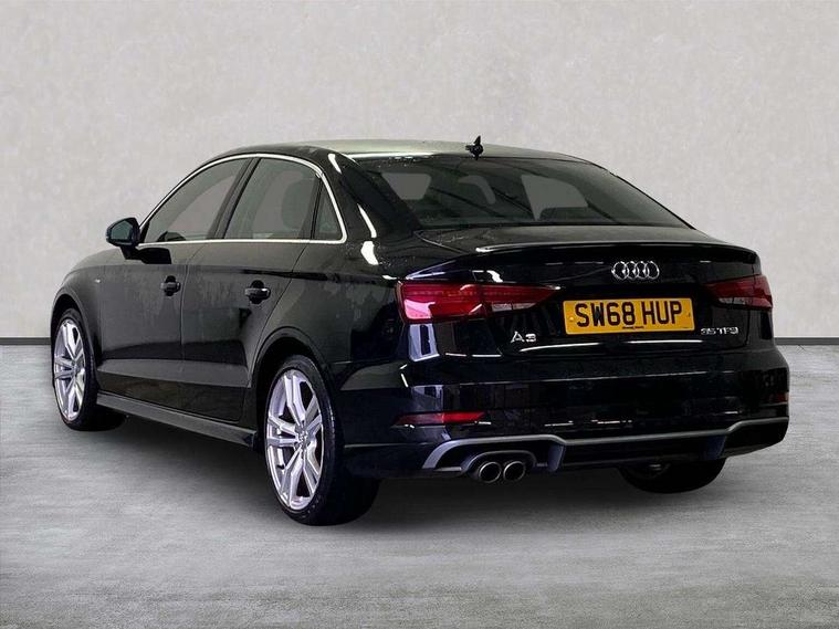 Audi connect, Audi drive select, Audi smartphone interface, Automatic start/stop system, Bluetooth interface, Colour driver's information system display, Electro-mechanical PAS, SD card based MMI navigation, Service indicator, Voice control system, 2 USB interfaces and Aux-In jack, CD player, DAB Digital radio, MMI radio plus with 7" colour MMI screen and MMI controller, Two SDXC card slots, Aluminium side window trim, Auto dimming rear view mirror, Automatic lights and wipers, Body colour bumpers, Body colour door mirrors, Dual branch chrome-plated exhaust tailpipe, Electrically adjustable and heated door mirrors with integrated LED side indicators, Front and rear electric windows, Heated rear window, Heated windscreen washer jets, S Line badges on the front wings, S Line body styling, S Line body styling with high gloss dark chrome radiator grille and rear diffuser in platinum grey, S Line body with front and rear bumpers and side skirts, S Line roof edge spoiler, 3 adjustable rear headrests, 3 spoke flat bottomed high multi-function leather sport steering wheel with gearshift paddles, 4 lashing points to secure luggage, Adjustable front centre armrest, Black cloth headlining, Driver/passenger sunvisors, Dual zone electronic climate control, Front and rear interior lights with delay, Front sport seats with S embossed logo, Front/rear floor mats, Height/depth adjustable steering column, Illuminated door sill trims with S logo, Illuminated glovebox, Illuminated luggage compartment, ISOFIX child seat mounting and Top Tether with front passenger airbag deactivation, Stainless steel pedals, Storage compartments in doors side trims, centre console and under front drivers seat, LED interior light pack - A3/RS3, Non smoking pack - A3, Storage and luggage pack - A3/RS3, 3 point seatbelts on all seats, ABS/EBD, Airbags - front driver/passenger, front & rear side, curtain, drivers knee, ASR, EDL, Electromechanical parking brake, ESC - Electronic Stability Control + traction control, Hill hold assist, Predictive pedestrian protection, Seatbelt warning, Tyre pressure warning, Warning triangle and first aid kit, Anti theft alarm, Anti-theft wheel bolts, Immobiliser, Remote control central locking, Aluminium air vent surrounds, Aluminium trim elements, Matt brushed aluminium inlays, Tool kit, Tyre repair kit,
