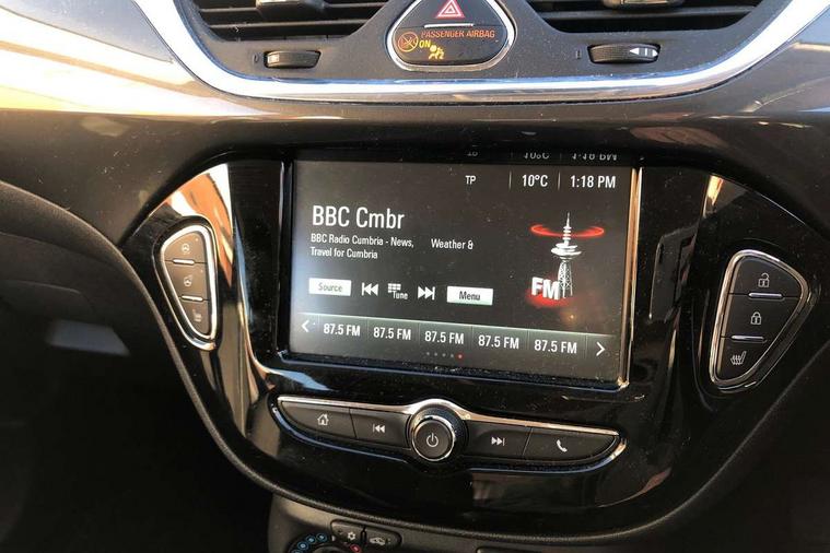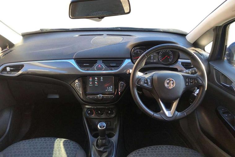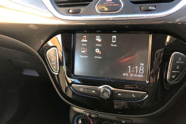 Apple car play/Android Auto, Central facia display, Cruise control + speed limiter, Digital fuel gauge with low fuel warning light, Digital water temperature gauge, Electric speed sensitive power steering, Exterior temperature gauge, Lights on audible warning, Rev counter, Service indicator, Speed warning indicator, Speedometer, Trip computer, White graphics on black background, Front anti roll bar, Steering wheel mounted audio/cruise controls, Black foil on B-pillars, Body colour bumpers, Body colour door handles, Body coloured door mirrors, Chrome front grille, Dipping rear view mirror, Door to door illumination, Electric adjustable/manual folding heated door mirrors (wide angle on driver's side), Electric headlight beam leveling, Electrically operated front windows with safety auto reverse/one touch facility, Front fog lights with black surround, Halogen headlights with halogen signature daytime running lights, Hazard warning lamps, Headlamp levelling, Heated rear window, Heated windscreen, High level LED centre brake light, Intermittent rear wash/wipe, Laminated windscreen, Rear fog lights, Rear wiper, Side window demist vents, Two speed windscreen wipers with variable intermittent wipe, Welcome lighting, Windscreen demist vents, 12V electrical accessory socket in front, 3 spoke steering wheel, Anti submarining ramps in all seats, Centre console with cupholders, Chrome gear knob, Chrome interior door handles, Cloth upholstery, Comfort front seats, Driver's and front passenger's sunvisors, Driver's and front passenger's tiltable assist handles, Driver's and passenger's vanity mirrors with flip up cover, Driver's vanity mirror, Four adjustable facia vents, Front courtesy lights, Front door pockets, Front map reading lights, Front seat belt pre-tensioners with load limiters, Glovebox with lid, Grab handles, Height adjustable driver's seat, Height adjustable front headrests, Height adjustable rear head restraints with adjustable backrest, Illuminated luggage compartment, Instrument panel light dimmer, Interior tailgate handles, Isofix child seat mounting points on outer rear seats, Load restraining lashing points, Luggage compartment cover, Multi function steering wheel, Passenger make up mirror, Pollen filter, Reach + rake adjustable steering column, Rear courtesy lights, Rear door pockets, Rear reading lights, Reclining front seats, Storage box on driver's side lower facia, Stowage facility for luggage compartment cover behind rear seats, Twin gas assisted tailgate struts, Sight and light Pack - Corsa, Winter pack - Corsa, Anti-lock braking system (ABS), Brake assist function, Electronic brake force distribution, Electronic Stability Programme, Energy absorbing steering column, Front and rear seatbelt reminder, Front and rear seatbelt unfastened audible warning and warning light, Front seatbelt force limiters, Gas pressure dampers, Height adjustable front seatbelts, Hill start assist, Manual passenger airbag deactivation function, Pedal release system, Rear child proof door locks, Reinforced passenger safety cell, Side impact protection beams, Six airbags - Driver's dual stage airbag/front passenger's dual stage airbag/front seat side impact airbags/full size curtain airbags, Three 3 point rear seatbelts, Three inertia reel lap/diagonal seatbelts, Traction control, Tyre pressure monitoring system, Electronically protected audio, Engine Immobiliser & Deadlocks, Key left in ignition audible warning, Locking wheel bolts, Remote control central locking, Visible vehicle identification number, Rhutenium facia with chrome effect inserts, Low rolling resistance tyres,