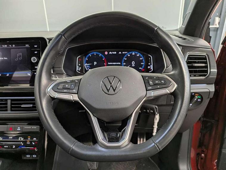 'Lights On' Reminder warning buzzer, 10.25" Digital cockpit pro, Adaptive cruise control including front assist, forward collision warning, autonomous emergency braking, speed limiter, Advanced driver attention and drowsiness monitor, Blind spot monitoring, Car information display, Driver profile selection including ECO function, Dynamic road sign display, E-Sim card for online connectivity, eCall emergency call system, Front and rear parking sensors, Low washer fluid warning light, Multifunction computer with visual gear change recommendation for fuel consumption, Multifunction front facing camera for distance control, Operating permit alteration, Power assisted steering, Preparation for navigation system with media and internet package, Preparation for We connect and We connect plus, Semi-automated driving assistance, travel assist including lane keeping system Lane Assist and emergency assisst, Speedo, rev counter, electronic odometer, trip, service interval display, exterior temperature and fuel gauge, Warning sound and light for doors and tailgate open, Warning sound and light for front seatbelts unfastened, Wireless Car net app connect with Apple CarPlay, combined functionality of Apple CarPlay/Android Auto and MirrorLink, Misfuel prevention device, Start-stop system with battery regeneration (recuperation - energy recovery during braking), 2 USB C ports in front, 2 USB charging sockets on the centre console in the rear charging capacity upto 45W, Diversity antenna for FM reception, Music playback - MP3, WMA and AAC files, Radio, Automatic dimming interior rear view mirror, Automatic hazard lights activation under emergency braking, Automatic headlight control with LED separate daytime running light and coming home and leaving home feature, Black roof rails, Body colour door handles, Body colour door mirrors, Body coloured bumpers, Dynamic headlight range control with self adjusting whilst driving, Electric folding door mirror, adjustable, heated with front passenger exterior mirror lowering function, Exterior mirrors convex on the left and aspherical on the right, Front and rear electric windows, Front door sill protectors with R-Line logo, Galvanised body, Heat insulating and laminated safety glass windshield, Heat insulating darkened glass in side and rear windows, High Beam Assist, automatic sensing for switching between dipped and main beam, LED rear combination lights, LED third brake light, Lower door sills and door pillars in black, Rain sensor, Rear fog light on one side, reversing light on both sides, Rear side wing doors, Rear tinted glass 65% approx light absorbing from B pillar backwards, Rear window aerial, Rear window wiper with intermittent control, Reflectors in all doors, Scuff plates, Tailgate with integrated roof spoiler, 12V Accessory socket in centre console, 2 Front and rear reading lights incorporating LED technology, 3 rear head restraints, 3 seat bench in 2nd row, 60/40 split folding rear seat backrest, Air care climatronic 2 zone air conditioning system, Ambient lighting, Brushed stainless steel pedals, Chrome plated radiator grille inserts, air vent surrounds and light switch surrounds, Cloth upholstery, Comfort front sport seats, Door and side trim panel, Drawer under drivers seat, Driver and front passenger sunvisor with vanity mirror, Dust and pollen filter, Front + rear carpet mats, Front centre armrest with storage compartment, Front footwell illumination, Front seat back storage pockets, Glove compartment door with light, Heated front seats, Heating and fresh air system with 4 stage blower, Height/reach adjust steering wheel, Instrument lighting white adjustable panel illumination, Interior light with switch off delay and dimmer, Isofix anchors for child seats on outer rear seats and front passenger seats, Leather gearshift handle, Leather wrapped multifunction steering wheel, Luggage compartment floor, Luggage compartment lighting, Manual front seats with height adjustment, Padded dashboard, Removable luggage compartment cover, Single front passenger seat, Storage compartment in drivers and front passengers door, Titanium black roof lining, Unsplit sliding rear seat bench, 3 point outer rear seat belts with ECE label, 3 Point seatbelt for centre rear seat, Anti-lock Braking System (ABS) with Hydraulic Brake Assist (HBA), Automatic post collision braking system, Disc brakes in front, Disc brakes in rear, Driver and front passenger safety-optimised head restraints, Drivers and Front Passengers airbags with front passengers airbag deactivation switch, ESC with EDL and ASR (traction control), Extended and predictive pedestrian/cyclist protection, Front and rear passenger curtain airbag system including front side airbags, Height adjustable front 3 point seatbelts + pretensioners, Hill start assist, Pre crash preventive occupant protection, Proactive passenger protection system in combination with front assist, Rear door child safety locks, Rigid safety cell with front and rear crumple zones, Single tone horn, Tyre pressure loss indicator, Volkswagen roadside assistance, Alarm with interior protection, Anti theft alarm system, Electronic engine immobiliser, Remote tailgate unlocking using key fob, Titanium Black Decorative inserts - R Line, Low rolling resistance tyres,