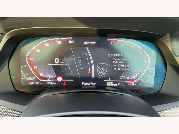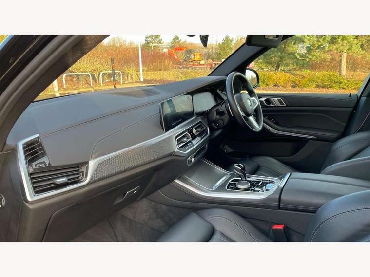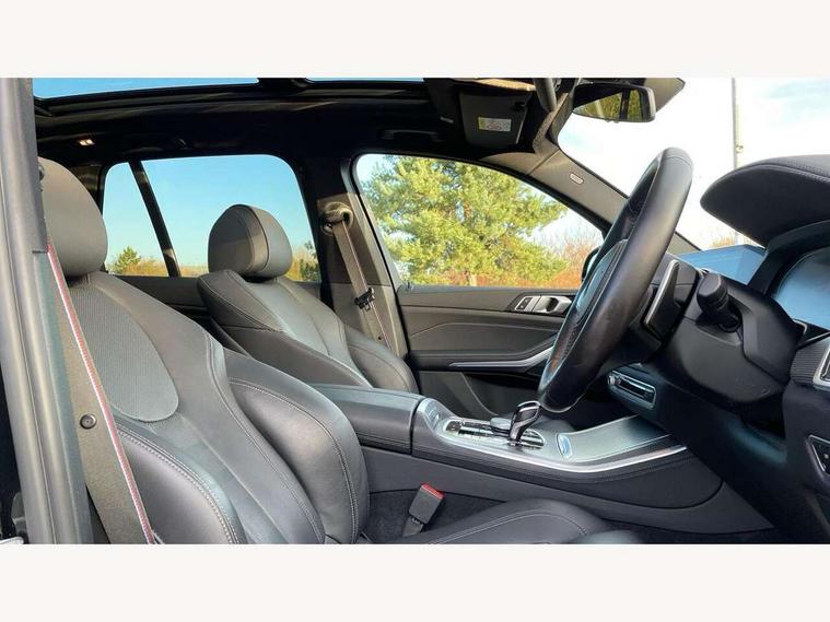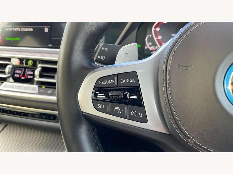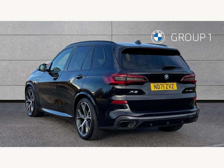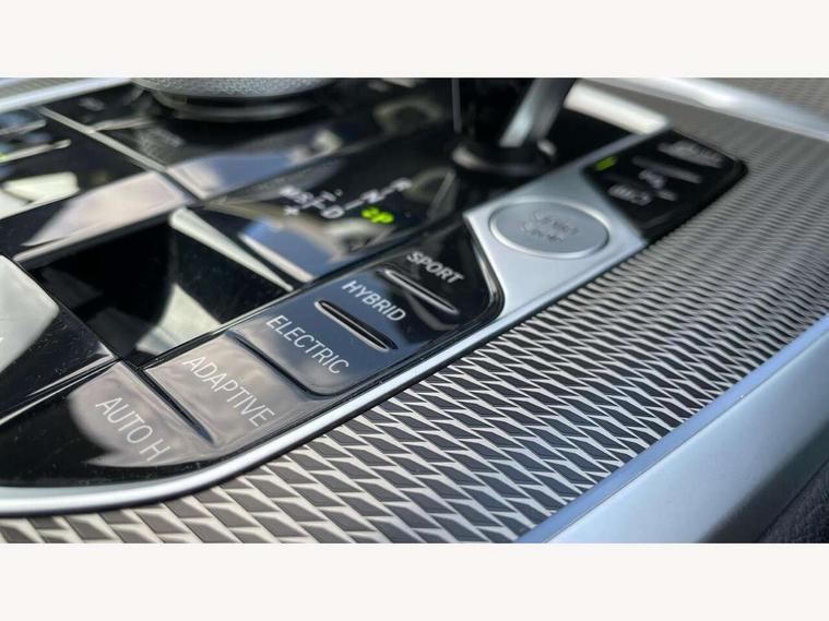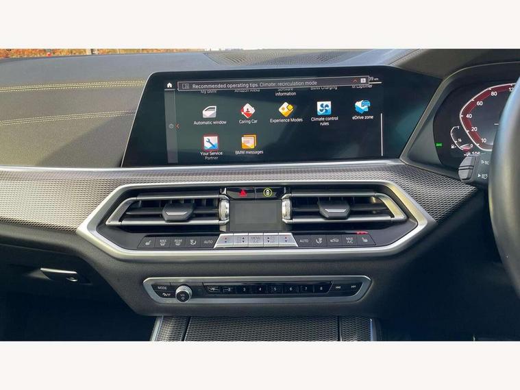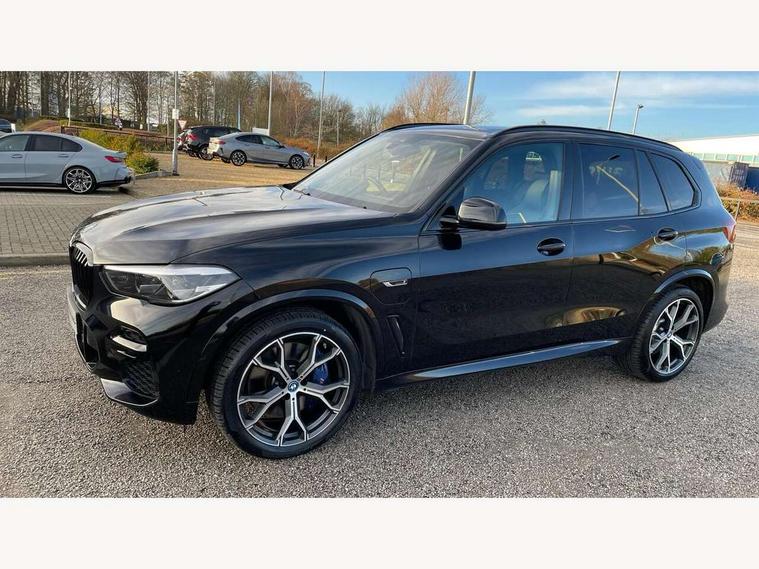 20GB hard disc drive (HDD) memory, Active guard plus, Attentiveness assist, Automatic tailgate with top hinged section open and manual bottom hinged section, BMW ConnectedDrive online services, BMW digital live cockpit professional - 12.3" digital instrument panel and 12.3" CID, with touch/voice command, BMW legal emergency call, BMW Teleservices, Brake force display, Brake pad wear indicator warning light, Cruise control with brake assist, eDrive button to select between AUTO eDrive, MAX eDrive and SAVE Battery settings, Front/rear park distance control, Lights on warning, Oil sensor for level and grade, On board computer inc. average speed, fuel consumption, liquid crystal Info display, journey computer, outside temperature display, personal profile, Service interval indicator, Speed limit info display, Speed limiting function, 5 metre AC Fast charge cable, Adaptive 2-axle air suspension, Double VANOS, Double wishbone front axle, Drive performance control with ECO PRO comfort + sport mode, eDrive exterior sound, Eight speed steptronic sport automatic transmission and gearshift paddles on the steering wheel, High precision injection, Petrol Particulate Filter, Safety battery terminal clamp, Standard Charging cable (Mode 2) for home socket, Twin scroll turbocharger with Valvetronic, DAB Tuner enables digital radio reception, Favourite buttons, USB connection, USB type A 1.5A in cupholder, USB Type C 3A in centre armrest, Active Air Stream kidney grille with high-gloss chrome, Adaptive air flap control bar in high-gloss black, Automatically dimming rear view mirror, BMW Individual high gloss black shadow line roof rails, Body colour bumpers, Body colour door handles, Dynamic brake lights with LED technology, Exhaust tailpipes - single, left and right with Chrome finisher, Follow me home headlight function, Front and rear electric windows with open and close fingertip control, anti trap facility and comfort closing, Heated windscreen washer jets, High beam assistant, High gloss black outer and central air intakes on front bumper with pearlescent chrome finish, High gloss black Side elements, LED daytime running lights, LED rear lights, Left charging flap on the front side, M aerodynamic body styling, M designation on left and right front side panels, Pearlescent chrome front grille bars, Rain sensor with automatic headlight activation and windscreen wiper control, Rear side wing doors, Satin aluminium side window graphic, Third brake light in rear spoiler, Variable intermittent rear wash/wipe, Welcome light carpet, X5 on left tailgate, xDrive designation on right tailgate, 12V - Power sockets with 2x centre console and 1x luggage compartment, 3 seat bench in 2nd row, 40:20:40 split folding rear seats, Ambient interior lighting with 6 pre-designed selectable lights including dynamic function, Centre and rear interior light, Child seat ISOFIX attachment with rear outer seats includes top tether, Compartment in front of cupholder, Electric front seat adjustment with driver and front passenger memory function, Electrical steering column with adjustable height and length with activation and control on the steering column, Foldable rear centre armrest with 2 cupholders and storage compartment, Front and rear cupholders x 2, Front and rear door pockets, Front and rear door sill inlays with illuminated BMW M designation, Front and rear side armrest integrated into door trim, Front footwell lights, Front reading lights, Light inside glove compartment, Lockable glove compartment, Luggage compartment floor panel with integral storage tray, Luggage compartment lighting, M leather steering wheel, M specific key, M specific pedals, M specific steering wheel, M specific velour floor mats, Make-up mirror lights, Multifunction controls for leather steering wheel, Multifunctional hooks, Rear head restraints, Seat back with flap pocket, Securing rings in luggage compartment, Storage bins on all doors, Storage tray and compartment with cover in centre console, Sunvisors with illuminated vanity mirrors, Toolkit located in luggage compartment, Connected Package Professional - X5 xDrive45e, Expanded exterior mirror pack - X5/X5 M, Non-smokers pack - X5, Airbags - driver/front passenger, rear and side, first and second row seats head airbags, front passenger seat airbag deactivation + knee airbag, Anti-lock braking system (ABS), Automatic Stability Control (ASC), Brake drying, Brake energy regeneration, Brake fade compensation, Braking pre-tensioning, Child proof locking system in rear door, Cornering brake control (CBC), Crash sensor activating central locking release, hazard warning lights, fuel cut off, interior lighting + activation of safety battery terminal clamp, Deformation zones - front and rear with door reinforcements and bumpers up to 2.5 mph, DSC - Dynamic Stability Control, Dynamic brake control, Dynamic Traction Control - DTC, Electromechanical parking brake with automatic drive away release and auto hold function, Electronic brake force distribution, Front and rear seatbelts with seatbelt stopper, seatbelt tensioner for front and outer rear seats and belt force limiter, Front head restraints with anti-whiplash, Height adjustable front seatbelts, Hill start assistant, Integrated brake system, M Sport braking system in blue high gloss + blue painted brake calipers with M designation, Mechanical child proof lock on rear doors, Passive protection for pedestrians, Seat occupancy detection for driver and passenger side, Side impact protection, Three 3 point inertia reel seatbelts, Two tone horn, Tyre pressure monitoring system, Ventilated front and rear disc brakes, Warning triangle and first aid kit, Closing system with central locking, Driver and front passenger door centre lock switch, Locking wheel bolts, Thatcham 1 alarm system with remote control and engine immobiliser, Start/stop toggle diamond shaped trim finisher in pearl chrome,