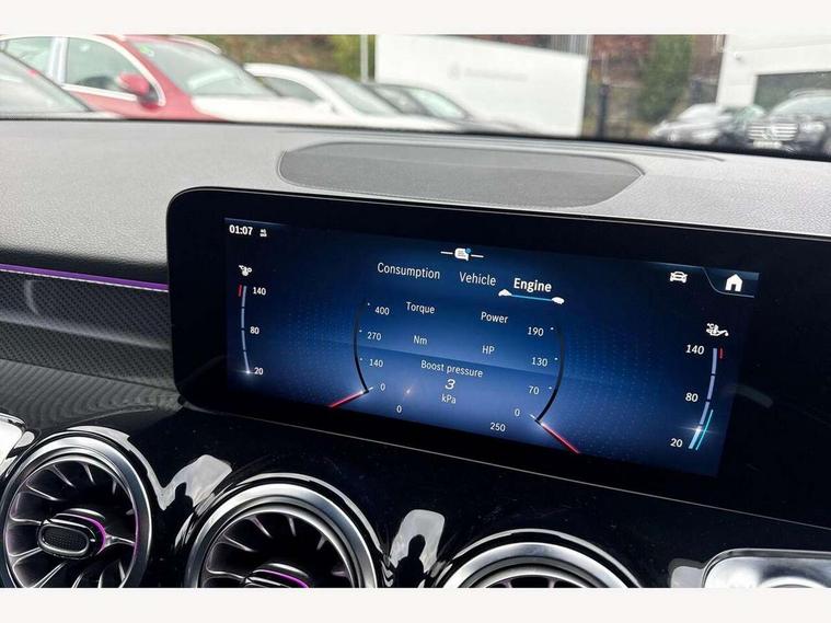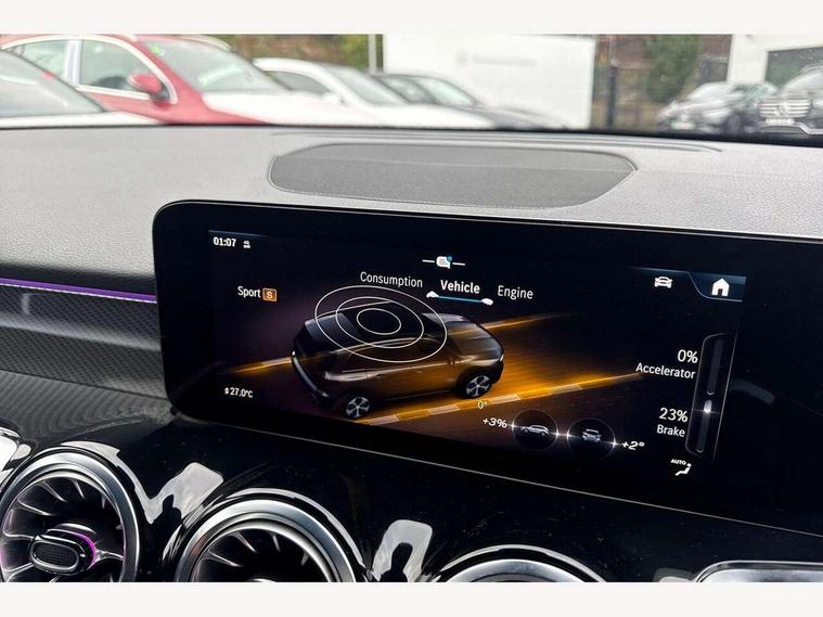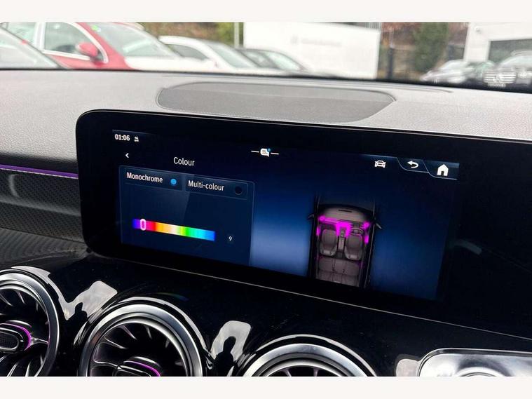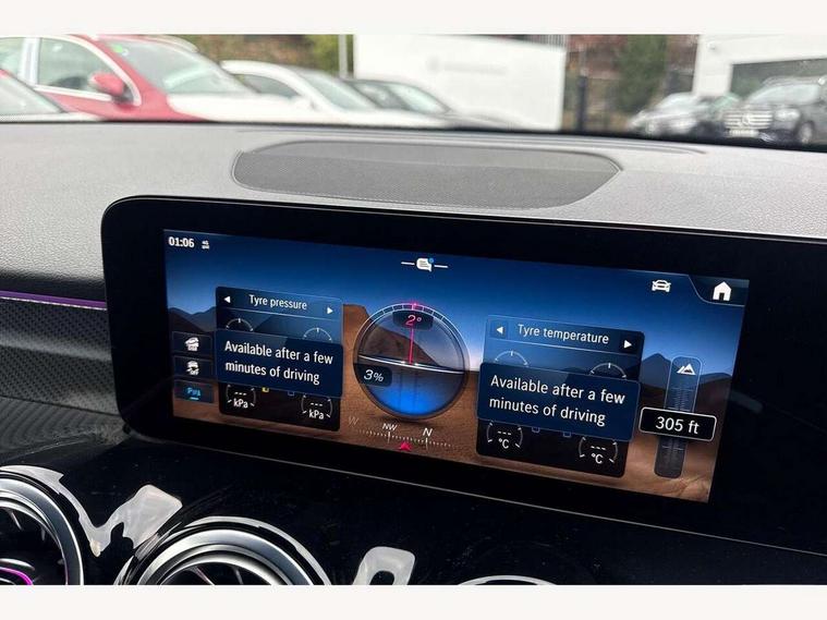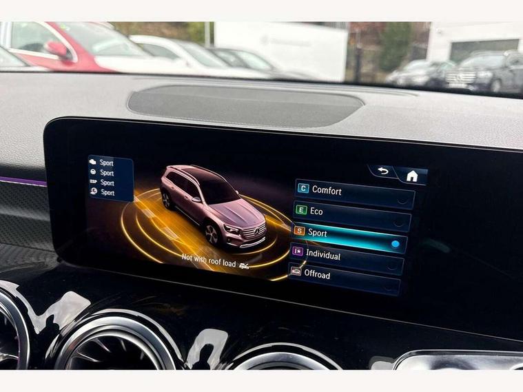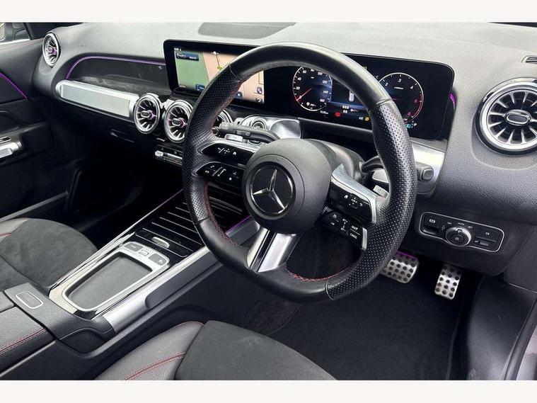 10.25 inch touchscreen central media display, 10.25" Digital instrument cluster display screen, 12 ultrasonic sensors in front and rear bumpers, 180 degree reversing camera with parking guidelines, Additional drive program "OFF-ROAD", Assisted parking: reversing backwards into perpendicular and parallel parking spaces, Attention assist - Monitors steering behaviour and long journey fatigue, Bluetooth connection, Brake pad wear indicator warning light, Car wash mode, Convenience opening and closing, Direct steering, DYNAMIC SELECT with a choice of driving modes (ECO, Comfort, Sport and Individual), ECO start/stop function, Engine start/stop button, Fluid level warning indicator for fuel, oil, coolant and washer fluid, Hard disk navigation, Hey Mercedes Voice activation, Lamp failure indicator, Lane keep assist, MBUX navigation premium, Mercedes me connect including emergency call system, accident recovery, breakdown and maintenance management, Mercedes me remote services, Outside temperature gauge, Owners manual and service booklet in English, Pre-installation of private car share, Preinstallation for parking damage notification, Radio aerial integrated into front and rear windshields, Remote boot closing, Service indicator (ASSYST), Smartphone integration with Apple CarPlay and Android auto, Speed limit assist, Tailgate, Trip computer in multifunction display with current consumption indicator, Ultrasound sensors - positioned in the handle of the tailgate, Wireless charging, Comfort suspension with ride height lowering, Rear axle multi-link, 1 USB-C port in the oddments compartment (Charge + Data transfer), 2 USB-C ports for the rear on the centre armrest (Charge only), 2 USB-C ports under the front centre armrest (Charge + Data transfer), DAB digital radio tuner, MBUX multimedia system, Mercedes Benz sound system (100 W) with 6 speakers, Pre installation for Mercedes Benz Link, Adaptive brake lights, Adaptive high beam assist, AMG front apron with front splitter in the colour of the vehicle with chrome trim element, AMG rear apron with visible tailpipe trim and chrome trim element, AMG specific/dual flow exhaust pipes in chrome (non-functional), Auto dimming rear view mirror, Beltline trim and window line trim strip in high gloss aluminium, Black grained side sill trim with chrome inlay, Body coloured door handles, Electric adjustable and heated door mirrors with integrated LED side indicators, Electric folding door mirrors, Front and rear electric windows, Headlamp assist automatic headlamp activation, Heat insulating dark-tinted glass starting from B-pillar, Heated glass rear windscreen + timer control, High level LED third brake light, Interior mirror with black reading lamps and frameless, LED high performance headlamps with integrated LED daytime running lights, LED tail lamp, Polished aluminium roof rails, Radiator grille as a diamond grille with chrome pins and central Mercedes star, Rain sensor windscreen wipers, Rear fog lamp, Rear side wing doors, Rear wiper, Single louvre in matt grey with chrome inserts and black highlights, Two visible tailpipe trim elements exhaust, Ultrasonic sensors - positioned in the front and rear bumpers, Wheel arch liners in the colour of the vehicle, 12V socket in the oddments compartment, 3 seat bench in 2nd row, 3 twin spoke flattened multifunction steering wheel in nappa leather - horizontal twin spoke in high gloss black, vertical twin spoke in silver chrome, 4 way adjustable lumbar support, 40:20:40 split folding rear seats, Air vents with silver chrome surrounds, AMG floor mats, AMG sports pedals with brushed stainless steel surfaces and black rubber studs, Automatic child seat recognition sensor, Black roof lining, Door handles with chrome inserts, Fluorescent jacket, Front and rear headrests, Front centre armrest with stowage, Galvanised steering wheel gearshift paddles in silver chrome, Handle recess lighting, Heated front seats, Height adjustable head restraints, Height/reach adjustable steering column, Interior lighting - 64 colour Ambient lighting, Luggage net on driver/front passenger seat backrest, Single front passenger seat, Sports seats, Stowage compartment with retractable cover, Sun visors with illuminated vanity mirrors, THERMATIC automatic climate control, Third row of seats for two people on rear seat, Twin front cup holders, Two outer rear seat isofix and top tether child seat fixing points, Easy pack tailgate, Interior lighting with light and sight pack - GLB, Seat comfort package - GLB, 3 rear 3 point seatbelts, Active bonnet pedestrain safety measure which detects an impact and raises bonnet by 65mm, Active brake assist includes forward collision warning system with autonomous braking, Adaptive brake assist with hold function and hill start assist, Airbags - kneebag for driver, Anti-lock braking system (ABS) with brake assist, Black seatbelts, Bonnet with power domes, Childproof locks manually operated for rear doors and electrically operated for rear power windows, Crash responsive emergency lighting, Curve dynamic assist, Downhill speed regulation (DSR), Driver and front passenger head and sidebags, Driver and front passenger windowbags, Dual stage driver and front passenger airbags, Electric parking brake, Electronic stability programme with acceleration skid control, Front and rear seatbelt reminder, Front brake callipers with Mercedes Benz lettering, Front passenger seat occupancy sensor, Perforated front brake discs, Tyre pressure monitoring system, Warning triangle and first aid kit, Guard 360 degree vehicle protection - Anti theft alarm system, tow away protection with visual, acoustic warning and alarm, Interior monitoring system, Keyless Go Access and drive authorisation system, KEYLESS-GO starting function, Remote central locking and crash sensor with emergency opening function, Thatcham category 1 alarm system with immobiliser and interior protection, Vehicle key with KEYLESS GO functionality, Carbon structure 
