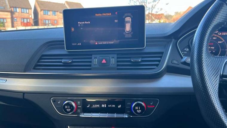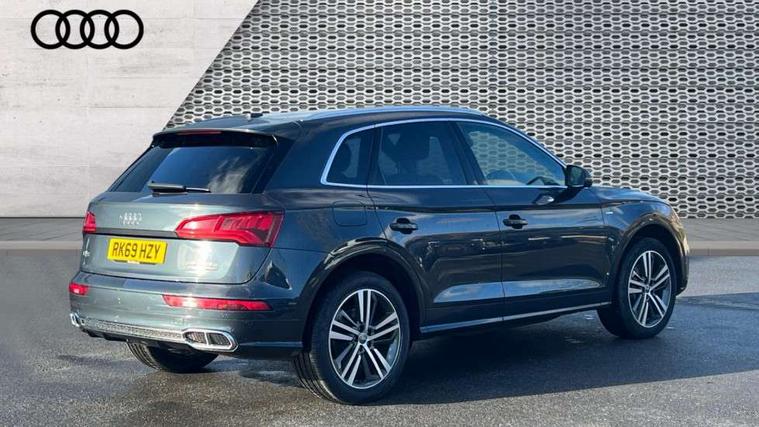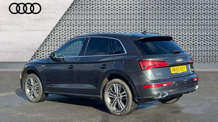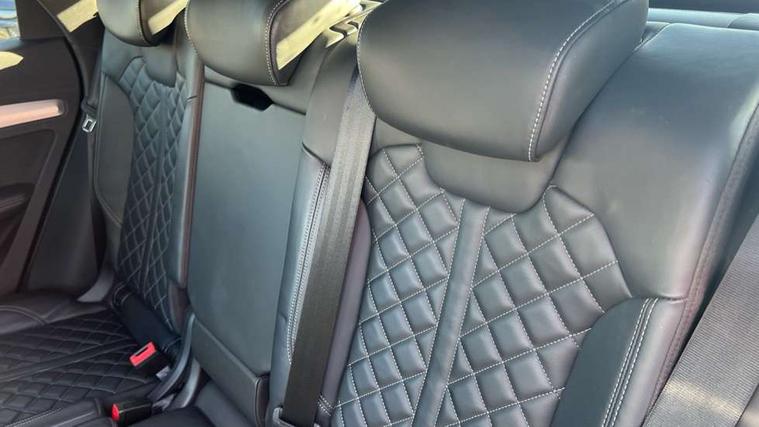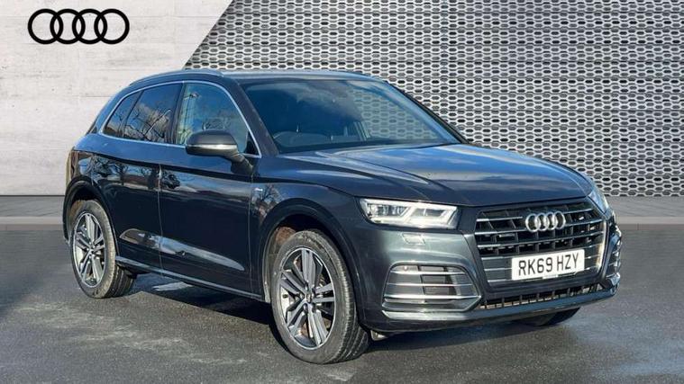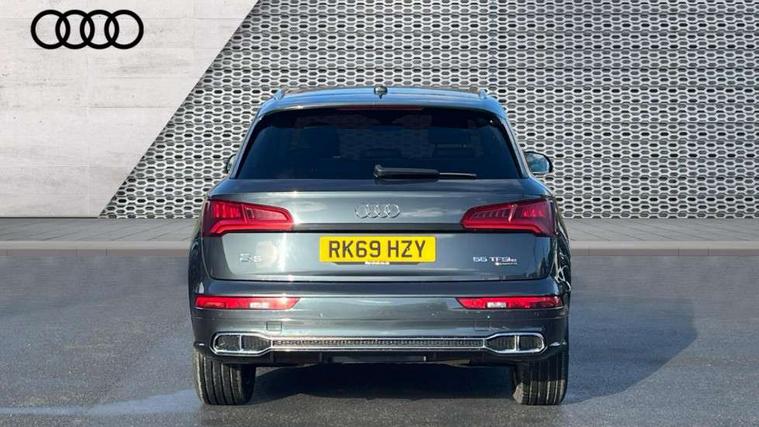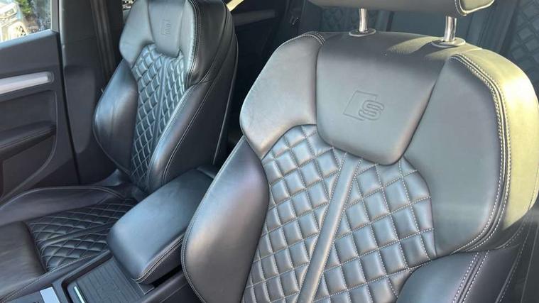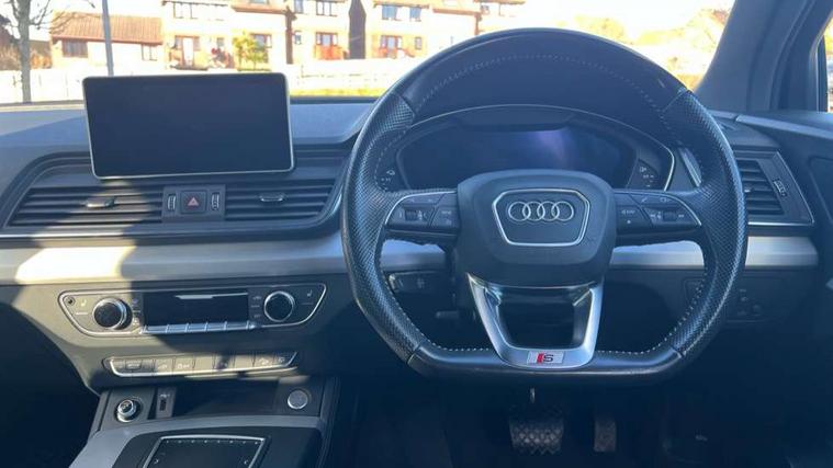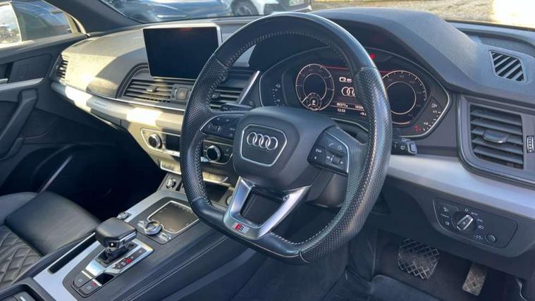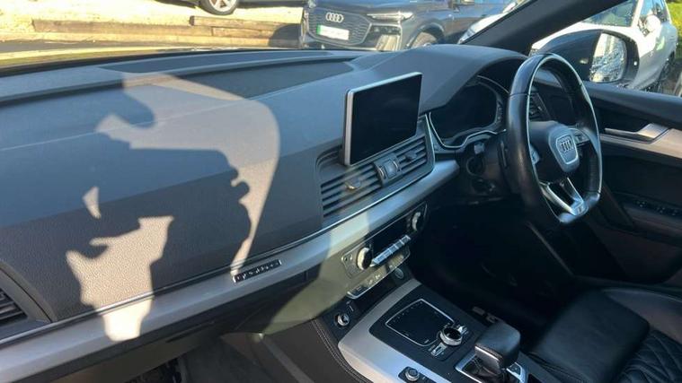 Audi connect safety and service (e-call), Audi drive select, Audi phone box with wireless charging, Audi smartphone interface, Audi virtual cockpit - 12.3" high resolution LCD digital instrument cluster display, Automatic start-stop system with coasting functionality and efficiency programme, Electro - mechanical power assisted steering, MMI navigation plus with 8.3" colour MMI screen and MMI touch, Mobile telephone preparation - bluetooth interface, Power tailgate, Service interval indicator, Voice control system, Dynamic suspension, Quattro on demand, 2 x USB charging port with aux input socket, 2x SD card slot, Audi sound system, CD player, DAB Digital radio, MMI radio plus with 7" colour MMI screen and MMI controller, Acoustic windscreen, Aluminium roof rails, Audi Beam uses LEDs to project the Audi Sport logo, Auto dimming rear view mirror, Automatic headlight levelling, Body colour bumpers, Body colour door mirrors, Body colour S Line side skirts, Body colour S specific rear diffuser, Body colour underbody protection, Chrome exhaust tailpipe, Electric adjustable/heated/folding door mirrors, Front and rear electric windows, High beam assistant, LED headlights with LED rear lights + dynamic rear indicators, Light and rain sensor for auto activation of lights and windscreen wipers, Loading sill protector in stainless steel, Privacy glass with front acoustic glazing, Rear wiper, S air inlet in titanium black, S front and rear bumpers, S Line badges on the front wings, S Line rear spoiler, Twilight grey matt radiator grille with matt aluminium horizontal chrome struts, 3 rear headrests, 3 spoke flat bottom high multi-function leather steering wheel, 4 way electric lumbar support for driver and front passenger, 40:20:40 split folding rear seat with rear centre armrest, Black cloth headlining, Contrast stitching on seats, steering wheel and gear lever gaiter, Deluxe 3 zone electronic climate control, Fine Nappa leather upholstery with diamond stitching, Front centre armrest, Front sport seats with S embossed logo, Front/rear floor mats, Fully electrically adjustable driver's seat, Fully electrically adjustable front passenger seat, Heated front seats, Height adjustable front head restraints, Height/reach adjustable steering column, Illuminated door sill trims with S logo, ISOFIX child seat mounting and top tether, Luggage compartment carpet, Massage function for front seats, Perforated leather gearknob, Rear seat bench plus, Removable luggage compartment floor, Sunvisors with vanity mirrors, Trunk roller cover, Extended leather pack - Q5, Extended LED Interior Lighting Pack - Q5, High gloss pack - Q5, Non Smokers pack, 3 point seatbelts on all seats, 6 airbags - Driver, front passenger, curtain and side airbags, Electromechanical parking brake, Electronic stabilisation control including ABS, ASR and EDL, Front passenger airbag deactivation, Hill descent control, Hill hold assist, Multi collision brake assist, Pop-up bonnet for pedestrian protection, Pre sense city, Seat belt force limiter, Seatbelt monitoring, Tyre pressure warning, Warning triangle and first aid kit, Anti theft alarm, Anti-theft wheel bolts, Keyless Go access/ignition system, Remote central locking, Matt brushed aluminium inlays, Tool kit, Tyre repair kit,