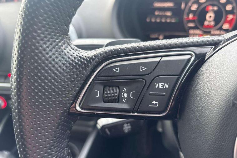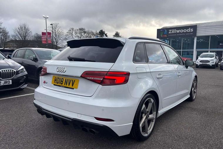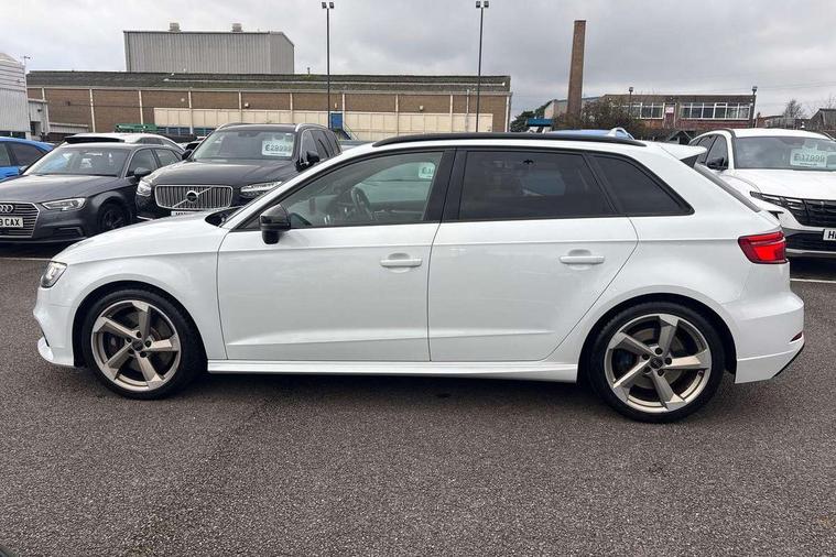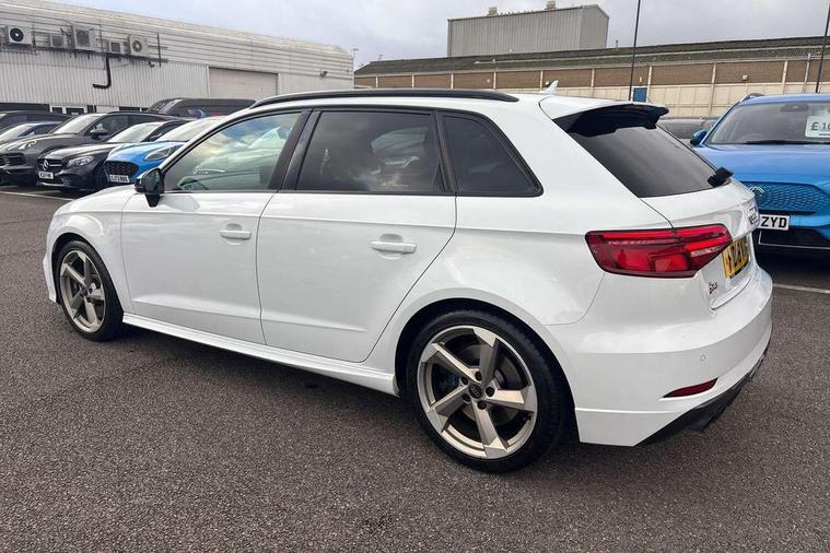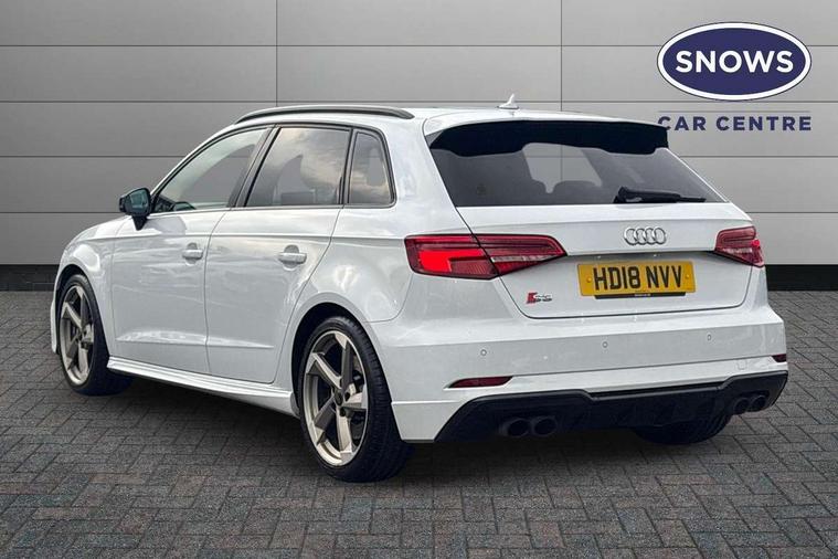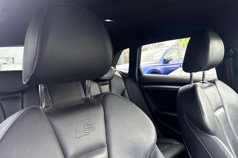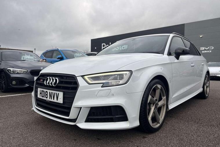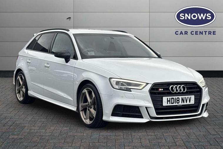 Audi connect, Audi drive select, Audi smartphone interface, Colour driver's information system display, HDD satellite navigation system radio single CD/DVD player MMI control system, Mobile telephone preparation - bluetooth interface, Progressive power assisted steering, Service interval indicator, Speed limit display, Voice control system, S sports suspension, 2 USB ports, Audi music interface, Auxiliary input socket, Bang + Olufsen advanced sound system, CD player, DAB Digital radio, MMI radio plus with 7" colour MMI screen and MMI controller, Auto dimming rear view mirror with light and rain sensors, Black door mirrors, Black window surrounds, Body colour bumpers with black insert, Body colour roof spoiler, Electric front windows, Electric operated/heated door mirrors, Electric rear windows, Headlight washers, Heated windscreen washer jets, LED daytime running lights, Matt black radiator grille, Platinum grey radiator grille with double chrome bars, Privacy glass, Rear wiper, S body styling, Twin oval chrome trimmed exhaust tailpipes, 3 adjustable rear headrests, 3 spoke flat bottomed multi-function leather steering wheel, 4 lashing points to secure luggage, Adjustable front armrest, Dual zone electronic climate control, Front and rear interior lights with delay, Front passenger seat isofix location point, Front/rear floor mats, Heated front seats, Height/depth adjustable steering column, Illuminated glovebox, ISOFIX child seat preparation+airbag deactivation, Jack and tool kit, Rock grey headlining, Stainless steel pedals, Steering wheel gearshift paddles, Storage compartment in centre console, Storage compartment under front seats, Storage compartments in doors, Black styling pack - A3/S3, LED interior light pack - A3/RS3, Non smoking pack - A3, Storage and luggage pack - A3/RS3, 3 point seatbelts on all seats, ABS/EBD, Active bonnet, Active front headrests, ASR, Curtain airbags, Driver and passenger side airbags, Driver/Front Passenger airbags, Drivers knee airbag, EDL, Electromechanical parking brake, ESC - Electronic Stability Control + traction control, Front passenger airbag deactivation, Hill hold assist, Manual rear child locks, Multi-Collision braking, Seatbelt warning, Tyre pressure warning, Warning triangle and first aid kit, Anti theft alarm, Anti-theft wheel bolts, Remote control central locking, Thatcham category 1 alarm + immobiliser, Aluminium air vent surrounds, Aluminium trim elements, Matt brushed aluminium inlays, Space saver spare wheel,