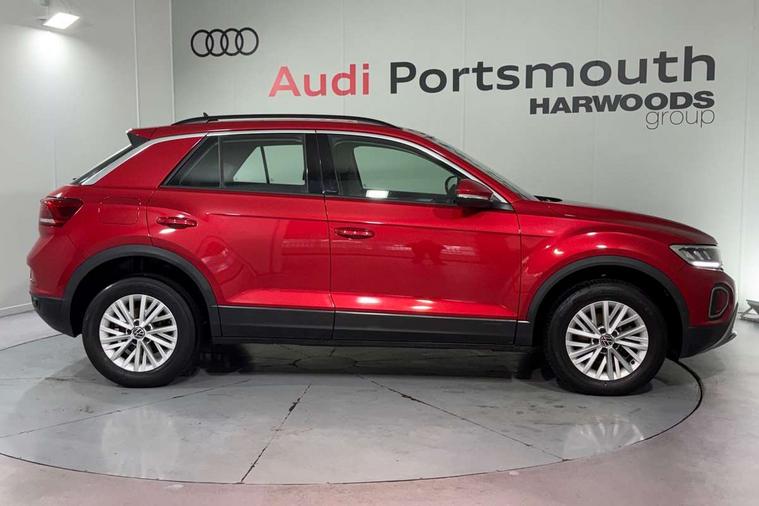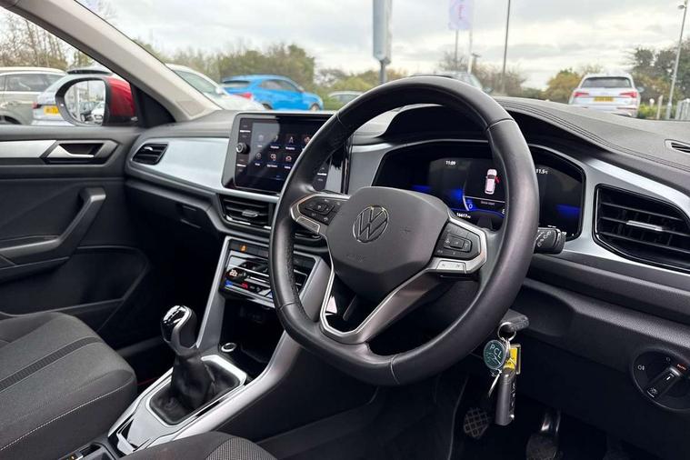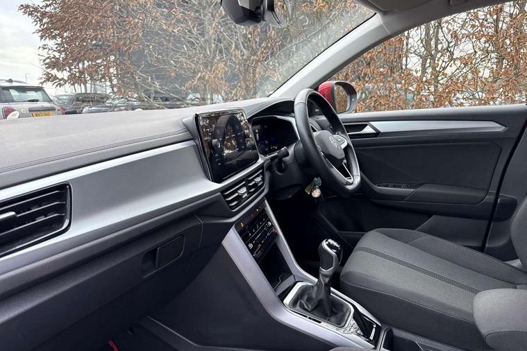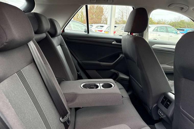 Bluetooth mobile phone interface, Driver alert system with fatigue detection, Driver tips and journey analysis, Emergency call service, Lane keeping system Lane Assist, Modified key software - reduce switch off time for key status change to Long no motion, Online services, Park assist including front and rear parking sensors, Power assisted speed sensitive steering, Service interval indicator, Tailgate/trunk lid release from outside, Think blue trainer driver tips and journey analysis, Warning sound and light for front seatbelts unfastened, Wireless app connect, Battery regeneration during braking, Front shock absorption, Rear shock absorption chassis with increased ride height, Start/stop function with battery regeneration, DAB Digital radio, Diversity antenna for FM reception, Front and rear 6 speakers, Music playback - MP3, WMA and AAC files, Premium USB cable in choice of either Apple or Android smartphone compatibility, SD card slot, Simultaneous pairing of 2 compatible mobile devices, Title and cover art display, We Connect and We Connect Plus functionality, 3rd brake light, Auto dimming interior rear view mirror, Automatic hazard lights activation under emergency braking, Automatic headlight control with LED separate daytime running lights with coming/leaving home function, Black roof rails, Body coloured bumpers and radiator grille with chrome trim and front fog lamps with chrome bezel, Body coloured exterior mirror housings and door handles, Extended roof spoiler, Exterior mirrors aspherical on driver side, convex on front passenger side, External USB type C socket and charging sockets, Front windscreen wiper with intermittent wipe and 4 position delay, Heated rear window, LED Headlights, LED rear combination lamps, LED rear number plate lights, LED tail lamp rear comination lamps, Power windows with comfort operation and circuit breaker, Rain sensor, Rear exhaust tailpipe, Rear fog light on one side and reversing lights on both sides, Rear side wing doors, Rear wash/wipe with intermittent wipe setting, Remote electrically foldable door mirrors, puddle lights and reverse activated passenger's door mirror, 12V power socket in centre console, 3 rear head restraints, 3 seat bench in 2nd row, 4 load lashing points in luggage compartment, Air care climatronic air conditoning system with active combination filter and 2-zone temperature control, Ambient lighting with mirror logo projection, Cloth upholstery, Door and side trim panel in cloth, Drawer under drivers seat, Driver/front passenger seat height adjustment, Front centre armrest, Front comfort sports seats, Front cupholders x 2, Front reading light, Instrument lighting, white adjustable panel illumination, Interior light delay, Isofix child seat preparation, Leather gearshift handle, Load-through provision with cup holder when folded down ('Unsplit rear seat bench, split folding backrest, with centre armrest), Luggage compartment lighting, Lumbar support for driver's and front passengers seat, Non-folding front passenger seat backrest, Single front passenger seat, Storage compartment in left and right luggage area, Storage compartment in rear doors, Storage compartments in driver and front passenger doors, Sunvisors with illuminated vanity mirrors, Variable boot floor, height adjustable and removable, Driver assistance pack without proactive passenger protection - T-Roc, 3 point height adj front seatbelts + pretensioners, 3 point seatbelts in outer rear with ECE label, ABS, Child locks on rear doors, Driver and front passenger airbag with front passenger airbag deactivation, Driver and front passenger safety-optimised head restraints, Drivers seatbelt reminder, Electronic parking brake, Electronic Stability Control (ESC) inc EDL (Electronic Differential Lock) and ASR (Traction Control), Front and rear passengers curtain airbag system including front side airbags, Front assist with city emergency braking and pedestrian monitoring, Front disc brakes, Front seat side impact airbags, Hill start assist, Predictive pedestrian protection, Rear disc brakes, Single tone horn, Tyre pressure loss indicator, Volkswagen roadside assistance, Alarm with interior protection, Anti-theft alarm system with interior monitoring, backup horn, and towing protection, Remote central locking with SAFELOCK, radio remote control with 2 remote control folding keys, Pewter matt decorative inserts for intrument panel, centre console and door panels at the front, Trims for alloy wheels,