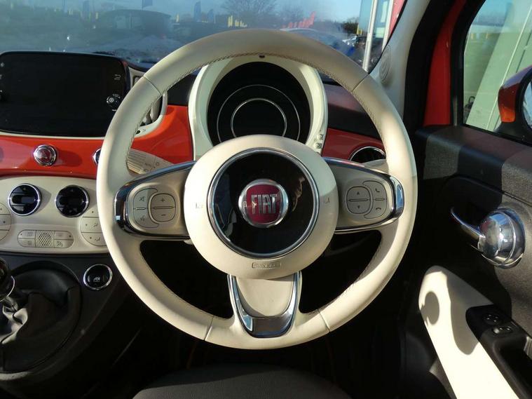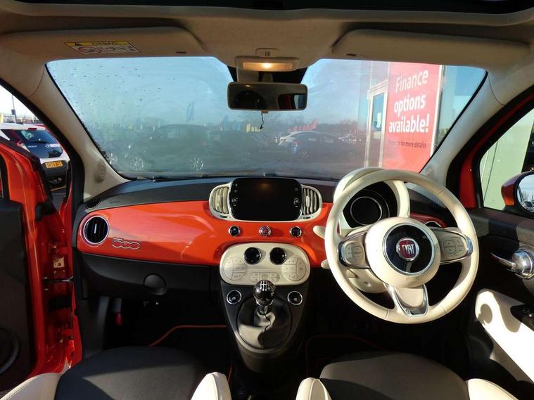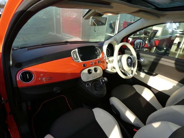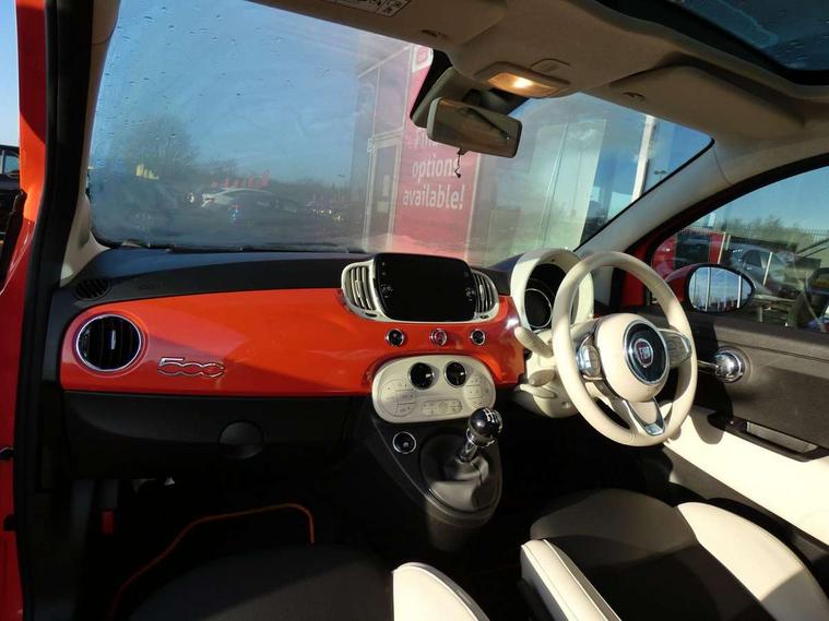 Apple car play/Android Auto, Cruise control, E-call, External temperature gauge, Power assist steering, Rear parking sensor, Speed limiter, Stop/start system, Trip computer, 4 speakers, 7" HD Touchscreen Radio, Bluetooth, USB and DAB, Rear speakers, 3rd brake light, Auto headlights, Body colour bumpers, Body coloured electrically adjustable door mirrors, Chrome plated exterior door handles, Dolcevita badge on fender, Dusk and rain sensors, Electric front windows, Fixed glass sunroof with sunblind, Front fog lights, Halogen headlamps, Heat insulated glass, Heated rear windows with wash wipe, LED daytime running lights, Rear side wing doors, Rear wiper, 1 passenger grab handle, 2 seat bench in second row, 50/50 split folding rear seats with height adjustable rear headrests, Air conditioning, Auxilliary 12V power socket, Chrome kit, Front headrests, Height adjustable drivers seat, Height adjustable steering wheel, Isofix child seat preparation, Single front passenger seat, Techno leather steering wheel with audio controls, 7 airbags - Driver, passenger, side, window and drivers knee airbags, ABS/EBD, ESC + ASR/MSR + HBA + Hill holder, Manual passenger airbag deactivation function, Traction control, Tyre pressure monitoring system, Automatic door locking, Immobiliser, Locking fuel filler cap, Remote central locking, 15" Alloy wheels,