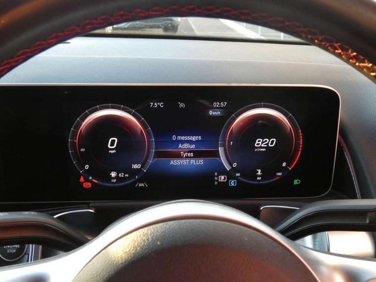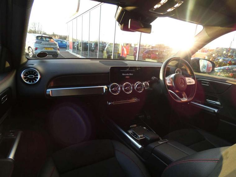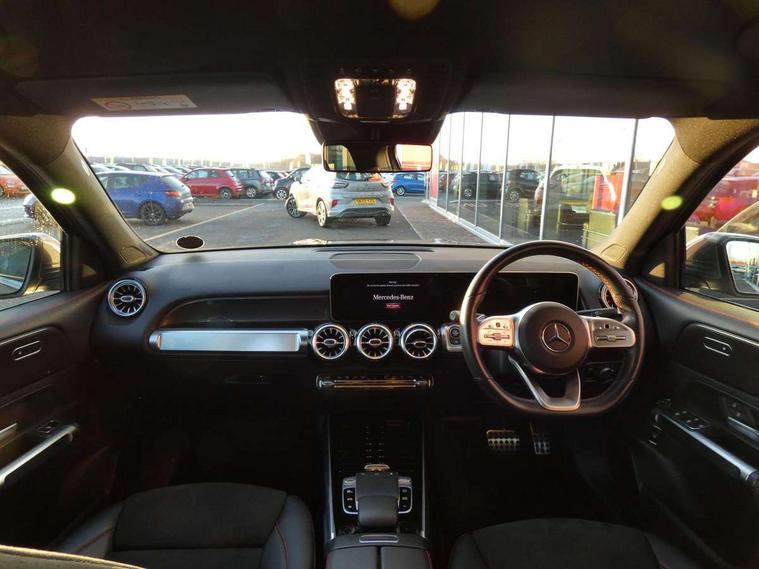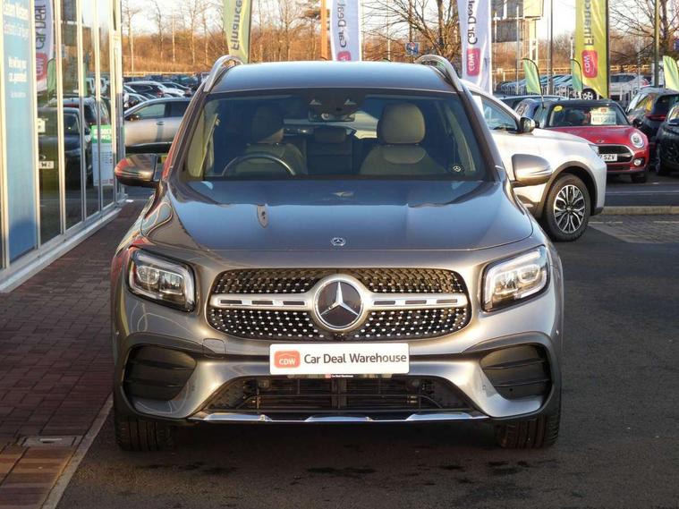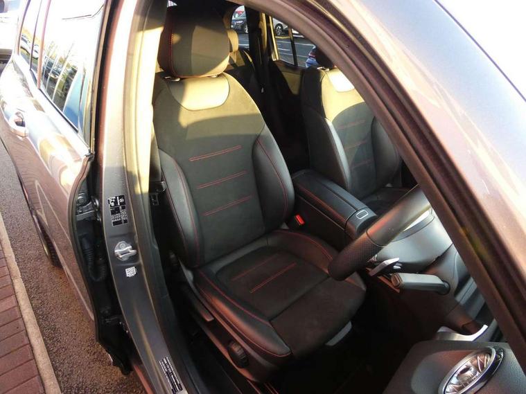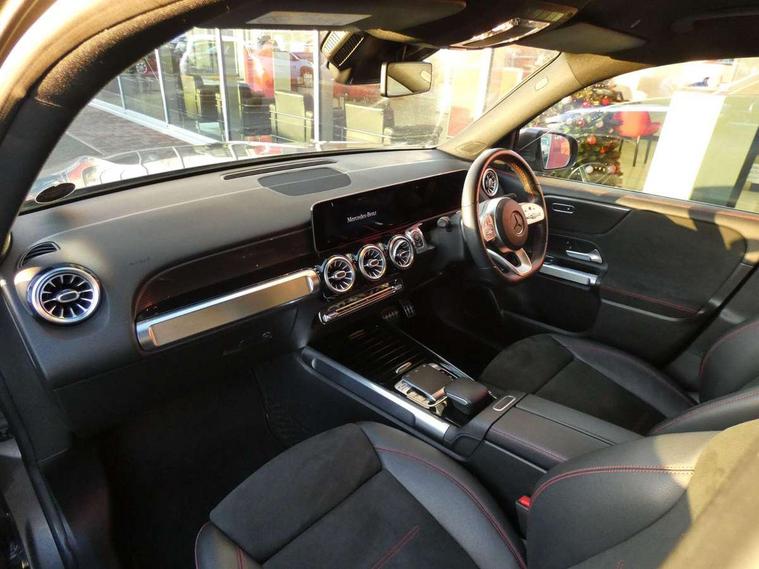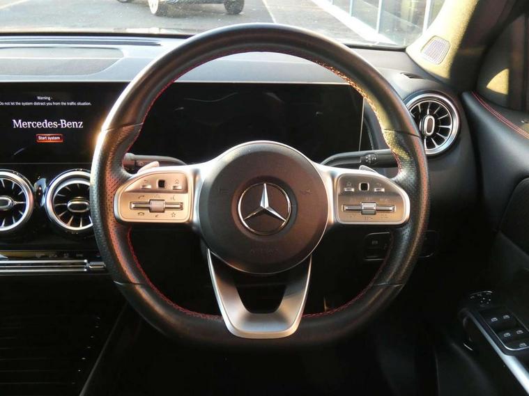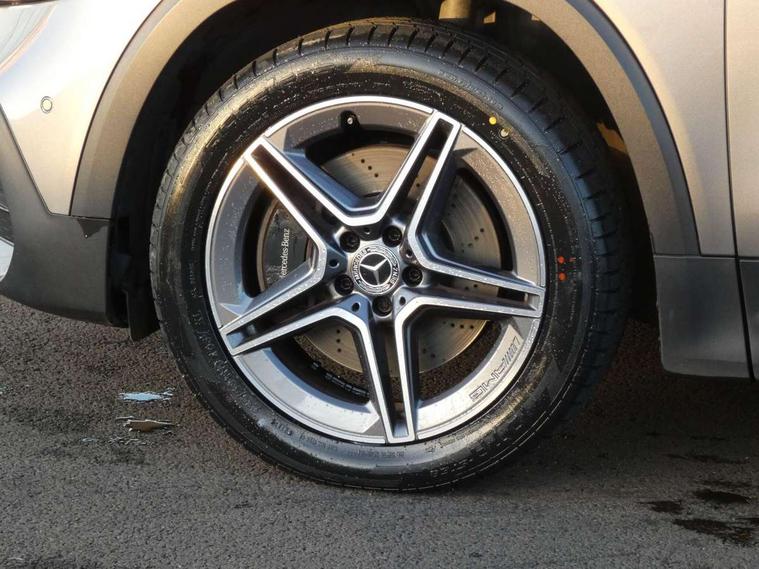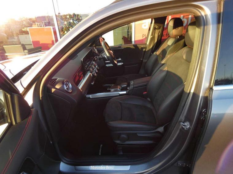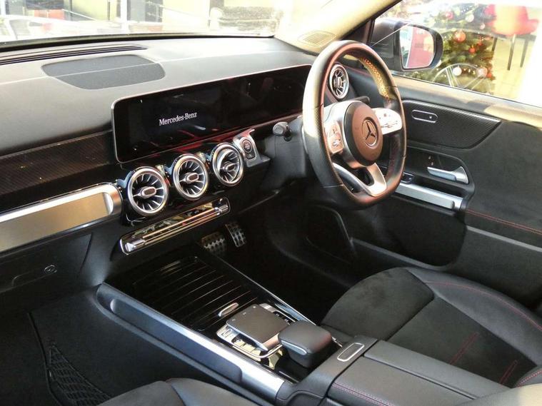 10.25" Digital instrument cluster display screen, 10.25" Digital media screen display, Active lane keeping assist, Attention assist - Monitors steering behaviour and long journey fatigue, Brake pad wear indicator warning light, Cruise control with limiter, DYNAMIC SELECT with a choice of driving modes (ECO, Comfort, Sport and Individual), Easy-pack tailgate, ECO start/stop function, Fluid level warning indicator for fuel, oil, coolant and washer fluid, Hard disk navigation, Hey Mercedes Voice activation, Lamp failure indicator, MBUX augmented reality for navigation, Mercedes me connect including emergency call system, accident recovery, breakdown and maintenance management, Outside temperature gauge, Owners manual and service booklet in English, Parameter steering system, Pre-installation for Vehicle Monitoring, Pre-installation for Vehicle set up, Pre-installation of private car share, Radio aerial integrated into front and rear windshields, Service indicator (ASSYST), Smartphone integration with Apple CarPlay and Android auto, Speed limit assist, Trip computer in multifunction display with current consumption indicator, Wireless charging, 23.8 litre AdBlue fuel tank, 60 litre fuel tank, Comfort suspension, Rear axle multi-link, DAB digital radio tuner, MBUX multimedia system with DAB digital radio and touchpad including satellite navigation, Mercedes Benz advanced sound system (225 W) with 10 speakers, 1 central speaker, speakers on doors, a tweeter on door, one sub woofer + boost amplifier, Pre installation for Mercedes Benz Link, USB (type C) port in front stowage compartment, USB (type C) ports (2) in stowage compartment, Adaptive brake lights, Aerial for GPS, AMG bodystyling door panels black grained with chrome plated inserts, AMG bodystyling front apron with chrome splitter, AMG bodystyling rear apron with diffuser optics and chrome trim element, AMG specific front and rear bumper including underride guard in high gloss chrome, Beltline strips and weather strip in chrome, Body coloured door mirror caps, Electric adjustable and heated door mirrors with integrated LED side indicators, Exhaust system with dual flow exhaust pipes (non-functional), Front and rear electric windows, Headlamp assist automatic headlamp activation, Heated glass rear windscreen + timer control, High level LED third brake light, LED high performance headlamps with integrated LED daytime running lights, LED tail lamp, Polished aluminium roof rails, Pre-installation for trailer coupling, Privacy glass with dark tinting on rear side windows and rear window, Radiator grille with pins in chrome and single louvre with chrome insert, Rain sensor windscreen wipers, Rear fog lamp, Two visible tailpipe trim elements exhaust, 3 spoke multifunction sport steering wheel in nappa leather, Air conditioning - Two zone thermotronic luxury automatic climate control with display, AMG sports pedals with brushed stainless steel surfaces and black rubber studs, Artico man-made leather/Microfibre Dinamica upholstery with red contrast stitching, Automatic child seat recognition sensor, Black floor mats with AMG lettering, Black roof lining, Fore/aft adjustment rear seats, Freight packaging with tie-down hooks, Front centre armrest with stowage, Front door sills with illuminated Mercedes lettering, Front passenger grab handle with brushed side silver chrome, Front sports seats with adjustable head restraints, Galvanished gear shift paddles on steering wheel, Heated front seats, Height/reach adjustable steering column, Interior lighting - 64 colour Ambient lighting, Luggage net on driver/front passenger seat backrest, Net in front passenger footwell, Rear armrest with two integral cup holders for drinks, Spectacles compartment for driver, Stowage compartment in centre console, Stowage compartment with retractable cover, Touchpad on center console, Twin front cup holders, Two outer rear seat isofix and top tether child seat fixing points, Interior lighting with light and sight pack - GLB, Keyless Go comfort pack - GLB, Mirror pack - GLB, Parking pack - GLB, Seat comfort pack - GLB, 3 rear 3 point seatbelts, Active bonnet pedestrain safety measure which detects an impact and raises bonnet by 65mm, Active brake assist includes forward collision warning system with autonomous braking, Adaptive brake assist with hold function and hill start assist, Airbags - kneebag for driver, Anti-lock braking system (ABS) with brake assist, Childproof locks manually operated for rear doors and electrically operated for rear power windows, Crash responsive emergency lighting, Driver and front passenger head and sidebags, Driver and front passenger windowbags, Dual stage driver and front passenger airbags, Electronic parking brake, Electronic stability programme with acceleration skid control, ESP curve dynamic assist, Front and rear seatbelt reminder, Front brake callipers with Mercedes Benz lettering, Front passenger seat occupancy sensor, Perforated and ventilated front brake discs, Tyre pressure monitoring system, Warning triangle and first aid kit, Alarm system with immobiliser and interior protection -Thatcham category 1, Remote central locking and crash sensor with emergency opening function, Vehicle key with decorative surround in chrome, Black air vents with chrome surround, Carbon structure trim, 19" AMG 5 twin spoke light alloy wheels painted in tantalite grey with high sheen finish, Summer tyres, Tirefit tyre sealant kit,