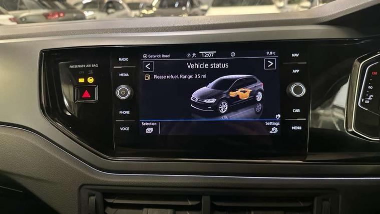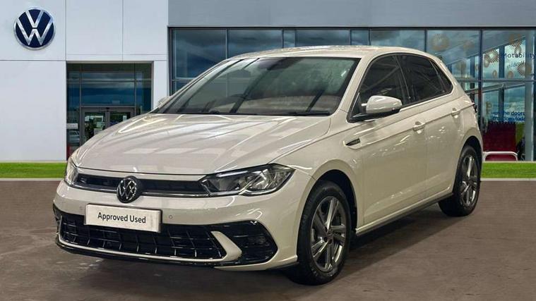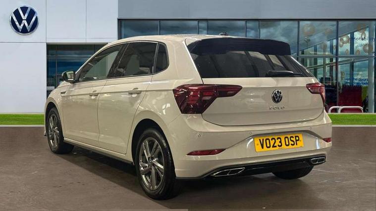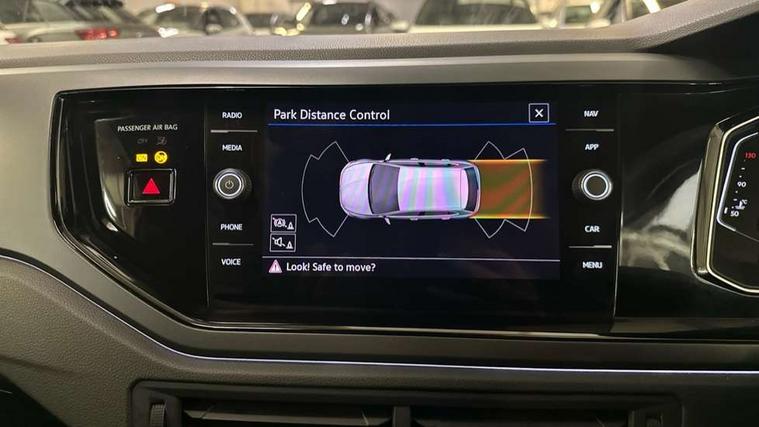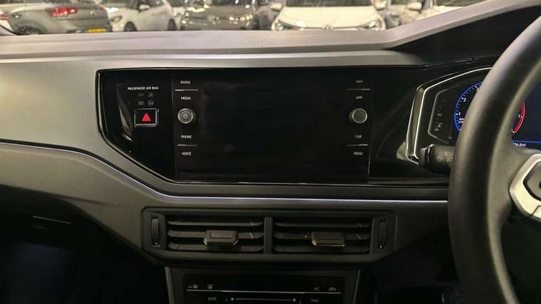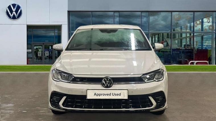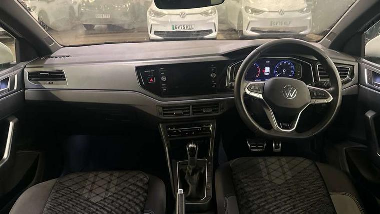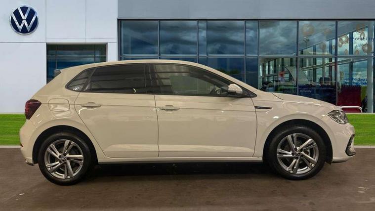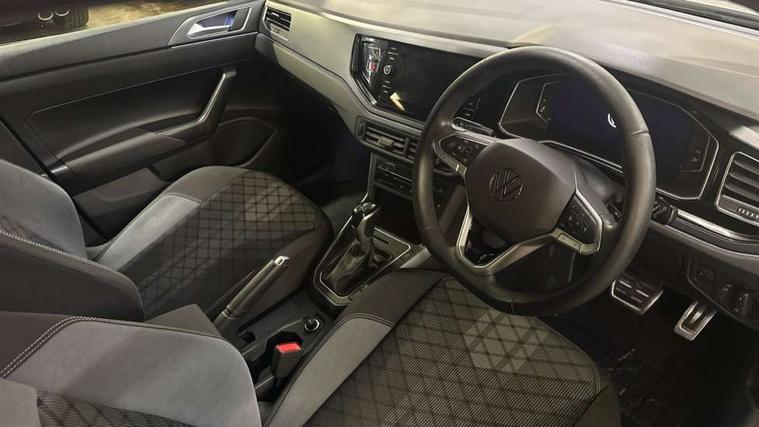 Adaptive cruise control with follow-to-stop and speed limiter, Bluetooth mobile phone interface, Digital Cockpit Pro with 10.25" Display, Driver alert system, Dynamic road sign display, Emergency call service, Power assisted speed sensitive steering, Preparation for We connect and We connect plus, Speedo and rev counter, electronic odometer, trip, service interval display and fuel gauge, Standard rear axle, Travel Assist - Lane keeping system and traffic jam assist, Travel assist including emergency assist, Trip computer, Warning signal and warning light for front and rear seatbelts not fastened, Washer fluid level indicator, Wireless app connect, Front wheel drive, Rear shock absorpion, Start-stop system with battery regeneration (recuperation - energy recovery during braking), DAB Digital radio, Diversity antenna for FM reception, Front and rear 6 speakers, Body colour bumpers, Body colour door handles, Electric front windows, Front scuff plates with R-Line logo, Heat insulating darkened glass in side and rear windows, Heat insulating glass windscreen, Power folding adjustable/heated exterior mirrors and front passenger exterior mirror lowering function, Rear electric windows, Rear fog light, Rear side wing doors, Rear windscreen washer and wiper with interval delay, Third brake light, 12V power socket in centre console, 2 USB-C ports in the front, 2 USB-C charging sockets on the center console in the rear, 3 rear head restraints, 60/40 split folding rear seat and rear seat bench not split, Air care climatronic air conditoning system with active combination filter and 2-zone temperature control, Black roof lining, Chrome plated radiator grille inserts, air vent surrounds and light switch surrounds, Door and side trim panel, Driver and front passenger seat height adjustment, Driver/passenger sunvisors with illuminated vanity mirrors, Front + rear carpet mats in recycled material, Front centre armrest, Front footwell illumination, Front seat backrest storage pockets, Front sports comfort seats, Handbrake lever handle in leather, Headliner in recycled material, Isofix child seat preparation easy-fit (for two outer rear seats, and front passenger seat) compatible with I-size, Karoso artvelours cloth upholstery, Leather trimmed gear knob, LED interior light with switch off delay and dimmer, 2 reading lights front and rear, Luggage compartment cover, Luggage compartment floor, Luggage compartment lighting, Lumbar adjustment for front seats, Single front passenger seat, Stainless steel pedals, Standard pedal cluster, Three spoke leather wrapped multifunction steering wheel with shifting paddles, Light and sight pack - Polo R-Line/Black Edition, 3 point height adj front seatbelts + pretensioners, 3x3 point rear seatbelts, ABS, Driver and front passenger airbag with front passenger airbag deactivation, Drivers and front passengers safety optimised head restraints, ESC (Electronic stability control) + EDL (Electronic Differntial lock) and ASR (Traction control), Extended and predictive pedestrian/ cyclist protection, Front curtain and side airbags with center airbag, Hill hold control, Manual child lock in rear doors, Single tone horn, Tyre pressure loss indicator, Alarm with interior protection, Anti-theft alarm system with interior monitoring, backup horn, and towing protection, Anti-theft wheel bolts, Electronic engine immobiliser, Chrome applications on rotary light, mirror adjustment, window regulator switches, outlet with frame in black, Dark grey anodised matt decorative inserts in dash and front door panels, Low rolling resistance tyres,