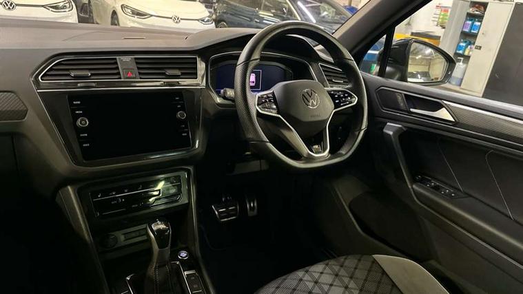 Adaptive cruise control ACC stop and go including speed limiter, App-Connect incl. App-Connect Wireless for Apple CarPlay and Android Auto, Bluetooth phone integration system, Distance control assist, Driver alert system, Driver profile selection, Dynamic road sign display, eCall emergency call system, Electromechanical speed sensitive power steering, Engine start/stop button, Lane keeping system Lane Assist, Lights on warning, Multifunction front facing camera, Outside temperature display, Premium multifunction display with multi colour display, Remote control boot opening, Rev counter, Revision / skills operating concept travel assistant, Service interval indicator, Speed limit display, Start/stop system with regenerative braking, Trip computer, Warning sound and light for doors and tailgate open, Battery regeneration during braking, Diesel particulate filter, Misfuel prevention device for diesel engine, Selective Catalytic Reduction, XDS electronic differential lock for improved traction and handling, 4 X 20 watt output, 8 Speakers, Diversity antenna for FM reception, Radio, SD card slot, Simultaneous pairing of 2 compatible mobile devices, SMS functionality - read, compose and send SMS messages using touch-screen display, Title and cover art display, USB C ports, Auto dimming interior rear view mirror, Automatic headlight control system, Body colour door handles, Chrome moldings on the side windows, Coming/leaving home lighting function, Dynamic headlight range control, Front and rear electric windows, Heated rear window, High level 3rd brake light, Laminated safety glass windshield, heat and sound insulating, LED headlamps with LED separate daytime running light and dynamic cornering light, LED rear combination lamps, LED rear number plate lights, License plate carrier in front and rear, Poor weather light and cornering light, R Line body kit, R Line side sills, Rain sensor windscreen wipers, Rear exhaust tailpipe, Rear fog lamp, Rear side wing doors, Rear spoiler in R style, Rear windscreen washer and wiper with interval delay, Side and rear windows in heat insulating glass, Trailer Stability Programme, Unique R Line badging, Windscreen wipers/ intermittent wipe + 4 position delay, 12V outlet in center console rear and in luggage compartment, 12V outlet in front and tray, 2 cup holders in front, 2 LED front reading lights, 2 LED rear reading lights, 3 bench rear seats in 2nd row, 3 rear headrests, 4 load lashing points, 40:20:40 split folding rear seats, Air Care Climatronic 3 zone automatic climate control with enhanced air filter and controls in the rear, Backrest release for left front seat, Black headlining, Brushed stainless steel pedals and footrest, Carpet mats in front and rear with decorative stitching in Gray, Climate control unit rear with touch function, Door and side trim panel in foam film, insert in leatherette, Front centre armrest, Front footwell illumination, Front seats head restraints (x-adjustment), Height adjustable front seats, Height/reach adjust steering wheel, Instrument lighting white adjustable panel illumination, Interior light with delay, Isofix Preparation 2 Rear child seats, Leather gear knob, Lockable cooled glovebox, Luggage compartment lighting, Luggage net, Rear bench seat asymetrically split folding, longitudinally movable and folding with load-through hatch and center armrest, Remote unlocking for rear seat backrest, Removable luggage cover, Removable rear headrests, Safety optimised front head restraints, Single front passenger seat, Sliding/reclining rear seats, Standard rear seat release, Storage compartment in driver's door, Storage compartment in passenger's door, Storage compartment in rear doors, Storage compartments in luggage area left and right, Storage tray on dashboard, Sun visors with illuminated vanity mirrors, Top front comfort seats, Variable boot floor, height adjustable and removable, Driver assistance pack plus - Tiguan DSG, 3 point seat belt for centre rear seats, 3 point seat belts with seat belt pretensioners for the outer rear seats, Active bonnet, Curtain airbags for front and rear passengers, Driver/Front Passenger airbags, Drivers knee airbag, Electronic parking brake with auto hold, Electronic Stability Control with driver steering recommendation, ABS, ASR, EDL, EDTC and trailer stabilization, Front assist with autonomous emergency braking (for Adaptive Cruise Control ACC up to 130 mph), Front disc brakes, Front passenger airbag deactivation, Front side airbags, Height adjustable front 3 point seatbelts + pretensioners, Hill hold control, Manual child proof rear door locks, Pedestrian monitoring system, Power assisted brakes, Proactive passenger protection system in combination with front assist, Rear disc brakes, Rigid safety cell with front and rear crumple zones, Two tone horn, Warning sound and light for front seat belts if unfastened, Anti theft alarm system with interior monitoring, backup horn and towing protection, Anti theft wheel bolts, Electronic engine immobiliser, Tool kit,
