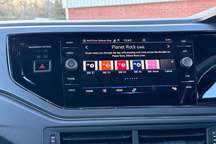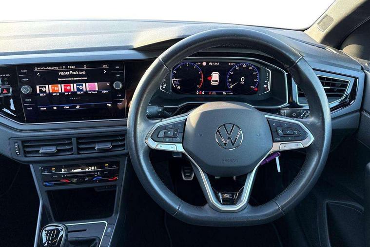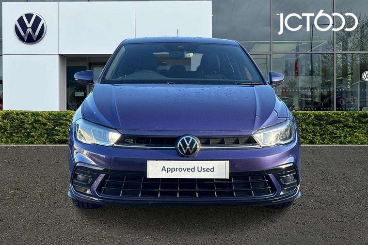 Adaptive cruise control without follow-to-stop and speed limiter, Bluetooth mobile phone interface, Digital Cockpit Pro with 10.25" Display, Driver alert system, Dynamic road sign display, Emergency call service, Power assisted speed sensitive steering, Preparation for We connect and We connect plus, Speedo and rev counter, electronic odometer, trip, service interval display and fuel gauge, Standard rear axle, Travel Assist - Lane keeping system and traffic jam assist, Travel assist including emergency assist, Trip computer, Warning signal and warning light for front and rear seatbelts not fastened, Washer fluid level indicator, Wireless app connect, Front wheel drive, Rear shock absorpion, Start-stop system with battery regeneration (recuperation - energy recovery during braking), DAB Digital radio, Diversity antenna for FM reception, Front and rear 6 speakers, Body colour bumpers, Body colour door handles, Body colour door mirrors, Electric front windows, Front fog lights with static cornering function, Front scuff plates with R-Line logo, Heat insulating darkened glass in side and rear windows, Heat insulating glass windscreen, Power folding adjustable/heated exterior mirrors and front passenger exterior mirror lowering function, Rear electric windows, Rear fog light, Rear side wing doors, Rear tinted glass from B-pillar backwards approx 65% tinted, Rear windscreen washer and wiper with interval delay, Third brake light, 12V power socket in centre console, 2 USB-C ports in the front, 2 USB-C charging sockets on the center console in the rear, 3 rear head restraints, 60/40 split folding rear seat and rear seat bench not split, Air care climatronic air conditoning system with active combination filter and 2-zone temperature control, Black roof lining, Ceramique headliner, Chrome plated radiator grille inserts, air vent surrounds and light switch surrounds, Door and side trim panel, Driver and front passenger seat height adjustment, Driver/passenger sunvisors with illuminated vanity mirrors, Front + rear carpet mats, Front centre armrest, Front footwell illumination, Front seat backrest storage pockets, Front sports comfort seats, Handbrake lever handle in leather, Isofix child seat preparation easy-fit (for two outer rear seats, and front passenger seat) compatible with I-size, Karoso artvelours cloth upholstery, Leather trimmed gear knob, LED interior light with switch off delay and dimmer, 2 reading lights front and rear, Luggage compartment cover, Luggage compartment floor, Luggage compartment lighting, Lumbar adjustment for front seats, Multifunction steering wheel, Single front passenger seat, Stainless steel pedals, Standard pedal cluster, Light and sight pack - Polo R-Line/Black Edition, 3 point height adj front seatbelts + pretensioners, 3x3 point rear seatbelts, ABS, Driver and front passenger airbag with front passenger airbag deactivation, Drivers and front passengers safety optimised head restraints, ESC (Electronic stability control) + EDL (Electronic Differntial lock) and ASR (Traction control), Extended and predictive pedestrian/ cyclist protection, Front curtain and side airbags with center airbag, Hill hold control, Manual child lock in rear doors, Single tone horn, Tyre pressure loss indicator, Alarm with interior protection, Anti-theft alarm system with interior monitoring, backup horn, and towing protection, Anti-theft wheel bolts, Electronic engine immobiliser, Chrome applications on rotary light, mirror adjustment, window regulator switches, outlet with frame in black, Dark grey anodised matt decorative inserts in dash and front door panels, Low rolling resistance tyres,