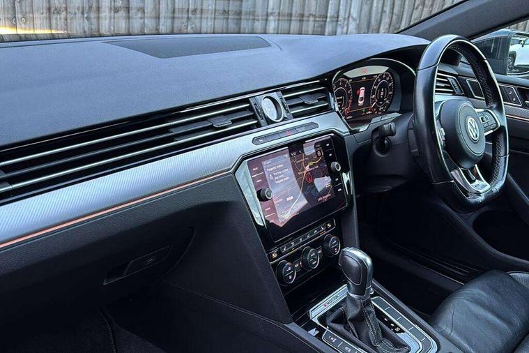 'Lights On' Reminder warning buzzer, 8" touch screen, Active information display, Adaptive Cruise Control with pedestrian detection and speed limiter, Analogue clock, App-Connect, Door/tailgate open warning lights, Driver alert system, Driver profile selection, Lane assist, Press and drive key, Progressive power assisted steering, Remote tailgate release, Rev counter with fuel gauge, Service interval indicator, Speedometer, Start/Stop function, Traffic message channel (TMC), Warning buzzer and light for front seatbelts unfastened, Battery regeneration during braking, Part galvanised body, CD/MP3/WMA, USB and SD card reader, DAB Digital radio, Dynamic navigation based on TMC+, MDI with USB/iPod connection cables, Premium USB cable in choice of either Apple or Android smartphone compatibility, SMS functionality - read, compose and send SMS messages using touch-screen display, Title and cover art display, Volkswagen media control, Auto dimming driver's door mirror, Auto dimming rear view mirror, Automatic activation of hazard warning lights, Automatic coming/leaving home lighting function, Automatic headlights with dusk sensor, Body colour bumpers, Body colour door handles, Chrome headlight surround, Chrome louvres in grille, Chrome side window surrounds, Dynamic light assist, Electric adjustable/heated/folding door mirrors, Emergency release function in rear tailgate, Front and rear electric windows, Front fog lights, Headlight range control, Headlight washers, Heated rear window, Heated windscreen washer jets, High beam assist, High level 3rd brake light incorporating LED Technology, LED daytime running lights, LED headlights with dynamic curve lighting, LED rear lights, LED tinted rear light clusters with dynamic indicators, Left and right chrome effect trapezoid dummy exhaust tailpipe surrounds, Left and right chrome effect trapezoid exhaust tailpipes, Left and right chrome trim on lower bumper, Left and right chrome trim on lower doors, Matt chrome door mirrors, Rain sensor, Reverse activated kerb-view adjustment on passenger's door mirror, Side skirts with chrome inserts, Stainless steel door sill protection, Tinted rear windows, Trailer stability assist, Windscreen wipers/ intermittent wipe + 4 position delay, 12V Accessory socket in centre console, 12v socket in front centre armrest storage compartment, 2 bag hooks in luggage compartment, 3 rear head restraints, 3 spoke multi-function leather steering wheel, 3 Zone electronic climate control with automatic air recirculation, 60/40 split folding rear seat, Aluminium finish interior door handles, Aluminium trim on upper and lower air vents extending across cockpit, Ambient lighting, Cover for storage compartment in centre, Front + rear carpet mats, Front and rear interior lighting with delay and dimming function, Front centre armrest with storage box and rear air vents, Front cupholders x 2, Front footwell lights, Front seat and rear pockets, Gearshift paddles, Heated front seats, Height adjustable head restraints, Height/reach adjust steering wheel, Isofix system on outer rear seats, Jack and tool kit, LED reading lights, Load through provision, Lockable, illuminated, cooled glovebox, Luggage compartment lighting, Mistral headliner, Nappa leather upholstery, Rear armrest with 2 cupholders, Removable luggage cover, Stainless steel foot rest, Stainless steel pedals, Storage box in luggage compartment, Storage compartment in driver's door, Storage compartment in passenger's door, Storage compartment in rear doors, Sunvisors with illuminated vanity mirrors, USB charging point, 3 rear 3 point seatbelts + pretensioners, ABS+EBD+Brake assist, Active bonnet, Driver/Front Passenger airbags, Driver/Front passenger WOKS head restraints, Drivers knee airbag, Electronic parking brake with auto hold, ESP with EDL + ASR, Front and rear curtain airbags, Front and rear seat side impact airbags, Front assist including city emergency braking, Front passenger airbag deactivation, Front ventilated disc brakes and rear disc brakes, Height adjustable front 3 point seatbelts + pretensioners, Hill start assist, Proactive passenger protection system, Two tone horn, Tyre pressure warning, Warning triangle, Alarm with interior protection, Anti-theft wheel bolts, Electronic engine immobiliser, Remote central locking with 2 remote folding keys, Piano black centre console, Full size alloy spare wheel,