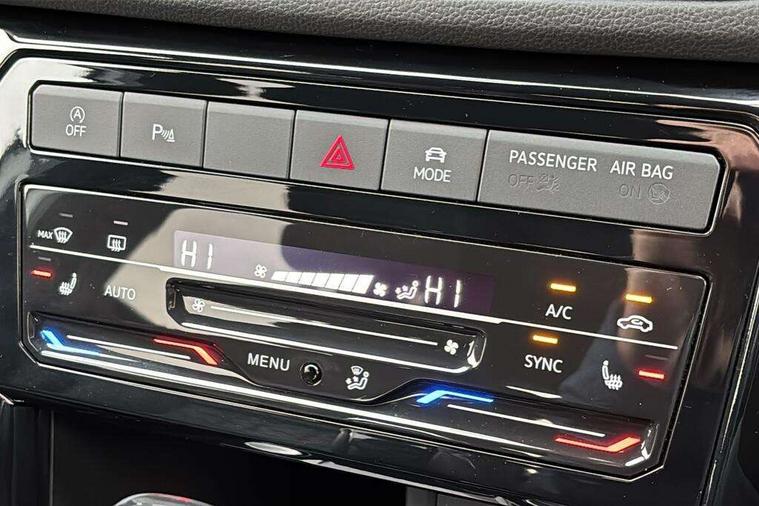 'Lights On' Reminder warning buzzer, 10.25" Digital cockpit pro, Advanced driver attention and drowsiness monitor, Car information display, Driver profile selection including ECO function, Dynamic road sign display, E-Sim card for online connectivity, eCall emergency call system, Front and rear parking sensors, Front assist, forward collision warning, autonomous emergency braking and speed limiter, Low washer fluid warning light, Mobile phone interface with inductive charging, Multifunction computer with visual gear change recommendation for fuel consumption, Multifunction front facing camera for distance control, Operating permit alteration, Power assisted steering, Predictive adaptive cruise control, Preparation for navigation system with media and internet package, Preparation for We connect and We connect plus, Semi-automated driving assistance, travel assist including lane keeping system Lane Assist and emergency assisst, Side assist, Speedo, rev counter, electronic odometer, trip, service interval display, exterior temperature and fuel gauge, Warning sound and light for doors and tailgate open, Warning sound and light for front seatbelts unfastened, Wireless Car net app connect with Apple CarPlay, combined functionality of Apple CarPlay/Android Auto and MirrorLink, Wireless charging, Misfuel prevention device, Start-stop system with battery regeneration (recuperation - energy recovery during braking), 2 USB C ports in front, 2 USB charging sockets on the centre console in the rear charging capacity upto 45W, Diversity antenna for FM reception, Music playback - MP3, WMA and AAC files, Radio, Advanced high beam control dynamic light assist, Automatic dimming interior rear view mirror, Automatic hazard lights activation under emergency braking, Automatic headlight control and coming home and leaving home feature, Black roof rails, Body colour door handles, Body coloured bumpers, Cornering light and poor weather light, Dynamic headlight range control, Electric folding door mirror, adjustable, heated with front passenger exterior mirror lowering function, Exterior mirror housings in black, Exterior mirrors convex on the left and aspherical on the right, Front and rear electric windows, Front door sill protectors with R-Line logo, Galvanised body, Heat insulating and laminated safety glass windshield, Heat insulating darkened glass in side and rear windows, Illuminated molding between headlamps, IQ.Light LED matrix headlamps with LED separate daytime running light, LED rear tail lights with dynamic turn signal, LED third brake light, Lower door sills and door pillars in black, Privacy glass for rear side windows and rear window, Rain sensor, Rear fog light on one side, reversing light on both sides, Rear side wing doors, Rear window aerial, Rear window wiper with intermittent control, Reflectors in all doors, Scuff plates, Tailgate with integrated roof spoiler, 12V Accessory socket in centre console, 2 Front and rear reading lights incorporating LED technology, 3 rear head restraints, 3 seat bench in 2nd row, 60/40 split folding rear seat backrest, Air care climatronic 2 zone air conditioning system, Ambient lighting and logo projection, Brushed stainless steel pedals, Chrome plated radiator grille inserts, air vent surrounds and light switch surrounds, Cloth upholstery, Comfort front sport seats, Door and side trim panel, Driver and front passenger sunvisor with vanity mirror, Dust and pollen filter, Front + rear carpet mats, Front centre armrest, Front centre armrest with storage compartment, Front footwell illumination, Front seat back storage pockets, Glove compartment door with light, Heated front seats, Heating and fresh air system with 4 stage blower, Height/reach adjust steering wheel, Instrument lighting white adjustable panel illumination, Interior light with switch off delay and dimmer, Isofix anchors for child seats on outer rear seats and front passenger seats, Leather gearshift handle, Leather wrapped multifunction steering wheel with paddle shift, Luggage compartment floor, Luggage compartment lighting, Manual front seats with height adjustment, Padded dashboard, Removable luggage compartment cover, Single front passenger seat, Storage compartment in drivers and front passengers door, Titanium black roof lining, Unsplit sliding rear seat bench, Without drawers under front seats, 3 point outer rear seat belts with ECE label, 3 Point seatbelt for centre rear seat, Anti-lock Braking System (ABS) with Hydraulic Brake Assist (HBA), Automatic post collision braking system, Disc brakes in front, Disc brakes in rear, Driver and front passenger safety-optimised head restraints, Drivers and Front Passengers airbags with front passengers airbag deactivation switch, ESC with EDL and ASR (traction control), Extended and predictive pedestrian/cyclist protection, Front and rear passenger curtain airbag system including front side airbags, Height adjustable front 3 point seatbelts + pretensioners, Hill start assist, Pre crash preventive occupant protection, Proactive passenger protection system in combination with front assist, Rear door child safety locks, Rigid safety cell with front and rear crumple zones, Single tone horn, Tyre pressure loss indicator, Volkswagen roadside assistance, Alarm with interior protection, Anti theft alarm system, Anti theft wheel bolts, Electronic engine immobiliser, Remote tailgate unlocking using key fob, Black decorative trims, Titanium Black Decorative inserts - R Line, 18" York alloy wheels in black, Low rolling resistance tyres,