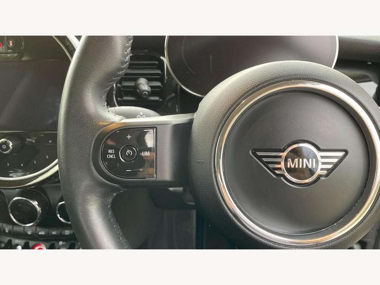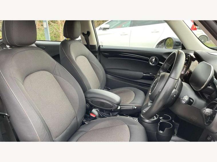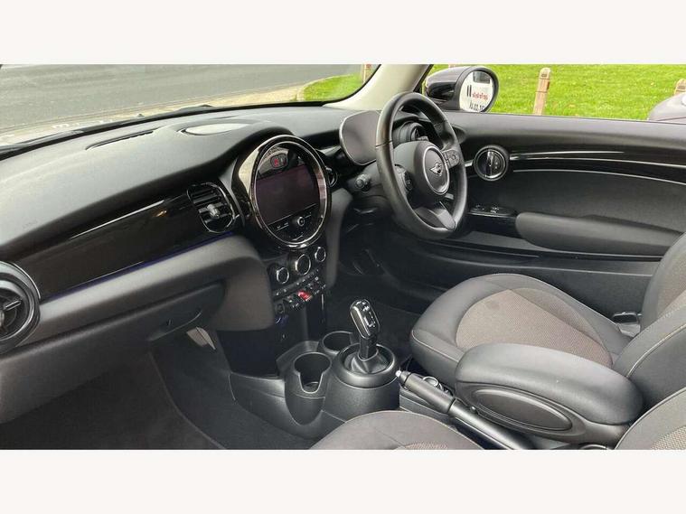 Apple CarPlay, Automatic start/stop function with brake energy recuperation, Compatible mobile phone bluetooth with audio streaming, Cruise control with brake assist, Electro-mechanical speed dependant steering assistance, Flexible car sharing preparation, Instrument cluster, Mini E-call, MINI TeleServices, On board computer, Service interval indicator, Double Vanos system, Fully variable valve control, High precision injection, Performance Control, Steptronic transmission with double clutch, 8.8" touchscreen with LED ring, FM tuner and DAB digital radio, 3rd brake light, Automatic headlight activation switch, Body colour fuel filler cap, Chrome border high gloss black slats radiator grille, Dynamic brake lights, Electric front windows, Exhaust tailpipe on left with chrome finisher, Heated rear window, Heated windscreen washer jets, LED headlight with closed ring and daytime driving lights, Metal door sill strips with MINI imprint, Model logo Cooper on right of tailgate, Rain sensor window wipers, Rear fog lights, Rear LED lights with union jack design, Rear window wiper, Side scuttle panel with integrated indicator, Sun/heat protection glass, White indicator lenses, 12V Accessory socket in centre console, 2 seat bench in 2nd row, 4 lashing eyes in luggage compartment, 60/40 split folding rear seat, Ambient lighting, Carbon black colour line - Knee roll and door armrest, Chrome interior highlights, Cupholders, Front and rear head restraints, Front and rear isofix with front passenger airbag deactivation, Front floor mats in velour, Glove compartment, Height and length steering column adjustment, Interior lighting with 12 different colours across the dashboard, underneath door bezel with illuminated laser-engraved design on central display, Leatherette gearshift lever and handbrake gaiters, LED reading lights, vanity mirror lights, front foot well light and spotlight on front seats, Manual air conditioning, Mechanical seat adjustment - forward/back & backrest for front seats and driver seat height adjust, Multifunction steering wheel, Passenger seat height adjuster, Satellite grey headlining including grab handles and clothes hooks, Single front passenger seat, Sport leather steering wheel with speed limiter and audio/communication controls, Storage compartments in doors, Sunvisors with vanity mirrors, 3 point seatbelts on all four seats, 6 Airbags - front, side, head and seat belt tensioners, Anti-lock braking system (ABS), DSC - Dynamic Stability Control, Front and rear disc brakes, Single tone fanfare horn, Tyre pressure monitoring system, Alarm system with tilt sensor, monitoring doors, bonnet interior and tailgate, Electronic vehicle immobiliser, Start/stop toggle with keyless go, Piano black interior trim, Tool kit, Tyre repair kit,