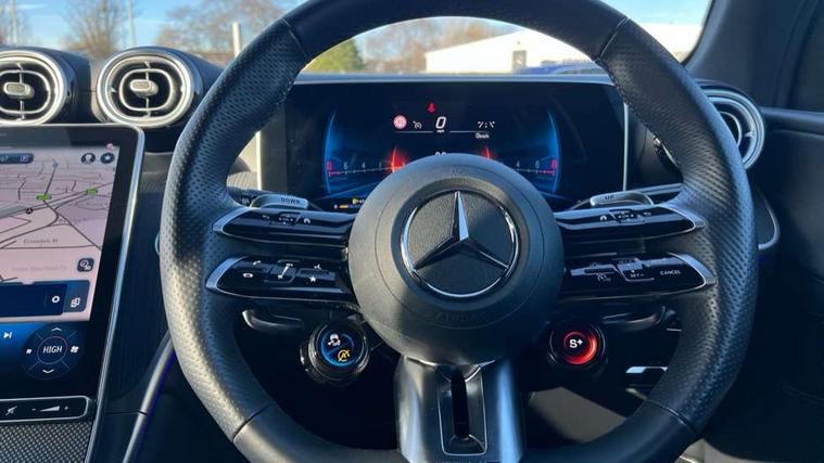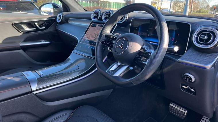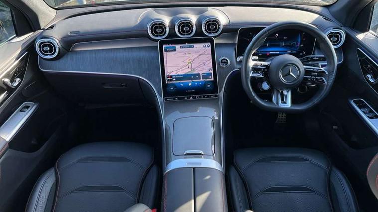 11.9" high resolution multimedia colour display, 12.3" Digital individually configurable instrument display, 360 degree view camera, Active brake assist plus, Active parking assist with parktronic system, AMG DYNAMIC SELECT with a choice of driving modes (Slippery, Comfort, Sport, Sport+, Individual), Attention assist, Blind spot assist, Bluetooth interface for hands free telephone, Dashcam - front camera for video recording, Easy pack automatic powered tailgate, eCall emergency call system, MBUX augmented reality for navigation, MBUX navigation premium, MBUX voice control activated by keywords "Hey Mercedes", Mercedes connect me with remote online services, Outside temperature display, Pre-installation for digital key transfer, Rear axle steering, Remote boot release, Service indicator (ASSYST), Smartphone integration, Speed limit assist, Sports direct steer system with speed sensitive steering, Status display for rear seat belts in instrument cluster, Traffic sign assist, Trip computer, Wireless charging surface integrated into quick stowage tray in front of centre console, 4MATIC permanent four wheel drive, 63 litre fuel tank, 9G TRONIC plus automatic transmission, Agility control comfort suspension, Petrol Particulate Filter (PPF), DAB digital radio tuner, MBUX extended functions, Adaptive brake lights, AMG bodystyling front apron, rear apron and side skirts, AMG exhaust system with sporty engine sound, AMG fuel cap, AMG radiator grille with vertical struts in high gloss chrome and AMG logo, AMG spoiler lip, Auto dimming rear view mirror, Auto headlights, Body colour door mirrors, Chrome roof rails, Digital light LED headlights, Electric windows with one touch opening/closing and obstruction sensors, Electrically adjustable and heated door mirrors, Headlight washers, Heat and noise insulating acoustic glass, Heated rear window, High level LED brake light, Illuminated front door sill panels, Integrated LED daytime running lights, LED indicator lights, LED rear fog lights, LED tail lamp, Mercedes AMG exterior, Rain sensor windscreen wipers, Range adjustable headlights, Rear side wing doors, Rear wiper, Tinted glass all round green, Variable front intermittent wipers, Welcome and follow-me home light functionality, 3 seat bench in 2nd row, 3 Spoke multi function AMG steering wheel in black nappa leather, 40:20:40 split folding rear seats, Ambient lighting, AMG sports seats, AMG steering wheel buttons, Artico leather dashboard with contrast stitching, Audio and onboard settings control on multifunction steering wheel, Automatic child seat recognition sensor, Black floor mats with AMG lettering, Double cup holder in centre console, Electrically height/reach adjustable steering column, Front centre armrest with stowage compartment, Front head restraints, Gearshift paddles on steering wheel, Heated front seats, Illuminated door sill panels with AMG lettering and with exchangable cover, Illuminated glove compartment, Load compartment cover, Mercedes AMG interior, Rear head restraints, Rear top tether child seat ISOFIX attachment, Single front passenger seat, Sports pedals with stainless steel surfaces and rubber studs, Sun visors with illuminated vanity mirrors, THERMATIC 2 zone automatic climate control, Interior lighting pack - GLC AMG, Memory pack - GLC, Mirror pack - GLC AMG, Seat comfort package - GLC AMG, Stowage pack - GLC AMG, USB Plus Pack - GLC, 3 rear 3 point seatbelts, Active bonnet, Adaptive brake system with HOLD function and brake drying in the wet, Anti-lock braking system (ABS), Child proof door locks, Dual-stage airbags - driver and front passenger, sidebags in front seats, driver kneebag, pelvis bag and window bags for driver, Electronic key chrome surround, Electronic parking brake, Electronic Stability Programme (ESP), Front and rear seatbelt reminder, Front passenger seat occupancy sensor, Front seatbelt pretensioners, Hill start assist, Silver brake calipers, Tyre pressure monitoring system, Warning triangle and first aid kit, Central locking with interior switch, automatic locking and crash sensor with emergency opening function, Guard 360 degree vehicle protection, Immobiliser, Keyless Go comfort access, Anthracite linestructure lime wood trim, Black open-pore aluminium lines wood trim, Centre console in metal structure finish, 21" AMG Y spoke light alloy wheels painted in tantalum grey with high sheen rim finish, TIREFIT with tyre inflation compressor,