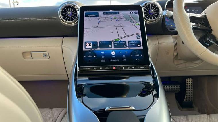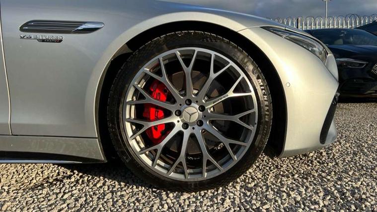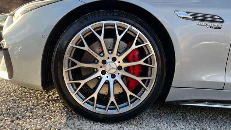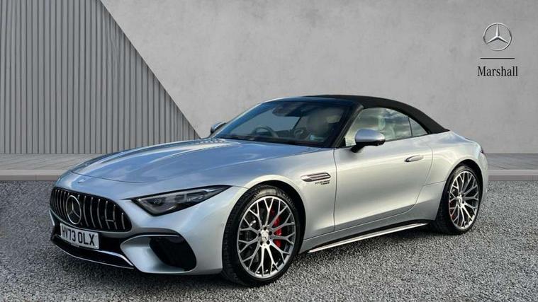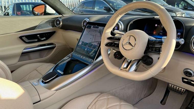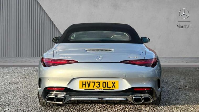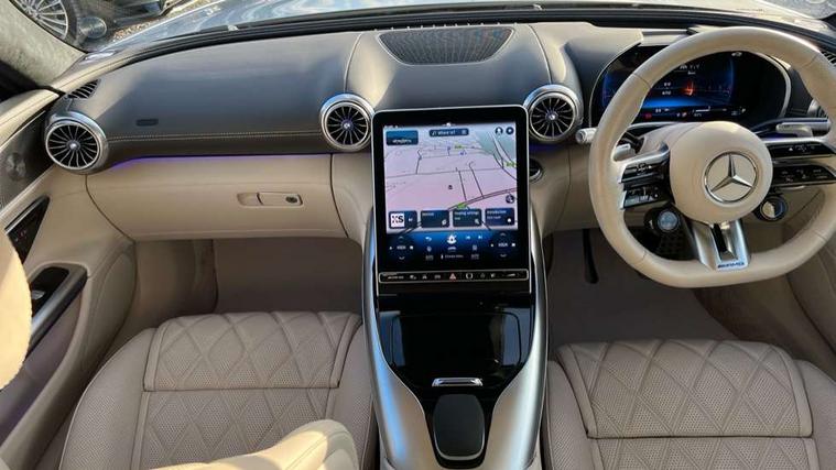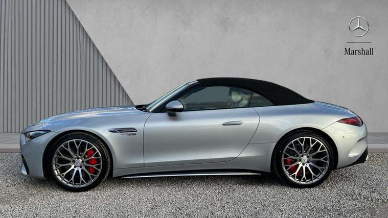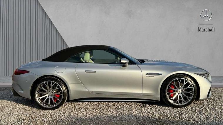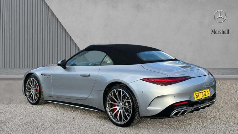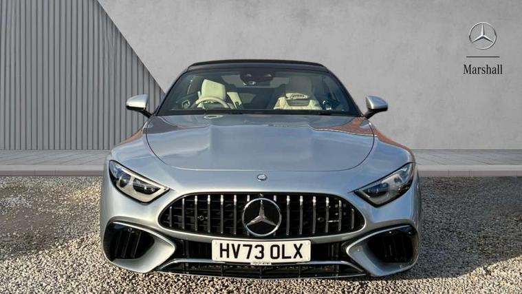 AMG track pace, Attention assist, Bluetooth interface for hands free telephone, Central display, Cruise control, Driver display, Fingerprint scanner, Head up Display, Lane keeping assistant (LKA), MBUX augmented reality for navigation, MBUX Interior assistant, MBUX navigation premium, Mercedes-Benz emergency call system, Outside temperature gauge, PAS, Rear axle steering, Remote Services Premium, Service indicator (ASSYST), Smartphone integration with Apple CarPlay, Traffic sign assist, Trip computer, USB adapter cable, Wireless charging system for mobile devices in the front, AMG Ride Control suspension, AMG SPEEDSHIFT MCT 9-speed automatic sports transmission, Burmester surround sound system, DAB Digital radio, 2 Electric windows, 3rd brake light, Adaptive high beam assist plus, AMG body styling, AMG boot lid spoiler in body colour, AMG illuminated door sills with AMG lettering and with exchangeable cover, AMG Light Display - The projector fitted in the side skirts casts AMG lettering onto the asphalt, AMG Real Performance Sound, AMG spoiler lip, Automatic headlights, Body colour bumpers, Digital light headlamps, LED daytime running lights, Magic vision control, Model badge on boot lid and wings in high-gloss black, Rain sensor windscreen wipers, Rear boot, 2 cup holders in front, 2 individual rear seats, Airscarf - neck level heating, AMG Performance steering wheel in nappa leather, AMG steering wheel buttons, Front gesture control, Heated front seats, Manufaktur nappa leather upholstery, Neck-pro front headrests, Single front passenger seat, Steering wheel heating, THERMOTRONIC automatic climate control, AMG exterior chrome pack - SL Class, Energizing pack plus - SL Class, Load compartment pack - SL Class, Memory package - SL Class, Mirror pack - SL Class, Parking pack - SL Class, USB pack plus - SL Class, ABS, Active pedestrian safety system, AMG high performance compound brake system, Automatic roll over protection, Driver and passenger head and side airbags, Dual stage driver/passenger airbags, Electronic parking brake, ESP with ASR, Hill hold function, Manual passenger airbag deactivation function, Pedestrian protection, Red painted brake calipers, Seatbelts in macchiato, Tyre pressure monitoring system, Warning triangle and first aid kit, Keyless go with seemless door handles, KEYLESS-GO starting function, Remote central locking, Urban guard vehicle protection plus, AMG Aluminium trim, 21" AMG multi-spoke light alloy wheels, Summer tyres, Tyre sealant kit,