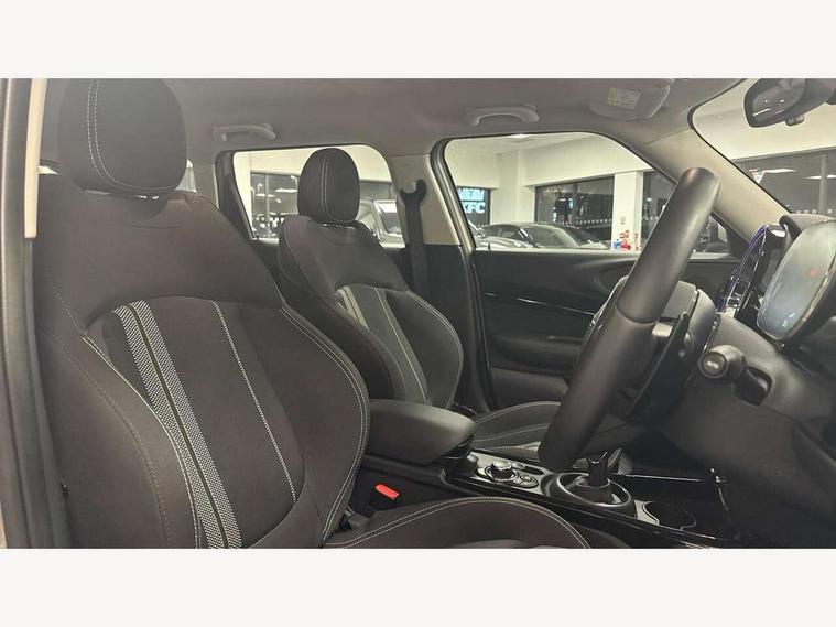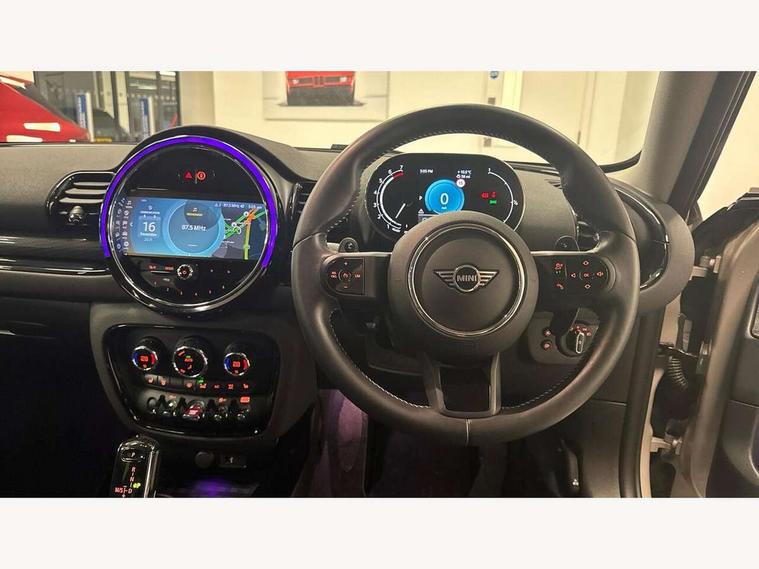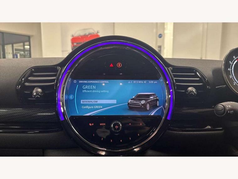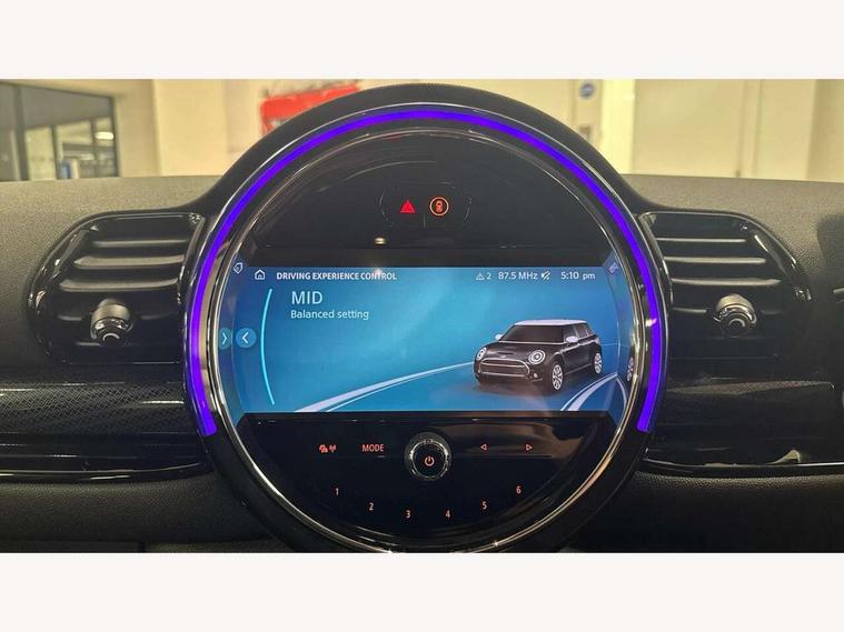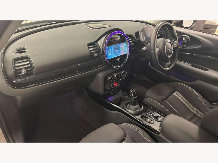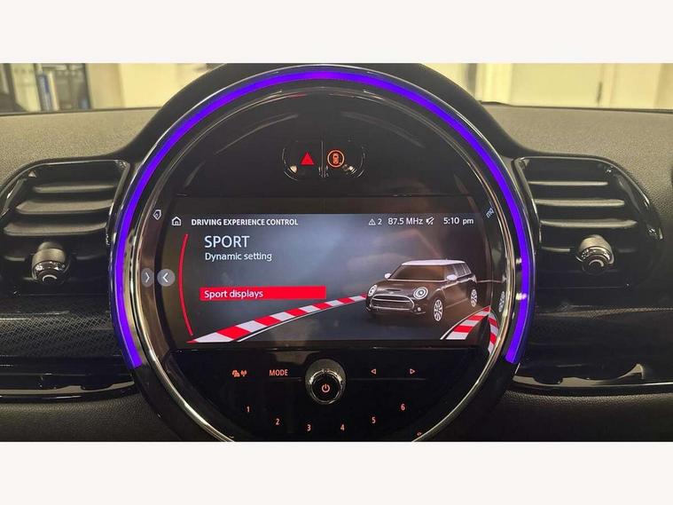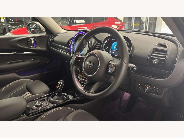 Active Guard incl speed limiting and lane departure functions with auto steering, and front collision warning with brake intervention, Automatic start/stop function with brake energy recuperation, Compatible mobile phone bluetooth with audio streaming, Digital cockpit, Electro-mechanical speed dependant steering assistance, Instrument cluster, Mini E-call, MINI TeleServices, On board computer, Double Vanos system, Fully variable valve control, High precision injection, Performance Control, Steptronic transmission with double clutch, FM tuner and DAB digital radio, Bonnet scoop, Chrome border honeycomb structure radiator grille with S badge, Chrome fuel filler cap, Dynamic brake lights, Electric windows, Heated rear window, Heated windscreen washer jets, LED headlights with closed ring as daytime driving lights, LED rear light with union jack design, Metal door sill strips with Cooper S imprint, Model logo, Model logo on rear doors, Rain sensor with auto headlights, Rear fog lights, Rear window wiper, Side scuttle panel with integrated indicator, Split rear doors, Sun/heat protection glass, Twin exhaust tailpipe, White indicator lenses, 12V Accessory socket in centre console, 3 spoke sport leather steering wheel + limiter function and audio controls, 360L luggage compartment capacity, 4 lashing eyes in luggage compartment, 60/40 split folding rear seat, Chrome interior highlights, Cupholders, English handbook, Front and rear head restraints, Glove compartment, Headliner with grab handles and clothes hooks, Height and length steering column adjustment, Interior lighting with 12 basic colours selectable via toggle switch in roof, Isofix rear child seat preparation, Leather gearshift lever and handbrake gaiters, LED reading lights, vanity mirror lights, front foot well light and spotlight on front seats, Manual air conditioning, Mechanical seat adjustment, driver seat height adjust, forward/back and front seats backrest, Multifunction steering wheel, Storage compartments in doors, Sunvisors with vanity mirrors, Toolkit, Excitement pack - Clubman, Navigation pack - Clubman, 2 tone horn, 3 point seatbelts on all seats, 6 Airbags - front, side, head and seat belt tensioners, Anti-lock braking system (ABS), DSC - Dynamic Stability Control, Electronic handbrake, Front and rear disc brakes, Tyre pressure monitoring system, Alarm system with tilt sensor, monitoring doors, bonnet interior and tailgate, Auto drive away locking, Deadlocking function, Electronic vehicle immobiliser, Locking wheel bolts, Start/stop toggle with keyless go, Tyre repair kit,