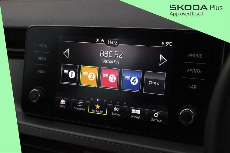 Bluetooth system, eCall emergency system, PAS, Rain and light assist with auto dimming rear view mirror, Speed limiter, Tailgate, 2 USB - C ports, 8 loudspeakers, Bolero radio with 8" touchscreen display, DAB Digital radio, 3rd brake light, Automatic headlamp activation with Coming home and Leaving home feature, Body colour door mirrors and handles, Chrome grille surround, Electrically adjustable and heated door mirrors, Front and rear electric windows, LED rear lights, Rear side wing doors, Rear wiper, Tinted windows, 12V Accessory socket in centre console, 3 seat bench in 2nd row, Chrome inner door handles, Cloth upholstery, Front head restraints, Glasses storage in roof liner, Height adjustable drivers seat, Height adjustable passenger seat, Instrument cluster with chrome painted decor ring, ISOFIX for rear passenger seat, Leather gearknob and handbrake lever, Manual lumbar support for front seats, Reading lights for driver and front passenger, Single front passenger seat, Sun visor with make up mirror for front passenger, Third rear headrest, Umbrella, 3x3 point rear seatbelts, Curtain airbags, Emergency call and proactive services, Front head and side airbags, Hill hold control, Manual rear child locks, One tone horn, Passenger airbag switch off function, Seat belt reminder for all seats, Alarm, Anti-theft wheel bolts, Remote central locking with 2 remote folding keys, SAFE function for remote central locking, Temporary space saver wheel,