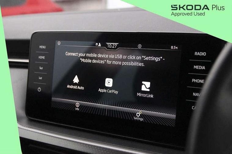 Amundsen satellite navigation with 9.2" glass colour touchscreen with virtual cockpit, web radio, Android Auto, Bluetooth system, Colour multifunction trip computer, eCall emergency system, PAS, Rain and light assist with auto dimming rear view mirror, Rear view camera, Speed limiter, Tailgate, Traffic sign recognition, Virtual cockpit, Voice control system, Wireless SmartLink for Apple Car Play, 2 USB - C ports, 8 loudspeakers, DAB Digital radio, 3rd brake light, Automatic headlamp activation with Coming home and Leaving home feature, Body colour door mirrors and handles, Chrome grille surround, Dimming rear view mirror with black frame, Electric folding door mirrors, Electrically adjustable and heated door mirrors, Front and rear electric windows, Front fog lights with cornering function, LED rear tail lights with dynamic indicators, Privacy glass, Rear side wing doors, Rear wiper, Tinted windows, 12V Accessory socket in centre console, 3 seat bench in 2nd row, Chrome inner door handles, Chrome on gear and handbrake lever, Chrome strip on the dash and door panel, Dual zone climate control, Front head restraints, Glasses storage in roof liner, Instrument cluster with chrome painted decor ring, ISOFIX for rear passenger seat, Leather gearknob and handbrake lever, Manual lumbar support for front seats, Net in centre console, Reading lights for driver and front passenger, Single front passenger seat, Sun visor with make up mirror for front passenger, Textile floor mats, Third rear headrest, Umbrella, 3x3 point rear seatbelts, Curtain airbags, Emergency call and proactive services, Front head and side airbags, Hill hold control, Manual rear child locks, One tone horn, Passenger airbag switch off function, Seat belt reminder for all seats, Alarm, Anti-theft wheel bolts, Keyless entry with start/stop button, Remote central locking with 2 remote folding keys, SAFE function for remote central locking, Latice grey decorative insert with copper hot stamping, Temporary space saver wheel,