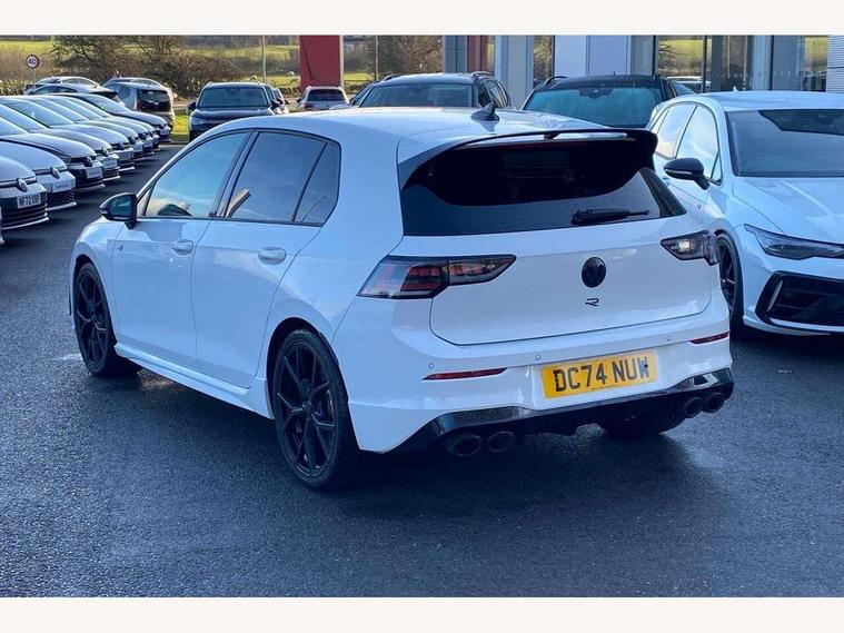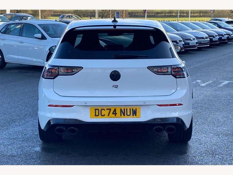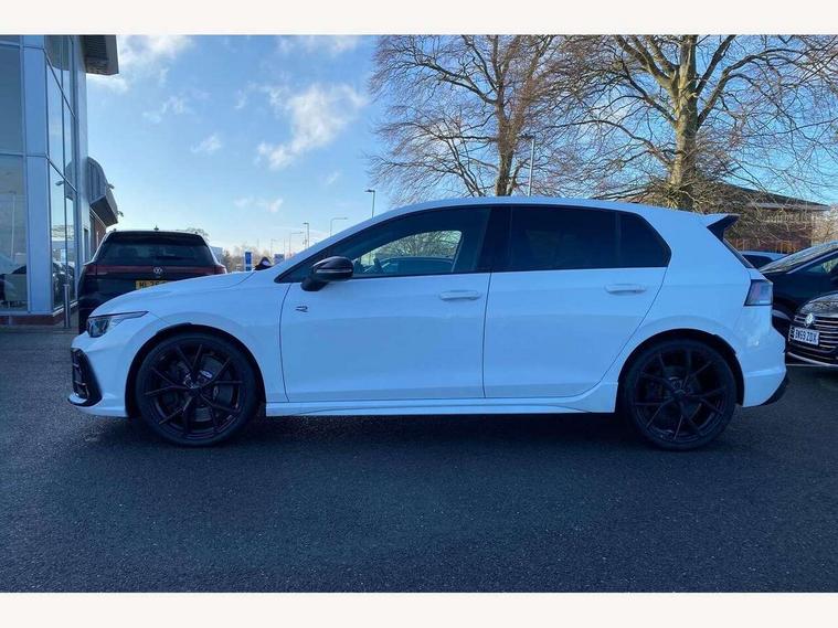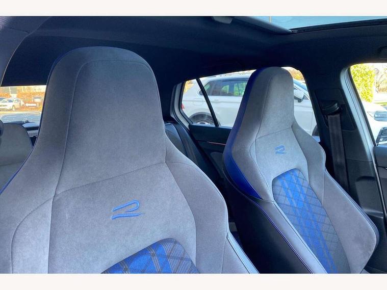Activated carbon canister, Adaptive cruise control (ACC), Advanced driver attention and drowsiness monitor, Dynamic road sign display, E-Sim card for online connectivity, eCall emergency call system, Electronic maximum speed limit increased to 270 km/h, includes driving Modes 'drift' and 'special', larger roof spolier and GPS laptimer + G-Meter, Multi-color Digital cockpit pro, selection of different info profile possible, Multifunction front facing camera for distance control, Navigation system, Oncoming vehicle braking when turning including swerve support, Preparation for light assist system, Progressive steering, Side assist blind spot lane change system, rear traffic alert and exit warning system, Speed limiter, Speedo, rev counter, electronic odometer, trip, service interval display, exterior temperature and fuel gauge, Traffic jam assist, Voice enhancer and voice control, Warning signal and warning light for front and rear seatbelts not fastened, We connect plus preparation, We connect preparation, Wireless app connect, All wheel drive - 4Motion, Petrol Particulate Filter, Sports suspension, Start-stop system with battery regeneration (recuperation - energy recovery during braking), XDS electronic differential lock for improved traction and handling, 2 USB C ports in front, 2 USB charging sockets on the centre console in the rear charging capacity upto 45W, Comfort telephony + wireless charging, without wireless aerial connection, Digital radio reception (DAB), Diversity antenna for FM reception, Gaming platform via car app, Infotainment system with 12.9" display, Mobile phone interface with inductive charging feature, 3rd brake light, Auto dimming rear view mirror, Auto headlights, Automatic headlamp activation with Coming home and Leaving home feature, Black badge on B-pillar, Black mirror caps, Black strips on radiator grille and headlights, Body colour door handles, Darkened headlights, Darkened R Logos and VW logos in front, rear and on fender, Exhaust system with black tailpipe, Exterior ambient lighting with illuminated lighting animation and wake up/goodbye scenario, Exterior mirrors convex on the left and aspherical on the right, Front and rear electric windows, Front fog lamps and cornering light, Heat insulating windshield made of laminated glass, LED daytime running lights, LED matrix headlights with ambient light V2, advanced high beam, dynamic range contol with cornering, LED rear lamp with indicator, poor weather, R name plate, Rain sensor, Rear fog light on one side and reversing lights on both sides, Rear side wing doors, Rear tinted glass 65% light absorbing from B pillar backwards, Rear windscreen washer and wiper with interval delay, Remote electrically foldable door mirrors, puddle lights and reverse activated passenger's door mirror, Welcome light with surround lighting, 12V socket in front centre console, 12V socket in luggage compartment, 3 rear head restraints, 3 seat bench in 2nd row, 30 colour ambient lighting, illuminated center console storage compartment in front, Air care climatronic 3 Zone automatic climate control with rear air conditioning control panel, Aluminium gearshift handle, Brushed stainless steel pedals, Carpet mats, front and rear, Front centre armrest, Integrated front head restraints, ISOFIX anchors for child seats on outer rear bench seats and on front passanger seat compatible for i-Size, Luggage compartment lighting, Rear cupholder and loadthough, Single front passenger seat, Soul black instrument panel, Split folding backrest with centre armrest and unsplit rear seat bench, Storm grey roof lining, Sun visors with illuminated vanity mirrors, Driver assistance pack - Golf DSG Estate/Hatchback, R styling pack - Golf, Technology park and comfort pro package - Golf Hatchback, 3 point height adj front seatbelts + pretensioners, 3 rear three point seatbelts, ABS, Autonomous emergency braking front assist with pedestrian and cyclist monitoring, Child locks on rear doors, Disc brakes in rear incl. brake calipers in black with darkened R-logo, Driver and front passenger airbag with front passenger airbag deactivation, Electronic parking brake with auto hold, ESC (Electronic Stability Control), Extended pedestrian protection measures, Hill start assist, Two tone horn, Tyre pressure loss indicator, Volkswagen roadside assistance, Anti theft wheel bolts, Preparation for alcohol interlock, Wheel hub cover with darkened R-logo,