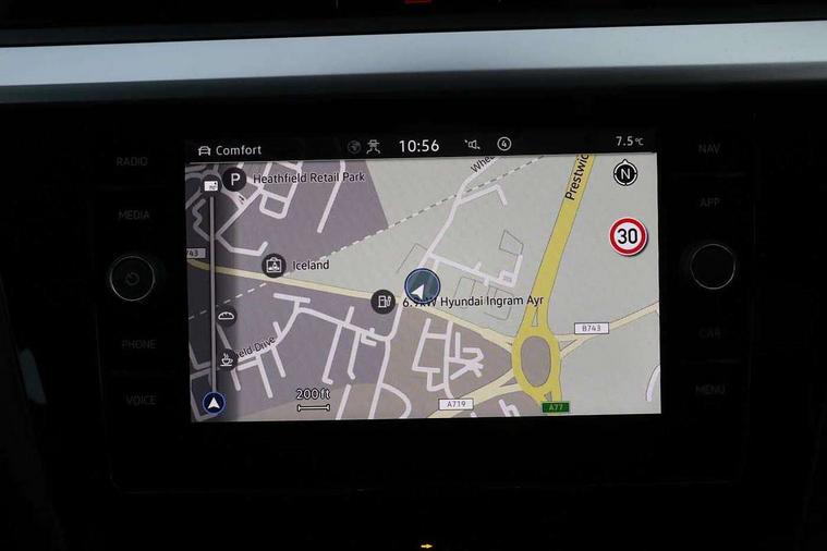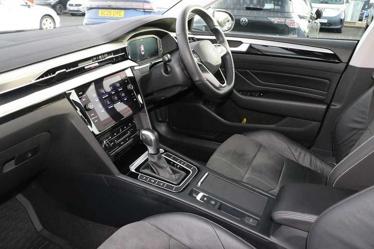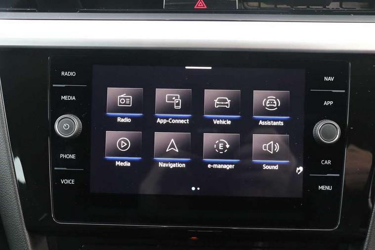 Adaptive cruise control (ACC) with speed limiter, front assist (reacting vehicles pedestrian and cyclists) and follow to stop, App connect including wireless Apple CarPlay, Camera for warning system, Digital cockpit with 10.25" high resolution TFT display screen with customisable menus and information, Driver alert system with fatigue detection, Driver profile selection including ECO function, Dynamic road sign display, eCall - Emergency call service for SOS calls to emergency response, Emergency assist, Hands free boot opening, Press and drive key, Progressive steering, Side scan lane change assist including rear cross traffic alert, Speedo and rev counter, electronic odometer, trip, service interval display and exterior temperature gauge, Tailgate, Travel assist - Lane keeping assist and traffic jam assist, Voice activation for telephone and navigation, 10 amp mode 2 charging cable, 16 amp mode 3 charging cable, Dynamic Chassis Control (DCC) - Adjustable dampers lowered by 15mm, Start/stop function with battery regeneration, Premium USB cable in choice of either Apple or Android smartphone compatibility, Auto dimming interior rear view mirror, Automatic headlights, Body colour door handles, bumpers and side skirts, Body coloured top and matt black lower door mirrors with integrated indicators, Chrome plated radiator grille inserts and light switch surrounds, Chrome side window surrounds, Dynamic headlight range control, Electric folding door mirror, adjustable, heated with front passenger exterior mirror lowering function, External USB-C data socket with increased charging performance in front, Front and rear electric windows, Front and rear stainless steel door sill protection, Front windscreen washers and wipers with 4x interval delay, Heat insulating glass windscreen, Heat insulating side and rear windows, Heated rear windscreen, Heated windscreen washer jets, LED 3rd brake light, LED rear combination lamp with dynamic indicators, LED rear number plate lights, Rain sensor, Rear boot spoiler, Rear fog lamp on one side and reversing lamp on both sides, Rear side wing doors, Rear wash/wipe, Tailpipes behind rear bumper, 12V socket in front centre console, 12V socket on rear of front centre armrest, 3 rear head restraints, 3 seat bench in 2nd row, 6 way electric adjustable ergoComfort driver seat with electric adjustable backrest, 60:40 split folding rear seat backrests with centre armrest, Air care climatronic 3 Zone electronic air conditioning with automatic air recirculation, Art velour vienna leather upholstery, Chrome trim on upper and lower air vents extending across cockpit, Driver and front passenger sunvisor with vanity mirror, Front + rear carpet mats, Front cupholders x 2, Front footwell illumination, Front sports comfort seats, Glovebox, Heated front seats, Height/reach adjust steering wheel, Isofix child seat preparation easy fit for two outer rear seats, Luggage compartment lighting, Power adjustable lumbar support on right front seat, Removable luggage compartment cover, Single front passenger seat, Split folding front seat backrest with front centre armrest, Stainless steel pedals, Two LED front reading light, 3 rear three point seatbelts, ABS+EBD+Brake assist, Child locks on rear doors, Driver airbag and front passenger airbags with deactivation switch including driver knee airbags, Drivers and front passengers safety optimised head restraints, Electronic parking brake, Electronic stability control (ESC) and Electromechanical brake booster, Front disc brakes, Front precrash preventive occupant protection, Front side airbags with curtain airbags, Hill start assist, Pro active occupant protection to detect critical situations with elevated accident potential from the front, Rear disc brakes, Three point height adjust front seatbelts + pretensioners, Two tone horn, Tyre pressure loss indicator, Warning buzzer for seatbelts if unfastened, Warning triangle, Alarm with interior protection with deactivation via infotainment system, Electronic engine immobiliser, Keyless entry system including start/stop button on centre console, Remote central locking, Aluminium decorative inserts, Chrome trim on lower doors in front and rear, Leatherette insert on door and side trim panel in foam film, Piano black decorative inserts in centre console, 18" Almere Adamantium silver alloy wheels with Airstop tyres + low rolling and anti-theft wheel bolts, Tyre mobility kit,
