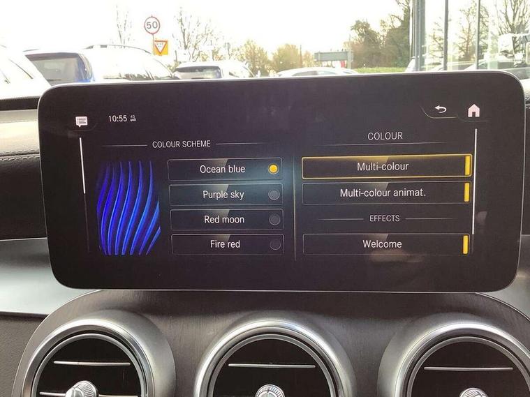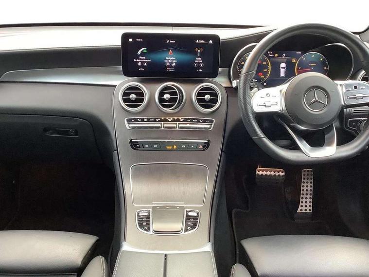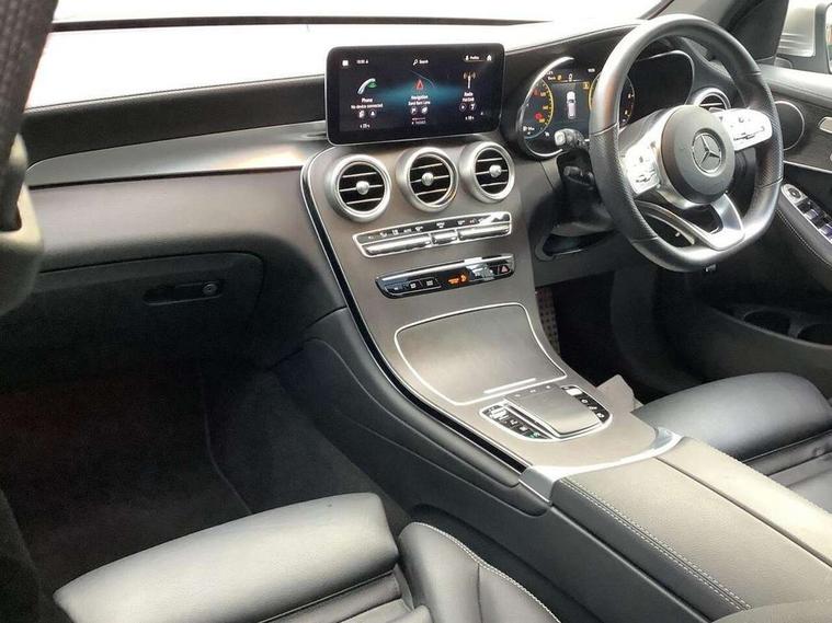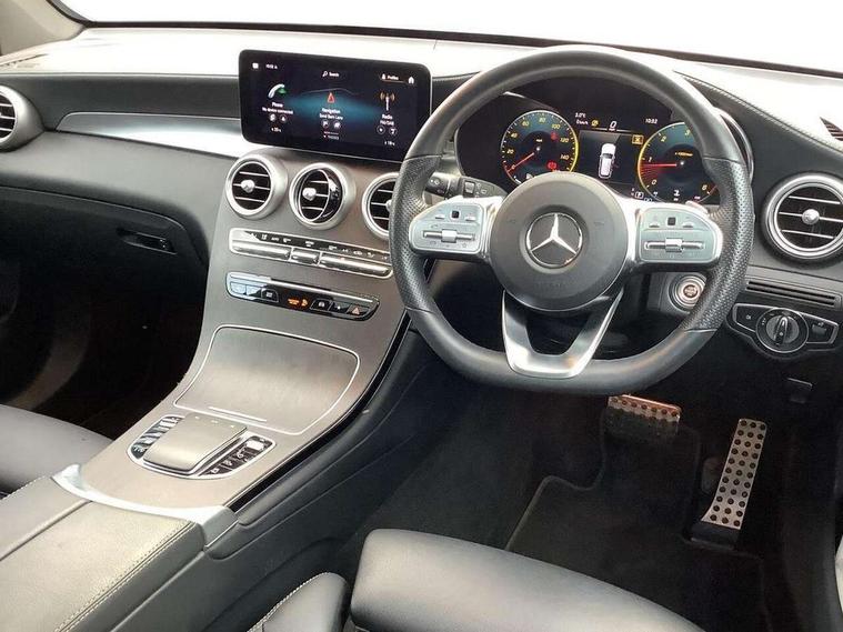 360 degree camera, Active parking assist with parktronic system, Attention assist, Bluetooth interface for hands free telephone, Collision prevention assist plus, DYNAMIC SELECT with a choice of driving modes (ECO, Comfort, Sport, Sport+ and Individual), Easy pack automatic powered tailgate, eCall emergency call system, ECO start/stop function, Hard disk navigation, Hey Mercedes Voice activation, Instrument cluster with12.3-inch digital instrument cluster display. High resolution instrument cluster screen with choice of three display styles, MBUX Interior assistant, Mercedes connect me with remote online services, Multi function trip computer, Outside temperature display, rear seatbelt status indicator, Remote boot release, Service indicator (ASSYST), Smartphone integration with Apple CarPlay and Android auto, Traffic sign assist, 4MATIC permanent four wheel drive, 66 litre fuel tank, 9G TRONIC plus automatic transmission with steering column gear selector, DIRECT SELECT steering wheel gearshift paddles, Diesel particulate filter, Sports suspension tuned for improved handling and driving dynamics, 5 speakers, Frontbass loudspeakers, MBUX multimedia system with DAB digital radio and touchpad, Media display 10.25-inch touchscreen display, Pre installation for Mercedes Benz Link, USB ports x 2 in centre console, Adaptive brake lights, Aluminium roof rails, AMG bodystyling - AMG front apron with sporty air intakes and chrome trim element, AMG diffuser-look rear apron with insert in black, Body colour door mirrors, Body coloured bumpers, Electric panoramic glass sunroof, Electric windows one touch open/close, Electrically adjustable and heated door mirrors, Front, side and rear exterior chrome trim, Headlamp assist automatic headlamp activation, High level LED brake light, LED high performance headlamps with integrated LED daytime running lights, LED tail lamp, Motor way mode function and locator lighting, Privacy glass with dark glass from B pillar backwards, Radiator diamond grille, Rain sensor windscreen wipers, Range adjustable headlights, Rear side wing doors, Rear wiper, Roof spoiler, Running boards, Tinted glass all round with single layer safety glass, Tinted rear windows, Two chrome plated tailpipe trim elements, Variable front intermittent wipers, 2 way rear head restraints, 3-spoke multifunction sport AMG steering wheel in black nappa leather with flattened bottom section, chrome insert and perforated leather in grip area, 40:20:40 split folding rear seats, Ambient lighting, AMG floor mats with edging and embroidered AMG lettering, AMG sports seats, Artico man-made leather upper dashboard with contrast topstitching, Automatic child seat recognition sensor, Black roof lining, Dividing net - rear, Double cup holder in centre console, Easy-pack removable load compartment cover, Front armrest with storage box, Front door sills with Mercedes Benz lettering, Front head restraints, Front passenger seat, Heated front seats, Illuminated and lockable glove compartment, Leather upholstery, Rear top tether child seat ISOFIX attachment, Sports pedals with stainless steel surfaces and rubber studs, Steering wheel with touch control buttons, THERMOTRONIC 3 zone automatic climate control, Interior lighting pack - GLC, Memory pack - GLC, Mirror pack - GLC, Storage pack - GLC, 3 rear 3 point seatbelts, Active bonnet, Adaptive brake system with HOLD function and brake drying in the wet, ASR, Black seat belts, Brake calipers with Mercedes-Benz lettering + perforated brake discs, Child proof door locks, Dual-stage airbags - driver and front passenger, driver knee bag and window bags for driver, front passenger and rear passengers, Electronic parking brake, Electronic stability programme (ESP) with curve dynamic assist and cross wind assist, Front and rear seatbelt reminder, Front passenger seat occupancy sensor, Hill hold function, Tyre pressure monitoring system, Warning triangle and first aid kit, Alarm system/interior protection/immobiliser, Automatic door locking, Keyless Go entry and starting function, Remote central locking, Anthracite open pore oak wood trim, 20" AMG 5 twin spoke alloy wheels painted in titanium grey with high sheen finish, Run flat tyres, Summer tyres,