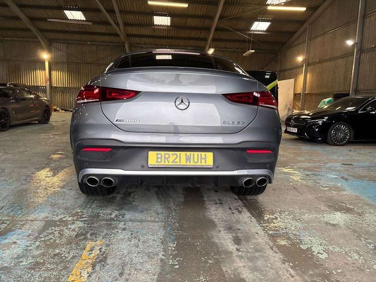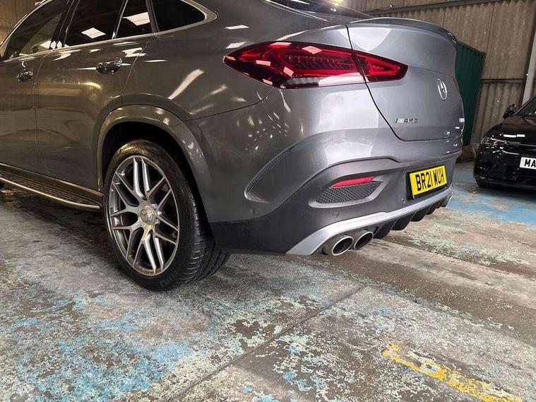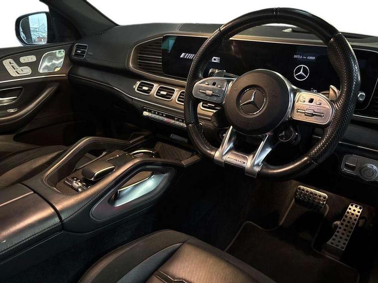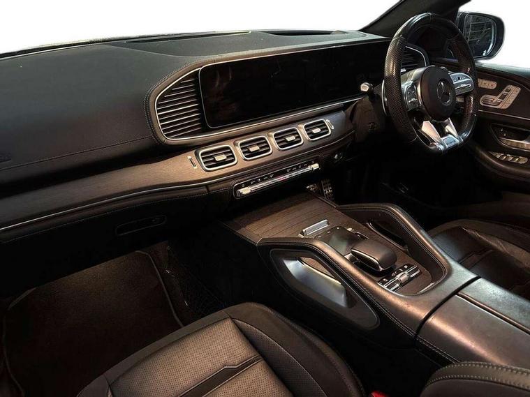 AMG drive unit, AMG DYNAMIC SELECT with a choice of driving modes (Comfort, Sport, Sport+, Slippery and Individual), AMG track pace, Attention assist, Cockpit display 12.3" widescreen digital instrument cluster, Crosswind Assist, Cruise control, Direct steer speed sensitive steering, Easy-pack tailgate - Powered opening/closing automatically, ECO start/stop function, Head up Display, Instrument cluster with AMG menu including RACETIMER and AMG start-up display, Lane keeping assistant (LKA), MBUX augmented reality for navigation, Mercedes me connect including emergency call system, accident recovery, breakdown and maintenance management, Outside temperature display, rear seatbelt status indicator, Parking pilot with 360 degree camera, Reversing camera, Service indicator (ASSYST), Smartphone integration with Apple CarPlay and Android auto, Sports direct steer system with speed sensitive power assistance, Traffic Sign Assist, Traffic sign recognition including wrong way warning function and display of posted speed limits in the instrument cluster, Wireless charging system for mobile devices, 4MATIC permanent four wheel drive, 85 litre fuel tank, AMG active ride control with active electromechanical stabilisers and AMG-specific control on both axles, AMG ride control+ sports suspension including air suspension system with ADS+ and auto level control depending on vehicle speed, drive program, load, AMG SPEEDSHIFT TCT 9G automatic transmission with steering column gear selector, DIRECT SELECT steering wheel gearshift paddles, EQ Boost starter alternator, Bluetooth interface for hands free and audio streaming, Burmester surround sound system, DAB Digital radio, Hard disk navigation with MBUX multimedia system, Adaptive brake lights, Adaptive high beam assist plus, Aluminium look, illuminated running boards with rubber studs, AMG bodystyling - front apron with distinctive air intakes, AMG side sill panels and AMG rear apron with diffuser look, AMG specific radiator grille with vertical bars in high gloss chrome and AMG logo, Badging BITURBO 4MATIC+ lettering on front wings, Body colour AMG rear spoiler, Body colour door mirrors, Body coloured bumpers, Electric panoramic sunroof with sunblind, Electric windows with one touch opening/closing and obstruction sensors, Front and rear underbody protection with chrome look finish, LED tail lamp, Magic vision control with adaptive windscreen wiper system, Multi beam LED headlights, Privacy glass - heat insulating dark tinted glass, Rain sensing windscreen wipers, Rear wash/wipe, Top surround of side windows in polished aluminium, Two chrome plated twin tailpipe switchable performance exhausts system, 2 cup holders in front and rear, 2 rear head restraints, 3 spoke AMG nappa leather steering wheel with touch control buttons and flattened bottom section, 4 way adjustable front head restraints and 2 way rear head restraints, 40:20:40 split folding rear seats, AMG floor mats with AMG lettering, AMG Nappa leather upholstery, AMG sports seats with AMG specific seat upholstery layout, optimised lateral support and AMG badge in front seat backrests, Artico man-made leather upper dash trim, Automatic child seat recognition sensor, Climatised front seats, Courtesy lights in rear grab handles with reading light functionality, Driver and front passenger cup holders temperature controller, Electric adjust front headrests, Electrically adjustable front seats, Electrically height and reach adjustable steering column with memory, Folding rear armrest, Front centre armrest with stowage compartment and illuminated grab handles, Glasses compartment in overhead control panel, Glove compartment - lockable, air conditioned and illuminated, Heated front seats, Illuminated stainless steel door sill panels with AMG lettering, Interior lighting - 64 colour Ambient lighting, Luggage compartment cover, Multi function steering wheel, Sports pedals with stainless steel surfaces and rubber studs, Sunvisors with illuminated vanity mirrors, Thermotronic automatic 4 zone climate control, Touchpad, Two (type C) USB ports in centre console, Acoustic comfort pack - GLE Coupe, Driving assistance pack - GLE Coupe, Energizing comfort package - GLE Coupe, Interior chrome package - GLE, KEYLESS-GO Comfort package - GLE Coupe, Memory package - GLE Coupe, Mirror package - GLE Coupe, Parking package - GLE Coupe, 3x3 point rear seatbelts, Active bonnet, Active braking assist, Airbags - windowbags, Anti-lock braking system (ABS), Child proof door locks, Downhill speed regulation (DSR) with switch and variable speed control, Driver/front passenger airbag, Drivers knee airbag, Electronic four wheel traction control, Electronic parking brake, Electronic stability programme with acceleration skid control, First aid kit, warning triangle and high visibility jacket, Front side airbags, Hill hold function, Hill start assist, ISOFIX child seat attachment points two outer rear seats, Perforated front brake discs and anodised silver brake calipers with "AMG" lettering, Pre-Safe anticipatory safety system, Tyre pressure monitoring system, Alarm system/interior protection/immobiliser, Chrome surround in electric key, Remote central locking, Urban guard vehicle protection, Dashboard and door, anthracite open pore oak wood trim, 22" AMG cross spoke himalayas grey with high sheen finish light alloy wheels, Summer tyres with noise reducing absorber, TIREFIT with tyre inflation compressor,