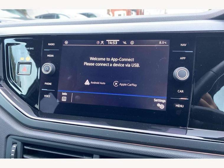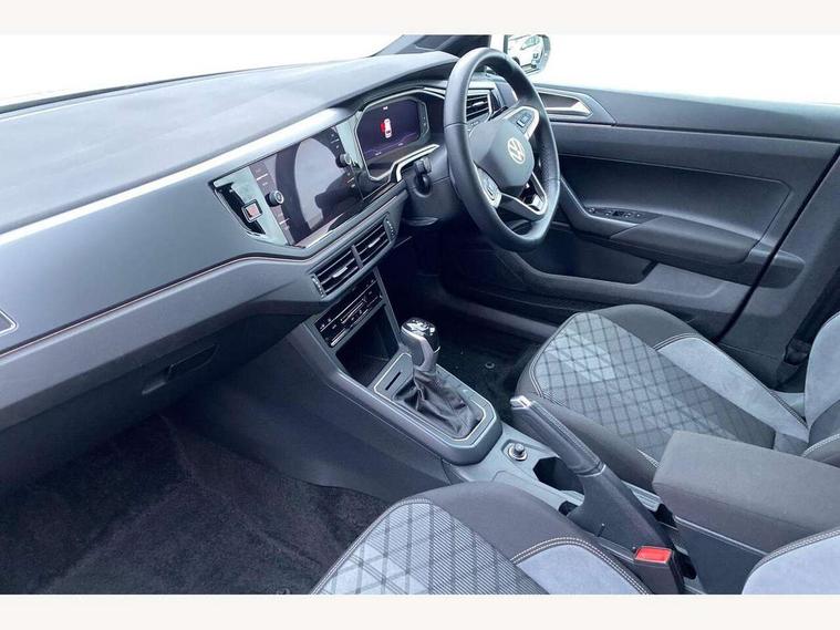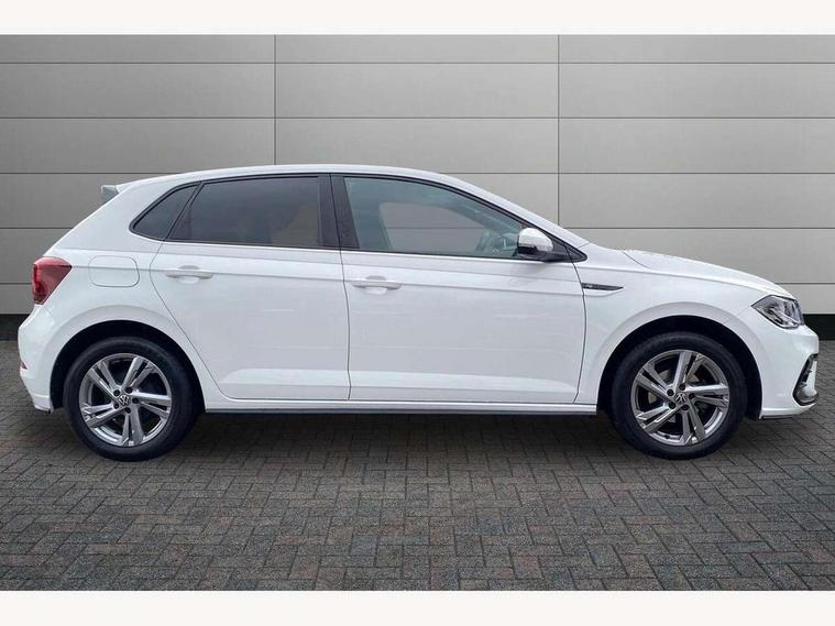 Adaptive cruise control with follow-to-stop and speed limiter, Bluetooth mobile phone interface, Digital Cockpit Pro with 10.25" Display, Driver alert system, Dynamic road sign display, Emergency call service, Power assisted speed sensitive steering, Preparation for We connect and We connect plus, Speedo and rev counter, electronic odometer, trip, service interval display and fuel gauge, Standard rear axle, Travel Assist - Lane keeping system and traffic jam assist, Travel assist including emergency assist, Trip computer, Warning signal and warning light for front and rear seatbelts not fastened, Washer fluid level indicator, Wireless app connect, Front wheel drive, Rear shock absorpion, Start-stop system with battery regeneration (recuperation - energy recovery during braking), DAB Digital radio, Diversity antenna for FM reception, Front and rear 6 speakers, Body colour bumpers, Body colour door handles, Body colour door mirrors, Electric front windows, Front scuff plates with R-Line logo, Heat insulating darkened glass in side and rear windows, Heat insulating glass windscreen, Power folding adjustable/heated exterior mirrors and front passenger exterior mirror lowering function, Rear electric windows, Rear fog light, Rear side wing doors, Rear tinted glass from B-pillar backwards approx 65% tinted, Rear windscreen washer and wiper with interval delay, Third brake light, 12V power socket in centre console, 2 USB-C ports in the front, 2 USB-C charging sockets on the center console in the rear, 3 rear head restraints, 60/40 split folding rear seat and rear seat bench not split, Air care climatronic air conditoning system with active combination filter and 2-zone temperature control, Black roof lining, Chrome plated radiator grille inserts, air vent surrounds and light switch surrounds, Door and side trim panel, Driver and front passenger seat height adjustment, Driver/passenger sunvisors with illuminated vanity mirrors, Front + rear carpet mats in recycled material, Front centre armrest, Front footwell illumination, Front seat backrest storage pockets, Front sports comfort seats, Handbrake lever handle in leather, Headliner in recycled material, Isofix child seat preparation easy-fit (for two outer rear seats, and front passenger seat) compatible with I-size, Karoso artvelours cloth upholstery, Leather trimmed gear knob, LED interior light with switch off delay and dimmer, 2 reading lights front and rear, Luggage compartment cover, Luggage compartment floor, Luggage compartment lighting, Lumbar adjustment for front seats, Single front passenger seat, Stainless steel pedals, Standard pedal cluster, Three spoke leather wrapped multifunction steering wheel with shifting paddles, Light and sight pack - Polo R-Line/Black Edition, 3 point height adj front seatbelts + pretensioners, 3x3 point rear seatbelts, ABS, Driver and front passenger airbag with front passenger airbag deactivation, Drivers and front passengers safety optimised head restraints, ESC (Electronic stability control) + EDL (Electronic Differntial lock) and ASR (Traction control), Extended and predictive pedestrian/ cyclist protection, Front curtain and side airbags with center airbag, Hill hold control, Manual child lock in rear doors, Single tone horn, Tyre pressure loss indicator, Alarm with interior protection, Anti-theft alarm system with interior monitoring, backup horn, and towing protection, Anti-theft wheel bolts, Electronic engine immobiliser, Chrome applications on rotary light, mirror adjustment, window regulator switches, outlet with frame in black, Dark grey anodised matt decorative inserts in dash and front door panels, Low rolling resistance tyres,