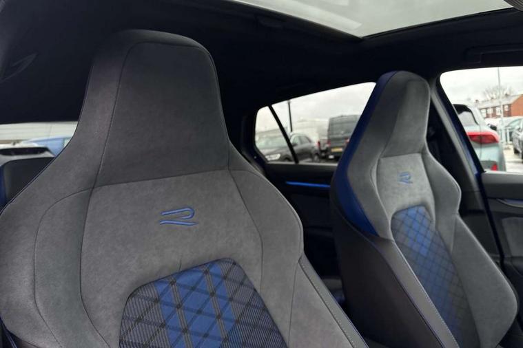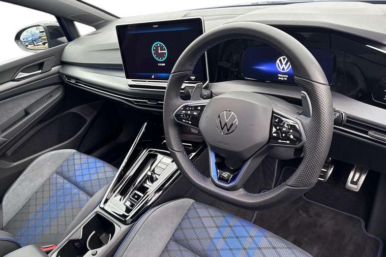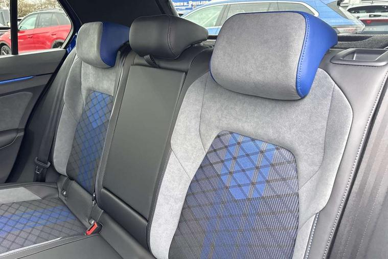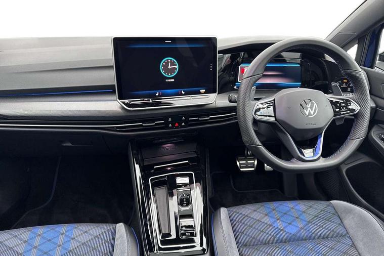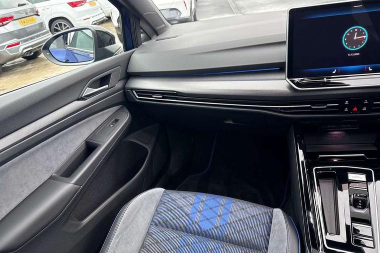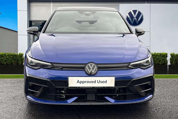 Activated carbon canister, Adaptive cruise control (ACC), Advanced driver attention and drowsiness monitor, Dynamic road sign display, E-Sim card for online connectivity, eCall emergency call system, Electronic maximum speed limit increased to 270 km/h, includes driving Modes 'drift' and 'special', larger roof spolier and GPS laptimer + G-Meter, Multi-color Digital cockpit pro, selection of different info profile possible, Multifunction front facing camera for distance control, Navigation system, Oncoming vehicle braking when turning including swerve support, Progressive steering, Side assist blind spot lane change system, rear traffic alert and exit warning system, Speed limiter, Speedo, rev counter, electronic odometer, trip, service interval display, exterior temperature and fuel gauge, Traffic jam assist, Voice enhancer and voice control, Warning signal and warning light for front and rear seatbelts not fastened, We connect plus preparation, We connect preparation, Wireless app connect, All wheel drive - 4Motion, Petrol Particulate Filter, Start-stop system with battery regeneration (recuperation - energy recovery during braking), XDS electronic differential lock for improved traction and handling, 2 USB C ports in front, 2 USB charging sockets on the centre console in the rear charging capacity upto 45W, Digital radio reception (DAB), Diversity antenna for FM reception, Gaming platform via car app, Infotainment system with 12.9" display, Mobile phone interface with inductive charging feature, 3rd brake light, Auto dimming rear view mirror, Automatic headlamp activation with Coming home and Leaving home feature, Black badge on B-pillar, Black mirror caps, Black strips on radiator grille and headlights, Body colour door handles, Darkened headlights, Darkened R Logos and VW logos in front, rear and on fender, Exterior mirrors convex on the left and aspherical on the right, Front and rear electric windows, Front fog lamps and cornering light, Heat insulating windshield made of laminated glass, Illuminated lighting animation with wake up/goodbye scenario, LED matrix headlights with ambient light V2, advanced high beam, dynamic range contol with cornering, LED rear lamp with indicator, poor weather, LED separate daytime running light, Light assist with High beam control, R name plate, Rain sensor, Rear fog light on one side and reversing lights on both sides, Rear side wing doors, Rear tinted glass 65% light absorbing from B pillar backwards, Rear windscreen washer and wiper with interval delay, Remote electrically foldable door mirrors, puddle lights and reverse activated passenger's door mirror, Welcome light with surround lighting, 12V socket in front centre console, 12V socket in luggage compartment, 3 rear head restraints, 3 seat bench in 2nd row, 30 colour ambient lighting, illuminated center console storage compartment in front, Air care climatronic 3 Zone automatic climate control with rear air conditioning control panel, Aluminium gearshift handle, Brushed stainless steel pedals, Chrome plated radiator grille inserts, air vent surrounds and light switch surrounds, Entry lights, Front + rear black carpet mats, Front centre armrest, Integrated front head restraints, ISOFIX anchors for child seats on outer rear bench seats and on front passanger seat compatible for i-Size, Luggage compartment lighting, Rear cupholder and loadthough, Single front passenger seat, Soul black instrument panel, Soul black roof lining, Split folding backrest with centre armrest and unsplit rear seat bench, Sun visors with illuminated vanity mirrors, Driver assistance pack - Golf Estate/Hatchback Auto, R styling pack - Golf, Technology park and comfort pro package - Golf Hatchback, 3 point height adj front seatbelts + pretensioners, 3 rear three point seatbelts, ABS, Autonomous emergency braking front assist with pedestrian and cyclist monitoring, Child locks on rear doors, Driver and front passenger airbag with front passenger airbag deactivation, Electronic parking brake with auto hold, ESC (Electronic Stability Control), Extended pedestrian protection measures, Front and rear black brake calipers with darkened R-logo, Hill start assist, Rear disc brakes, Two tone horn, Tyre pressure loss indicator, Volkswagen roadside assistance, Anti theft wheel bolts, Preparation for alcohol interlock, Sporty vehicle dynamics, Tool kit for tyre mobility set, Tyre mobility kit Includes 12V compressor and tyre sealant, Wheel hub cover with darkened R-logo,