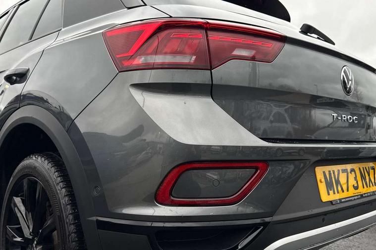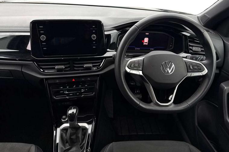 10.25" Digital cockpit pro, Bluetooth mobile phone interface, Driver alert system with fatigue detection, Driver tips and journey analysis, Emergency call service, Lane keeping system Lane Assist, Modified key software - reduce switch off time for key status change to Long no motion, Online services, Park assist including front and rear parking sensors, Service interval indicator, Tailgate/trunk lid release from outside, Think blue trainer driver tips and journey analysis, Warning sound and light for front seatbelts unfastened, Wireless app connect, Battery regeneration during braking, Start/stop function with battery regeneration, Diversity antenna for FM reception, Music playback - MP3, WMA and AAC files, Premium USB cable in choice of either Apple or Android smartphone compatibility, SD card slot, Simultaneous pairing of 2 compatible mobile devices, Title and cover art display, We Connect and We Connect Plus functionality, 3rd brake light, Auto dimming interior rear view mirror, Automatic hazard lights activation under emergency braking, Automatic headlight control with LED separate daytime running lights with coming/leaving home function, Body colour sports bumpers with silver metallic underbody fascia, Dynamic headlight range control with self adjusting whilst driving, Extended roof spoiler, Exterior mirrors aspherical on driver side, convex on front passenger side, External USB type C socket and charging sockets, Front windscreen wiper with intermittent wipe and 4 position delay, Heated rear window, LED rear combination lamps, LED rear number plate lights, LED tail lamp rear comination lamps, Light mode for poor weather, rain, fog or snow, Power windows with comfort operation and circuit breaker, Rain sensor, Rear exhaust tailpipe, Rear fog light on one side and reversing lights on both sides, Rear side wing doors, Rear wash/wipe with intermittent wipe setting, Remote electrically foldable door mirrors, puddle lights and reverse activated passenger's door mirror, 12V power socket in centre console, 3 rear head restraints, 3 seat bench in 2nd row, 4 load lashing points in luggage compartment, Air care climatronic air conditoning system with active combination filter and 2-zone temperature control, Chrome plated radiator grille inserts, air vent surrounds and light switch surrounds, Door and side trim panel with leatherette insert, Drawer under drivers seat, Front + rear carpet mats, Front centre armrest, Front comfort sports seats, Front cupholders x 2, Front footwell illumination, Instrument lighting, white adjustable panel illumination, Interior ambient lighting and surround lighting, Interior light delay, Isofix child seat preparation, Leather gearshift handle, LED interior light with switch off delay/dimmer and 2 front/rear LED reading lights, Load-through provision with cup holder when folded down ('Unsplit rear seat bench, split folding backrest, with centre armrest), Luggage compartment lighting, Non-folding front passenger seat backrest, Single front passenger seat, Storage compartment in left and right luggage area, Storage compartment in rear doors, Storage compartments in driver and front passenger doors, Sunvisors with illuminated vanity mirrors, Variable boot floor, height adjustable and removable, Driver assistance pack without proactive passenger protection - T-Roc, 3 point height adj front seatbelts + pretensioners, 3 point seatbelts in outer rear with ECE label, ABS, Child locks on rear doors, Driver and front passenger airbag with front passenger airbag deactivation, Driver and front passenger safety-optimised head restraints, Drivers seatbelt reminder, Electronic parking brake, Electronic Stability Control (ESC) inc EDL (Electronic Differential Lock) and ASR (Traction Control), Front and rear passengers curtain airbag system including front side airbags, Front assist with city emergency braking and pedestrian monitoring, Front seat side impact airbags, Predictive pedestrian protection, Rear disc brakes, Single tone horn, Tyre pressure loss indicator, Volkswagen roadside assistance, Anti-theft alarm system with interior monitoring, backup horn, and towing protection, Remote central locking with SAFELOCK, radio remote control with 2 remote control folding keys, Trims for alloy wheels,