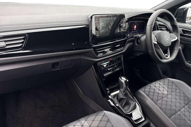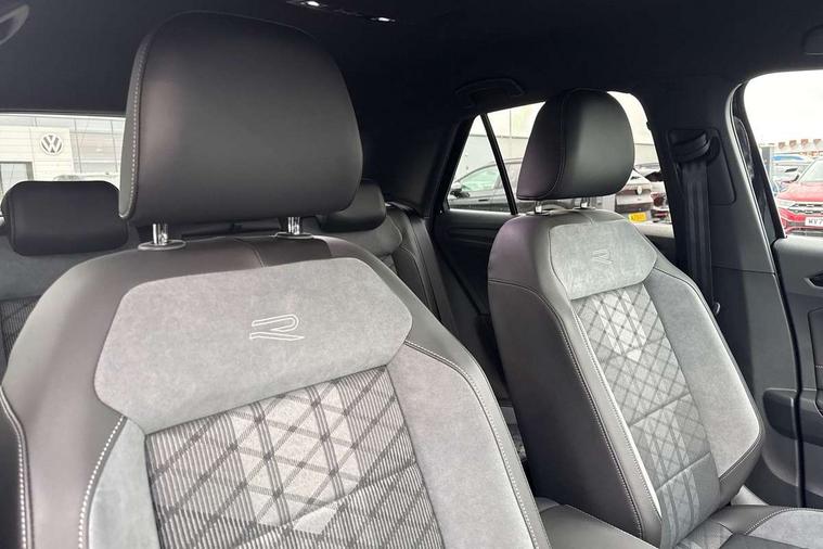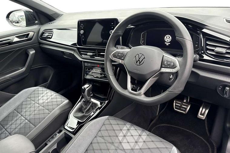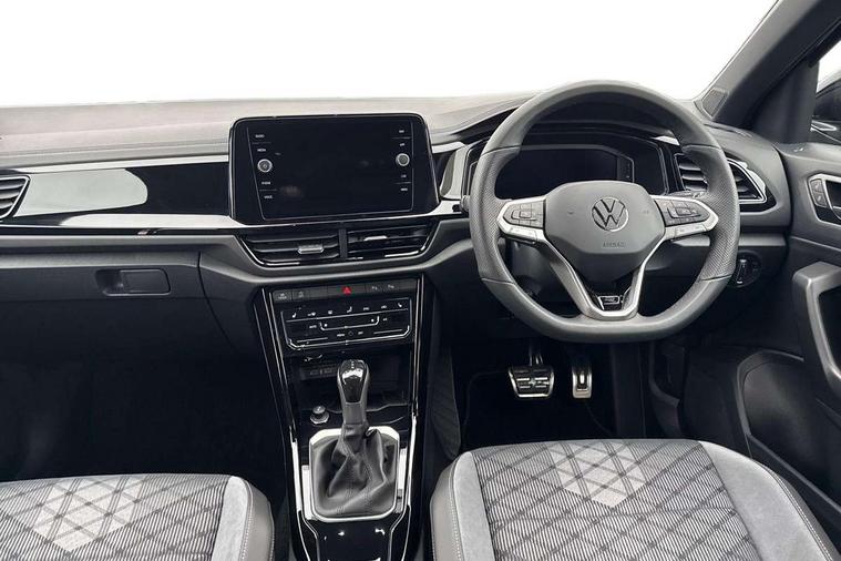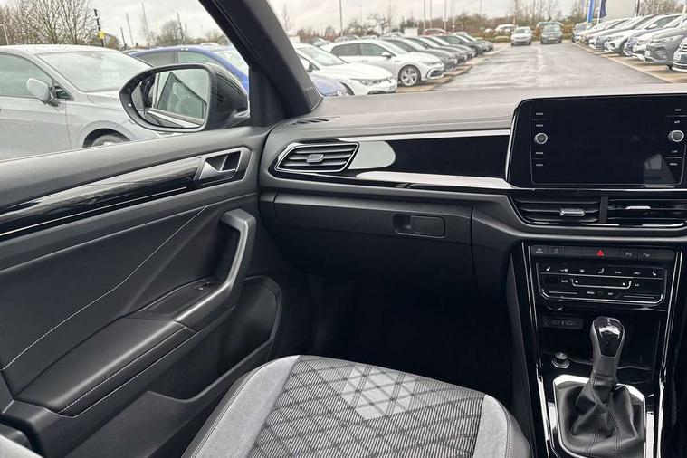 10.25" Digital cockpit pro, Advanced driver attention and drowsiness monitor, Emergency call service, Lane keeping system Lane Assist, Mobile phone interface, Modified key software - reduce switch off time for key status change to Long no motion, Online services, Park assist including front and rear parking sensors, Power assisted speed sensitive steering, Service interval indicator, Tailgate/trunk lid release from outside, Think blue trainer driver tips and journey analysis, Warning sound and light for front seatbelts unfastened, Wireless app connect, Battery regeneration during braking, Rear shock absorption chassis with increased ride height, Start/stop function with battery regeneration, DAB Digital radio, Diversity antenna for FM reception, Front and rear 6 speakers, Music playback - MP3, WMA and AAC files, Premium USB cable in choice of either Apple or Android smartphone compatibility, SD card slot, Simultaneous pairing of 2 compatible mobile devices, Title and cover art display, We Connect and We Connect Plus functionality, Auto dimming interior rear view mirror, Automatic hazard lights activation under emergency braking, Automatic headlight control with LED separate daytime running lights with coming/leaving home function, Dynamic cornering light, Electrically adjustable and heated door mirrors, Extended roof spoiler, Exterior mirrors aspherical on driver side, convex on front passenger side, External USB type C socket and charging sockets, Front windscreen wiper with intermittent wipe and 4 position delay, Heated rear window, Illuminated front grille, IQ LED matrix headlights, LED 3rd brake light, LED rear number plate lights, LED rear tail lights with dynamic turn signal, Light mode for poor weather, rain, fog or snow, Power windows with comfort operation and circuit breaker, R-Line design body coloured bumpers, Rain sensor, Rear exhaust tailpipe, Rear fog light on one side and reversing lights on both sides, Rear side wing doors, Rear wash/wipe with intermittent wipe setting, Remote electrically foldable door mirrors, puddle lights and reverse activated passenger's door mirror, 12V power socket in centre console, 3 rear head restraints, 3 seat bench in 2nd row, 4 load lashing points in luggage compartment, Air care climatronic air conditoning system with active combination filter and 2-zone temperature control, Artvelours cloth upholstery, Black roof lining, Chrome plated radiator grille inserts, air vent surrounds and light switch surrounds, Door and side trim panel with leatherette insert, Drawer under drivers seat, Driver seat height adjust, Driver's seat lumbar support, Front + rear carpet mats, Front centre armrest, Front comfort sports seats, Front cupholders x 2, Front footwell illumination, Front reading light, Front scuff plates with R Line logo, Front seat back storage pockets, Glove compartment door with light, Instrument lighting, white adjustable panel illumination, Interior ambient lighting and surround lighting, Interior light delay, Isofix child seat preparation, Leather gearshift handle, Leather wrapped multifunction steering wheel with paddle shift, Load-through provision with cup holder when folded down ('Unsplit rear seat bench, split folding backrest, with centre armrest), Luggage compartment lighting, Non-folding front passenger seat backrest, Passenger seat height adjuster, Passenger seat lumbar support, Single front passenger seat, Stainless steel pedals, Storage compartment in left and right luggage area, Storage compartment in rear doors, Storage compartments in driver and front passenger doors, Sunvisors with illuminated vanity mirrors, Variable boot floor, height adjustable and removable, Winter pack without heated windscreen washer jets - T-Roc, 3 point height adj front seatbelts + pretensioners, 3 point seatbelts in outer rear with ECE label, ABS, Child locks on rear doors, City emergency braking and pedestrian monitoring, Driver and front passenger airbag with front passenger airbag deactivation, Driver and front passenger safety-optimised head restraints, Drivers seatbelt reminder, Electronic parking brake, Electronic Stability Control (ESC) inc EDL (Electronic Differential Lock) and ASR (Traction Control), Front and rear passengers curtain airbag system including front side airbags, Front disc brakes, Hill start assist, Predictive pedestrian protection, Rear disc brakes, Two tone horn, Tyre pressure loss indicator, Volkswagen roadside assistance, Tool kit, Trims for alloy wheels, Tyre mobility kit including compressor and sealing foam,