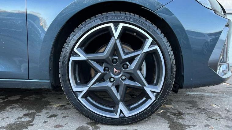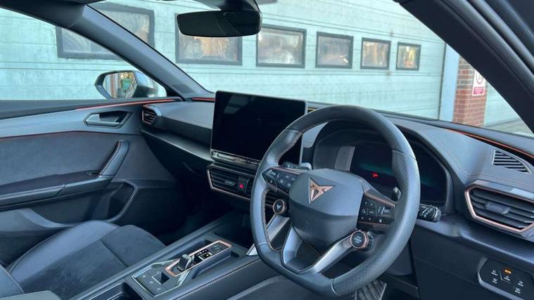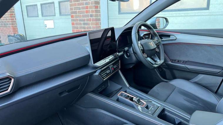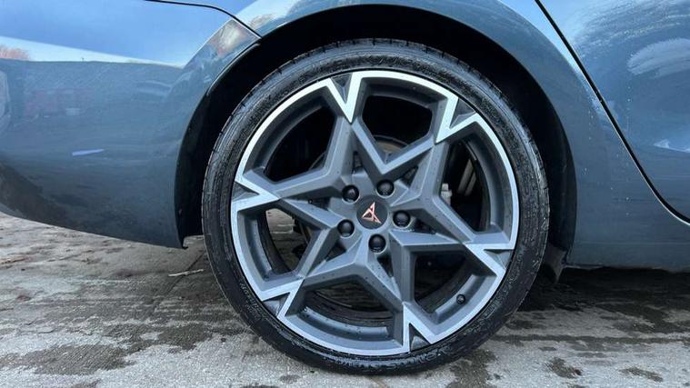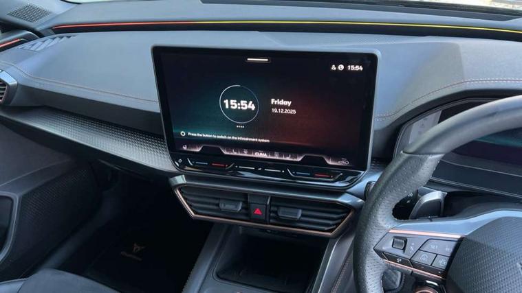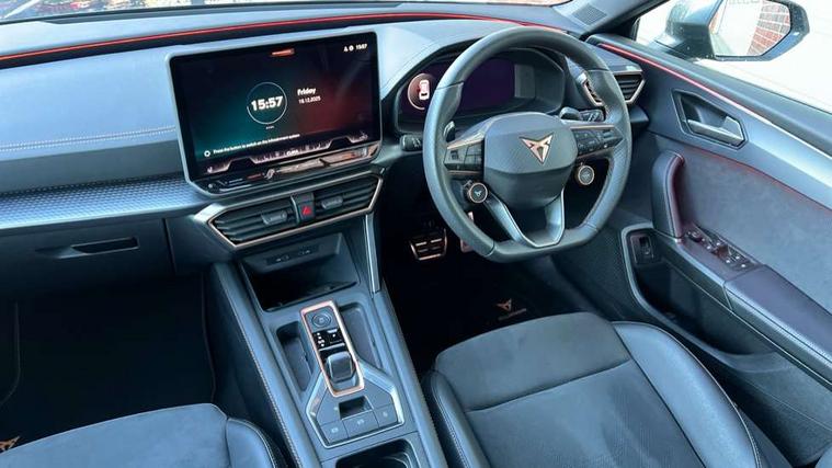 Adaptive cruise control with follow-to-stop and speed limiter, CUPRA drive profile selection with (Comfort/Sport/Individual), throttle response and gearshift mode, Digital cockpit, Dynamic road sign display, E-call, Four x USB Type C ports (2 in front and 2 in rear), Front and rear parking sensors, Front assist with forward collision warning braking reaction to vehicles, pedestrians and cyclists, Full link smartphone integration with Mirror Link, wireless Apple CarPlay and wired Google Android Auto, Lane assist, Lockable tailgate, Rear view camera, RPM, trip computer, outside temp gauge, instrument light brightness, low fuel warning light, lights on reminder, gearshift indicator, Service interval indicator, Start/stop system with regenerative braking, Virtual pedal with electric tailgate, Wireless phone charger, Auxiliary input socket, Auto dimming rear view mirror, Body colour door handles, Body coloured bumpers, Cupra sports bumpers, Dark tinted rear windows, Electric front/rear windows, Electrically adjustable, heated and folding door mirrors, Gloss black roof rails, High beam assist, LED front fog lamps with cornering function, LED headlights with dynamic turn signals, tail lights, rear fog lights with rear coast to coast lighting, LED rear fog lamp, Rain sensing wipers, Rear side wing doors, Rear wash/wipe, Separate daytime running light with automatic headlight control and coming home feature, Third brake light, Welcome light with logo projector in door mirrors, 12v power supply in centre console, 3 seat bench in 2nd row, 5 headrests, 60/40 split rear bench seat with armrest, Ambient lighting (glovebox, footwell, ambient lighting multicoloured), Black headlining, Cupra sports pedals, CUPRA Supersports, heated steering wheel with satellite buttons, Dinamica cloth upholstery, Electrically adjustable driver seat and lumbar support with memory function + manually adjustable passenger seat, Front and rear reading lights X 4, Front centre armrest, Heated front seats, Height/reach adjust steering wheel, Illuminated interior front door sills, Interior wraparound lighting, ISOFIX points in outer rear seats with top tether anchorage points, Single front passenger seat, Sliding boot cover, Storage pockets on rear of front seats, Sunvisors with illuminated mirror, Three zone climate control, Dynamic and comfort pack - Leon Cupra, Media system plus with 12.9" display + navigation pack - Leon Cupra, 3 point seatbelts on all rear seats, ABS, Brake control system - ESC and brake booster, Child proof door locks, Cupra black brake calipers, Driver and front passenger airbags with front passenger airbag de-activation, front side and curtain airbags, Electronic parking brake, Hill hold control, Rear disc brakes, Seat belt reminder for front and rear seats, Tiredness recognition system, Tyre pressure monitoring system, Anti theft alarm system with interior monitoring in cab, backup horn and towing protection, KESSY Advanced - Keyless start, keyless entry, Locking wheel bolts, Chrome and copper interior detailing, 19" Polar machined sport black and silver alloy wheel with 91Y tyres, Tool kit,