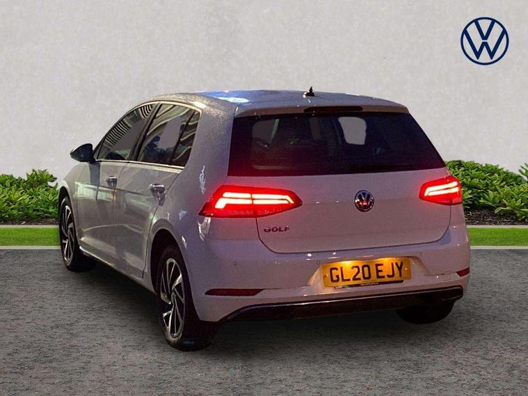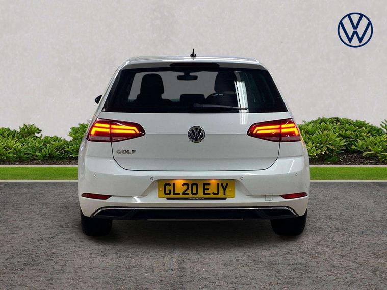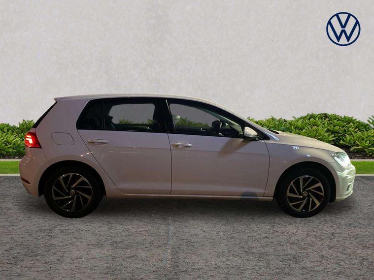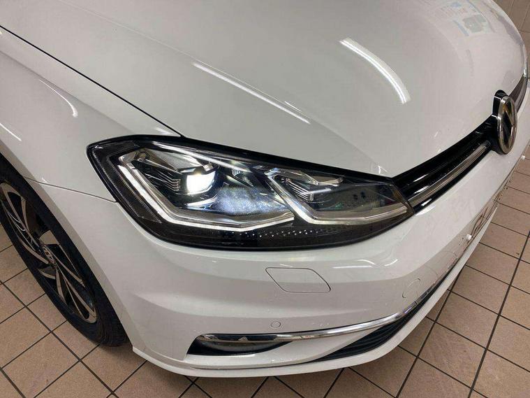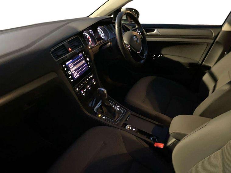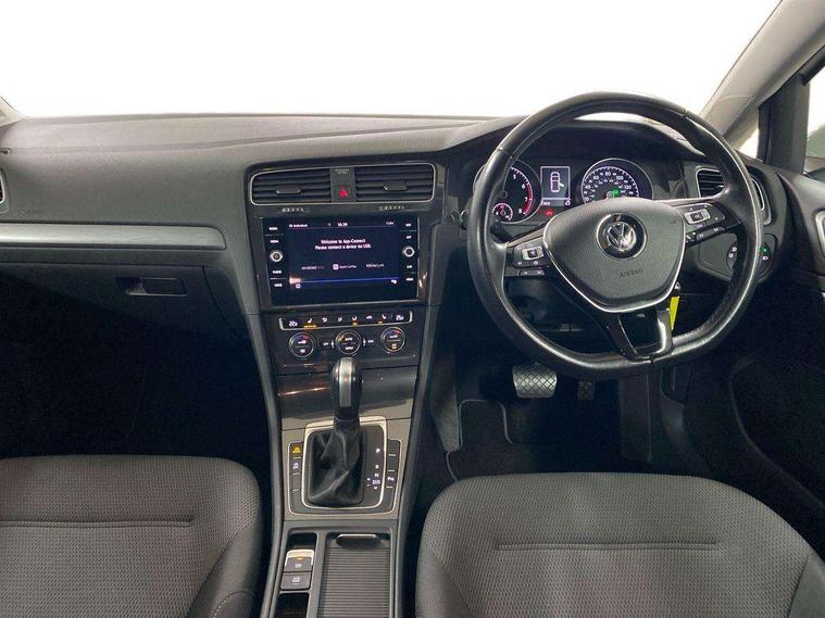 'Lights On' Reminder warning buzzer, ACC - Adaptive cruise control with front assist, forward collision warning, distance monitoring, city emergency brake and speed limiter, Bluetooth telephone and audio connection for compatible devices, Brake pad wear indicator warning light, Driver alert system, Driving Mode Selection with four preset modes - Eco, normal, sport or individual modes, Multifunction computer with visual gear change recommendation for fuel consumption, Power assisted speed sensitive electro-mechanical steering, Push tank flap, Speed limit display, Speedo, rev counter, electronic odometer, trip, service interval display, exterior temperature and fuel gauge, Stop/start system, Think blue trainer driver tips and journey analysis, Warning buzzer and light for front seatbelts unfastened, Battery regeneration during braking, XDS electronic differential lock, Composition media system, DAB Digital radio receiver, Driver Personalisation profile selection, MP3/WMA compatability, Multi device interface (MDI) via USB connection, Premium USB cable in choice of either Apple or Android smartphone compatibility, SMS Functionality, Title and cover art display, USB and SD card connectivity, Volkswagen media control, Black front air intake and radiator grille with chrome insert, Black rear diffuser, Body colour bumpers, Body colour door handles, Body colour door mirrors with integrated indicators, Dusk sensor + automatic driving lights, Electric front windows, Electric rear windows, Electrically adjustable and heated door mirrors, Fully galvanised body, Heated rear windscreen, High level 3rd brake light incorporating LED Technology, LED front fog lights with static cornering light function, Range adjustable headlights via infotainment system with LED daytime running lights, Rear fog lamp, Rear number plate lights incorporating LED technology, Rear tinted glass 65% light absorbing from B pillar backwards, Rear window aerial, Rear window wash/wipe with intermittent wipe, Reflectors in all doors, Tailgate with integrated rear roof spoiler, Windscreen wipers/ intermittent wipe + 4 position delay, 12V socket in luggage compartment, 3 rear headrests, 4 load lashing points in luggage compartment, 60/40 split folding rear seat backrest, Bag hook in luggage compartment x 2, Climate control - 2 zone electronic air conditioning with automatic air recirculation and allergy filter, Cooled glovebox, Cover for storage compartment in centre, Dust/pollen filter, Front and rear reading lights X 2, Front centre armrest with storage compartment and two rear air vents, Front seat back storage pockets, Grab handles front x 2, rear x 2 with integrated coat hooks, Height and reach adjustable steering wheel, Illuminated vanity mirrors, Instrument lighting white adjustable panel illumination, Interior light delay, Isofix preparation for 2 rear child seats, Load through provision with rear centre armrest and cupholders x2, Luggage compartment lighting, Overhead storage box, Pearl grey headlining, Storage box in luggage compartment, Storage compartment in roof console with cover, Storage compartments in centre console, Storage compartments in front doors, Storage compartments in rear doors, Stowable luggage compartment cover, Sun visors, Variable boot floor, height adjustable and removable, Convenience Pack - Golf, Mirror pack - Golf, Winter pack - Golf, 3 rear three point seatbelts, Airbags - Driver's and front passenger's, curtain airbag, Driver's knee, front side impact and passenger's airbag deactivation switch, Anti-lock Braking System (ABS) with Hydraulic Brake Assist (HBA), Automatic post collision braking system, Child locks on rear doors, Driver/Passenger optimised head restraints, Electronic parking brake with auto hold, Electronic stability control (ESC) including Electronic differential lock (EDL) and ASR (Traction control) with deactivation via infotainment system, Front ventilated disc brakes and rear disc brakes, Pre crash preventive occupant protection, Three point height adjustable front seatbelts with tensioners, Tyre pressure loss indicator, Alarm with interior protection and deactivation via infotainment system, Electronic engine immobiliser, Brushed dark silver decorative inserts in dash and door panels, Chrome plated air vent surround, Chrome-plated light switch surround, Polar night black decorative inserts in centre console, Steel space saver spare wheel,