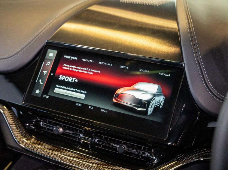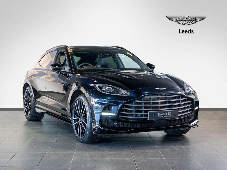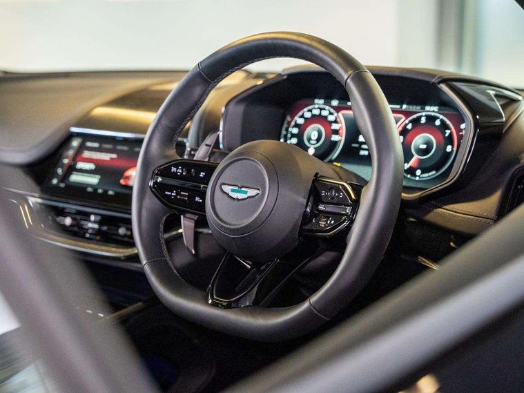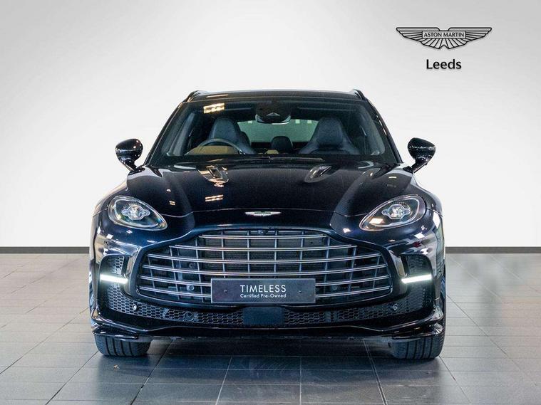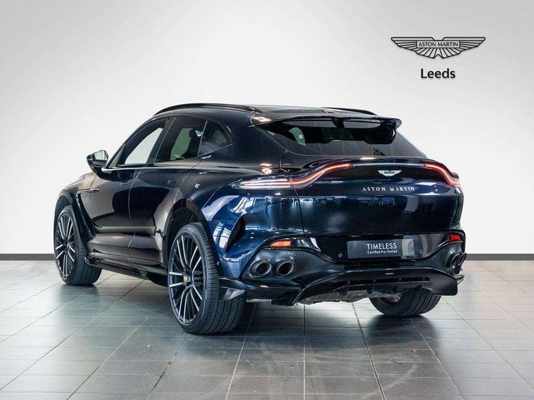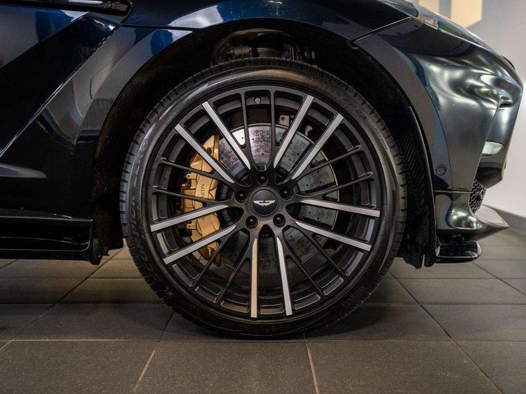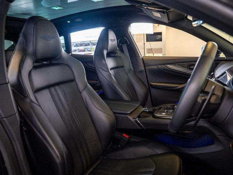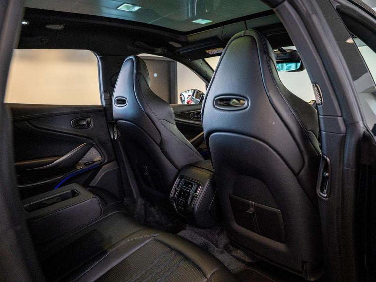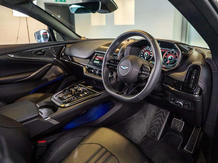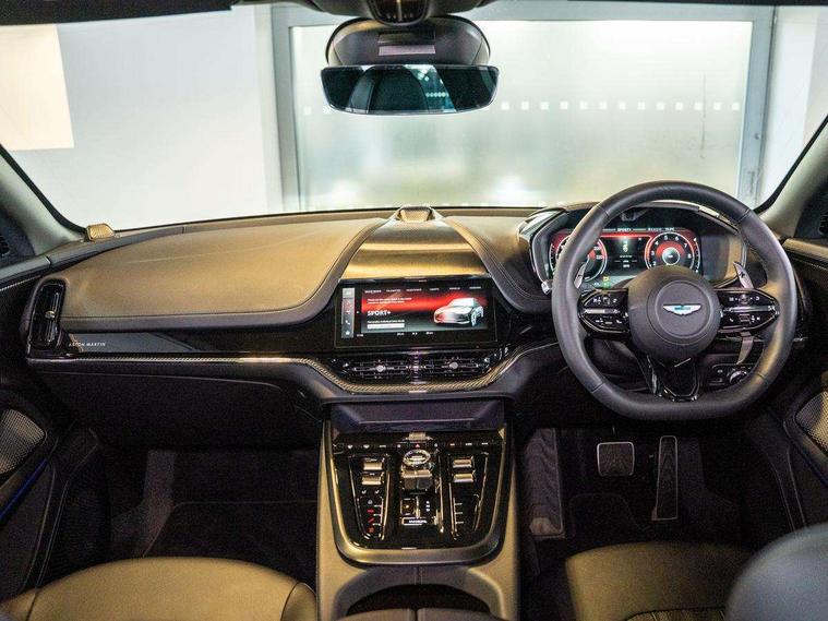 10.25" TFT centre display, 12.3" TFT instrument display, Adaptive cruise control, Apple car play/Android Auto, Aston martin satin chrome designer key, Blind spot monitoring, Bluetooth telephone connectivity, Brake pad wear indicator, Drive modes Terrain, Individual, GT, Sport, Sport + including launch control, eCall emergency call system, Electric power assisted steering (EPAS), Forward collision warning, Front parking aid with visual indicator, Inductive phone charger, Infotainment touchpad and dial, Lane change warning, Lane departure warning system (LDW), Lane keep assist, Outside temperature display, Park assist system, Rear crossing traffic warning, Rear parking aid with visual indicator, Rotary dials, Rotary infotainment system interface, Satellite navigation system, SOS emergency call button, Speed limiter, Standard underbonnet, Stop/start system, Surround camera system with deploying rear camera, Traffic sign recognition, Voice control system, 9 speed automatic transmission, Active centre transfer case, Adaptive triple chamber air suspension, All Wheel Drive (AWD), Battery conditioning connector, Electric active roll control, Electric limited slip rear differential, Electronic adaptive damping system, AM/FM radio, Aston martin premium audio, Bluetooth audio streaming, DAB Digital radio, SD card slot, USB port, 3rd brake light, Acoustic laminated front windows, Active rear brake lights, Approach Illumination, Auto dimming interior rear view mirror, Automatic headlights, Automatic high beam - AHB, Bi LED headlights, Body colour side vent, Carbon fibre rear wing lip spoiler, Electric windows, Fixed panoramic glass sunroof, Heat insulating glass, Heated rear window, Horizontal DRL/turn indicator design with larger air intakes and brake cooling grilles, LED centre high mounted stop light, LED daytime running lights, LED rear fog light, Matte black mesh bonnet vents, Power foldback door mirrors, Rain sensing windscreen wipers, Rear bumper design with integrated quarter panel vents, Rear side wing doors, Rear wiper, Sport exhaust, Standard paint protection film, 12V power sockets, 16 way electric front seats with memory, 3 seat bench in 2nd row, 40:20:40 split folding rear seats, Ambient lighting, Anodised aluminium sill plaques with aston martin wings, Automatic climate control, Black loadspace carpet, Courtesy Light, Embossed - Aston martin wings, Front and rear door pockets, Front centre console storage cover, Front head restraints, Gloss black double layer side sills, Glovebox with electric locking, Heated seats, Isofix/I size rear outer, Load rails in load space, Load tie downs in load space, Lower front console storage, Map pocket on front seat storage, Rear head restraints, Single front passenger seat, Soft close doors, Sports plus seats, Stainless steel sill protector in load space, Twin cupholders in front and rear, Twin front centre armrest, Twin sunvisors with illuminated vanity mirrors, 3x3 point rear seatbelts, Airbags - Driver and front passenger and knee, Anti theft locking wheel bolts, Anti-lock braking system (ABS), Auto vehicle hold function, Autonomous emergency braking, Carbon ceramic disc brakes, Door exit warning, EBD - Electronic brakeforce distribution, Electric parking brake (EPB), Emergency brake assist, ESC (Electronic Stability Control), Front thorax airbags/Side curtain airbags, HDC - Hill descent control, High performance braking system, Hill start assist, Intelligent wet brake control, Rear child proof door locks, Rear thorax airbags, RSC - Roll stability control, Seatbelt pre-tensioners, Seatbelt status indicator, Torque vectoring brake, Traction control, Tyre pressure monitoring system, Warning triangle, Alarm/immobiliser, Keyless entry with start/stop button, Remote central locking, Seat perforaton elegant, Seat quilting elegant,