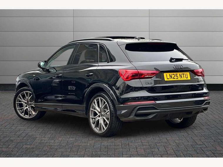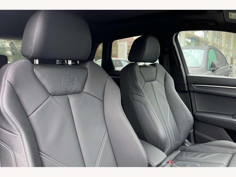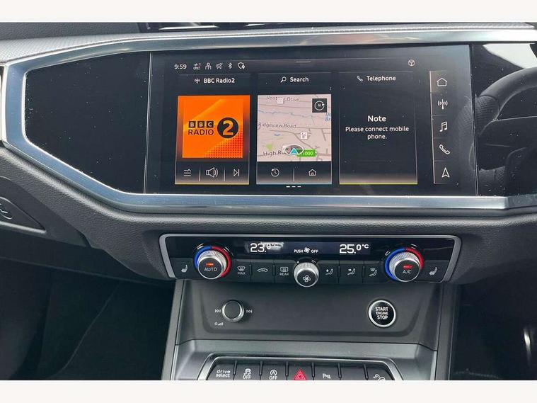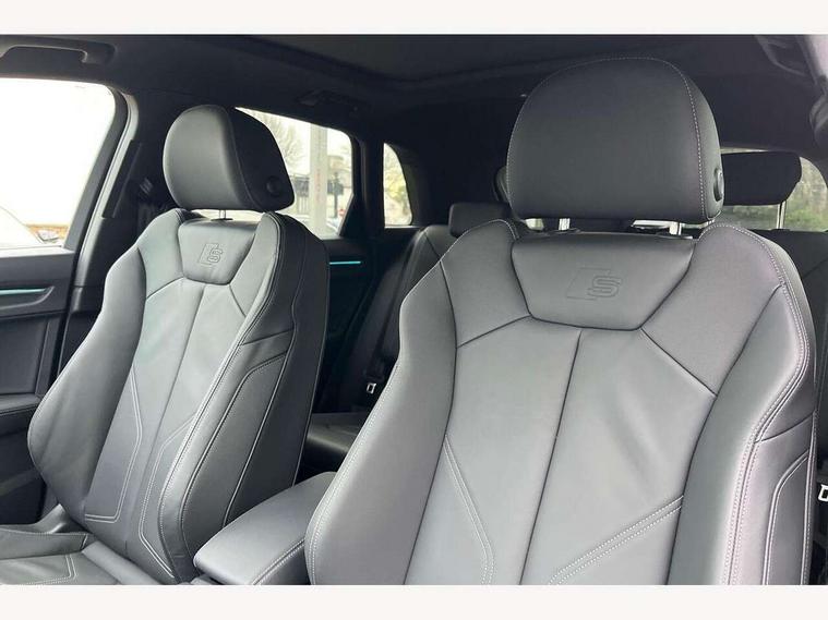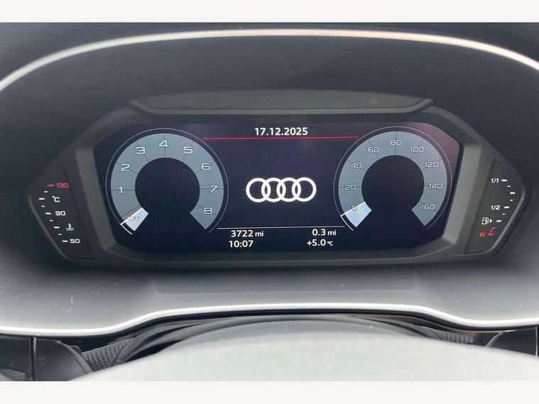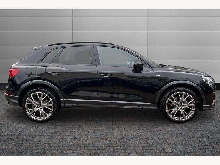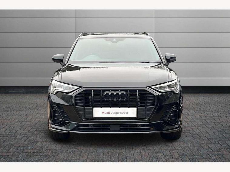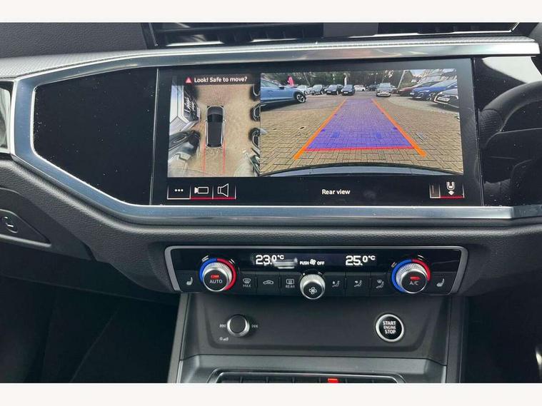 Amazon alexa Integration, Audi connect safety and service, Audi drive select, Audi lane departure warning, Audi Virtual Cockpit - 10.25" display, Bluetooth interface, Camera based traffic sign recognition, Distraction and Fatigue warning, Legal emergency call, MMI Navigation Plus with high resolution 10.1 inch touchscreen colour display, Power operated tailgate, Progressive steering, Service interval indicator, Smartphone interface includes wireless Apple carplay/Android Auto, Start stop system with recuperation, Voice control system with natural language interaction, Sports suspension, 2 USB-C ports with charge and data functions, 6 passive loudspeakers, DAB digital radio module, Acoustic windscreen, Audi Beam uses LEDs to project the Audi logo onto the ground as you exit your Q3, Auto dimming door mirrors, Auto dimming frameless rear view mirror, Black roof rails, Electrically folding, adjustable and heated door mirrors with integrated LED side indicators and kerb view function for passenger side, Front and rear electric windows, Front fog lights, Grille vertical bars in aluminium silver/Matt, High gloss black finish B and C pillars, LED Dynamic rear indicators, LED headlights with LED daytime running lights, LED rear lights, LED third brake light, Privacy glass dark tinted rear and rear-side windows (from B-pillar backwards), Rain and light sensors, Rear diffuser grille in grained matt black, Rear diffuser strip in matt anthracite black, Rear side wing doors, Rear wiper, S line bumpers in contrasting Manhattan grey, Variable front intermittent wipers, 12V socket in rear centre console, 3 seat bench in 2nd row, 40:20:40 folding with manual adjustment for 60:40 forwards/backwards position and backrest angle, Adjustable rear seat bench/backrest with centre armrest and cupholder, Black cloth headlining, Dual zone electronic climate control, Electric lumbar support, Front and rear black floor mats with contrast stitching in rock grey, Front and rear headrests, Front centre armrest, Height and reach adjustable steering wheel, Illuminated door sill trims with S logo, ISOFIX child seat mounting for front passenger with airbag deactivation and outer rear seat including top tether attachment point for outer rear seats, Manual front seats with height adjustment, Perforated leather gearknob, Single front passenger seat, Stainless steel luggage compartment sill finisher, Stainless steel pedals, Twin leather upholstery with front sport seats + S embossing, Black styling pack - Q3, Non smoking pack - Q3, 3x3 point rear seatbelts, 6 airbags - Driver, front passenger, curtain and side windows, Audi pre-sense front with pedestrain and cyclist recognition, Electrically operated child locks on rear doors, Electromechanical parking brake, Electronic stabilisation control including ABS, ASR and EDL, Front seatbelt reminder, Hill descent control, Hill hold assist, Pre sense basic, Seatbelt monitoring, Tyre pressure warning, Warning triangle and first aid kit, Anti theft wheel bolts, Immobiliser, Remote central locking, Thatcham approved category 1 anti theft alarm, Aluminium look interior elements, Detail dashboard around MMI touch colour display in glass look, black with surround in aluminium look, Leatherette door armrest, Piano black inlay,
