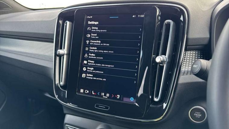 12.3" Progressive Driver Display, 9" centre console portrait touch screen, Adjustable steering wheel force, Android auto (Wired), Apple carplay (wired), Bluetooth handsfree system, Driver alert control, Driver assistance (pilot assist and adaptive cruise control), Driver awareness - Blind spot information system with steer assist, cross traffic alert with autobrake and rear collision warning and mitigation, E-call, Front park assist, Google automotive services - Enabled entertainment apps, navigation with google maps, voice recognition with google assistant, Hands free power tailgate, Intelligent speed assistance, Lane keeping aid, Oncoming Lane Mitigation, Rear park assist, Speed sensitive steering, Volvo cars services with app - Driving journal, emergency and breakdown call, engine remote start, remote door locking/unlocking and vehicle dashboard, Wireless/Inductive Mobile Phone Charging, Automatic transmission with start/stop and manual change functions, Dynamic chassis, DAB Digital radio, Steering wheel mounted remote controls, Adaptive brake lights with high level LED brake lights, Auto dimming feature for exterior door mirrors, Auto dimming interior mirror, Automatic headlamp levelling, Automatic LED Headlights + Active high beam incorporating daytime running lights, Front aluminium tread plates, Front and rear electric windows, High gloss black front and rear skid plate, High gloss black front bumper deco, High gloss black mesh front grille with high gloss black surround, High gloss black window trim, Home safe and approach lighting, Integrated roof rails in high gloss black, LED front fog lights, Puddle lights, Rain sensor with automatic windscreen wiper activation, Rear side wing doors, Rear wiper, Roof antenna, Roof spoiler, Visible VIN plate, 12V socket in front tunnel console and luggage compartment, 2-Zone electronic climate control with CleanZone air quality system and pollen filter, 3 seat bench in 2nd row, 3 Spoke tailored steering wheel with chrome trim, 60/40 versatile split folding rear seat, Centre console cupholders and storage, Charcoal headlining, Connect textile/microtech upholstery, Flexible load floor and grocery bag holder, Floor mats, Front cabin courtesy lights, Front door pocket, front cupholder, ambient front door, rear reading, rear courtesy, instrument panel and tailgate lighting, Front footwell illumination, Front headrests, Front reading lights, Front seat cushion extensions, Front side step illumination (under door), Glovebox bag hook, Heated front seats, Height adjustable passenger seat, Height/reach adjustable steering column, High gloss centre tunnel deco, Illuminated glovebox, Illuminated luggage compartment, Illuminated vanity mirrors + ticket holder, Integrated waste bin, Isofix attachments on outer rear seats, Load cover, Load protection net, Multi directional lumbar support for driver and passenger seat, Power driver seat with memory + exterior mirrors memory, Rear armrest with cupholders, Rear headrests, Single front passenger seat, Underfloor cargo storage, Climate pack without heated front seats - XC40, 3x3 point rear seatbelts, City safety with steering support with Pedestrian + cyclist + front collision warning with full auto brake and rear auto brake, Driver and passenger airbags, Drivers knee airbag, Electronic parking brake with auto hold, First aid kit, Front and outer rear seatbelt reminder and pretensioners, Front seats SIPS airbags, Hill descent control, Hill start assist, Inflatable curtain, Passenger airbag cut-off device, Power child locks on rear doors, Road sign information display, Run off Road Protection, SIPS (Side Impact Protection System), Slippery road and hazard light alert, Stability and Traction Control with Spin control, Engine Drag Control and Corner Traction Control, Tyre pressure monitoring system, Vehicle deceleration control with Anti-lock Brake System, Electronic Brake Distribution and Emergency Brake Assist, Warning triangle, WHIPS whiplash protection system - front, 2 x Key integrated remote control central locking including with deadlocking system and auto open/close windows, Anti-theft alarm including immobiliser/volume sensor + level sensor, Keyless drive includes keyless entry and keyless start, Locking wheel nuts,