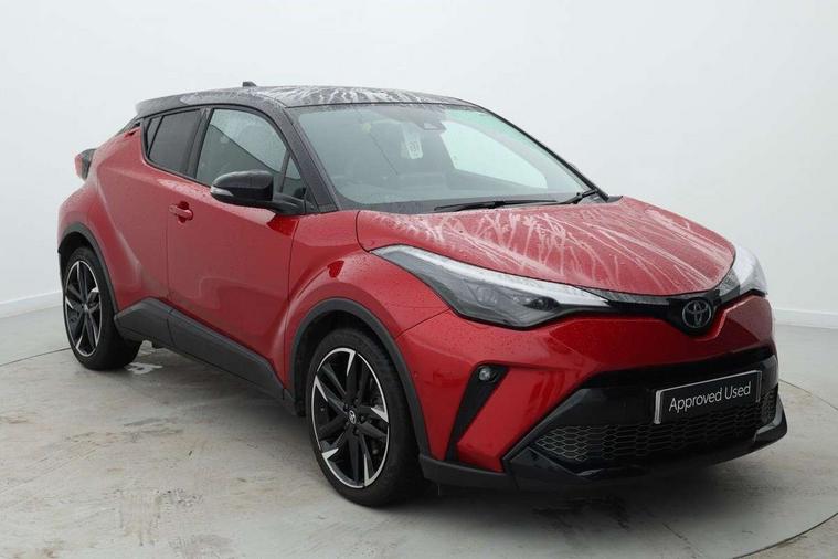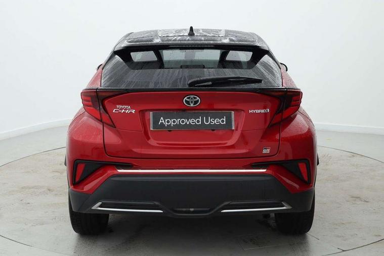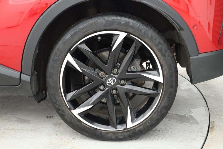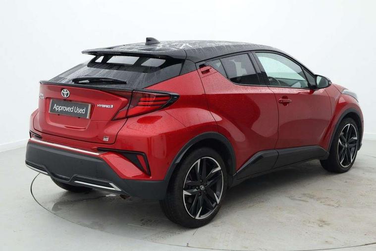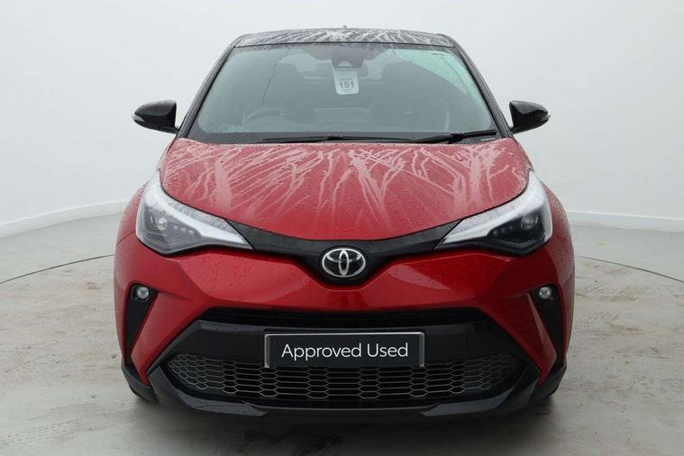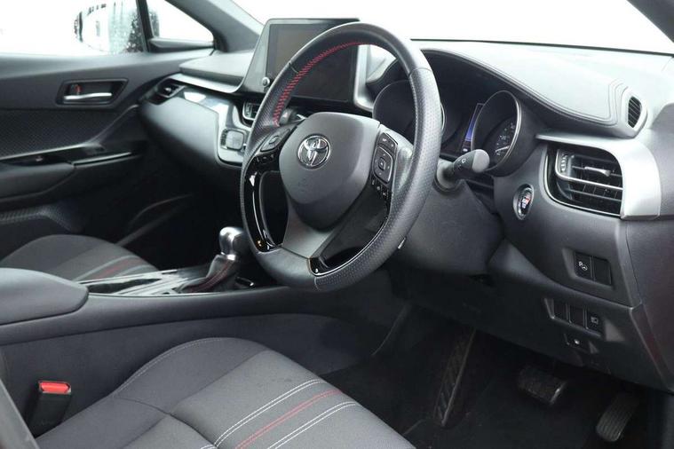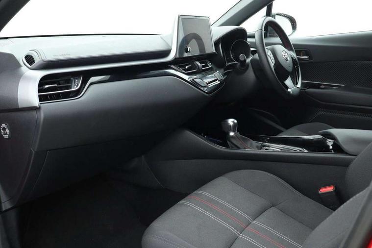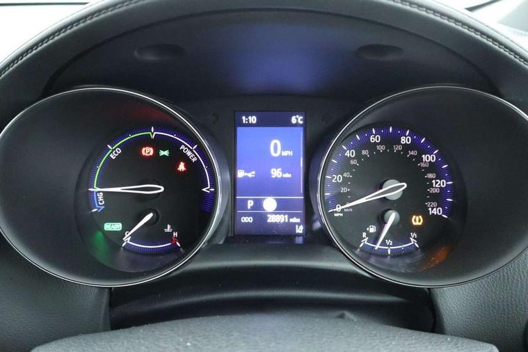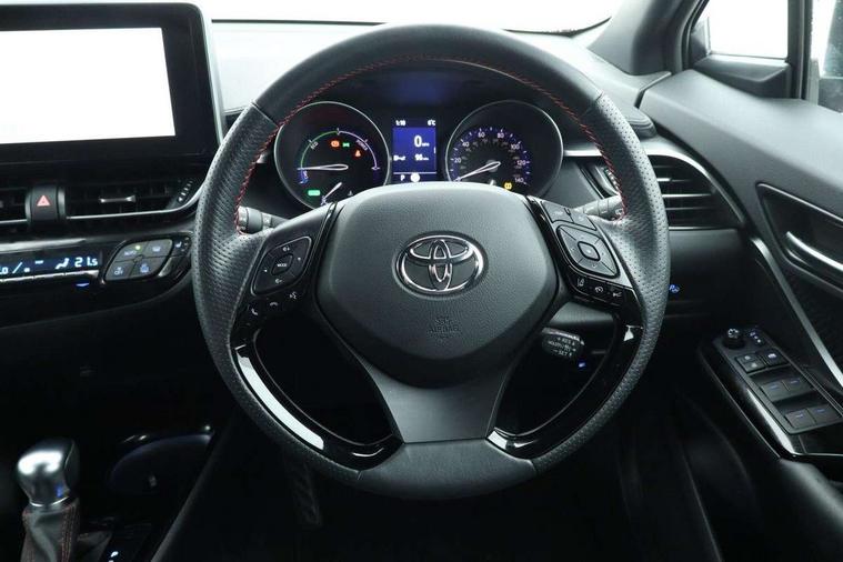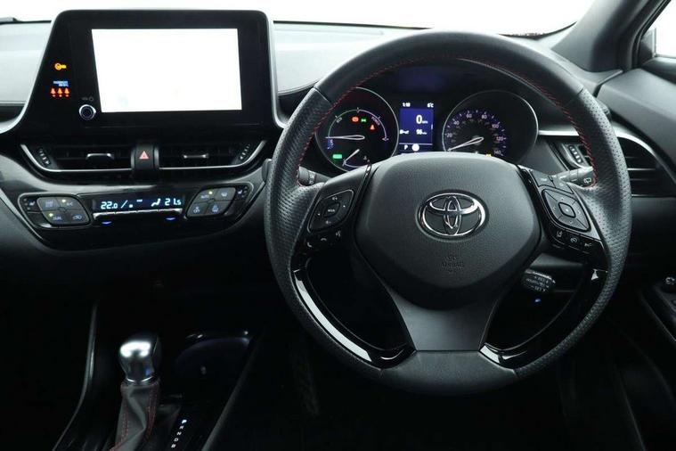4.2" coloured TFT screen for multi-information display, Adaptive cruise control, Bluetooth connectivity, E-call, Electric power steering, Hybrid system indicator, Lane departure alert with steering control, Lane trace assist, Push button tailgate release, Remote boot door release in cabin, Remote boot door release in key, Reversing camera, Road sign assist - RSA, Simple Intelligent parking assist, Smart voice assist, Touch 2 Go navigation system, Trip computer, Voice recognition, Wireless smartphone integration, Vehicle Stability Control (VSC), 6 speakers, AM/FM radio, DAB Radio (Digital Audio Broadcasting), Toyota touch 2 multimedia system with 8" display, USB connector, Wi-fi connectivity, Adaptive front light system, Adaptive LED Headlights, Anti-jam protection on power windows, Auto high beam, Auto up and down function on all power windows, Automatic headlight levelling, Automatic headlights, Automatic headlights cut-off, Black and body coloured rear bumper, Black upper front grille, Body colour door handles, Body colour door mirrors, Body coloured front bumper, Boot door release with push button, Chrome front lower bumper, Electric heated door mirrors, Follow me home headlights, Front and rear power windows, Front spoiler lip in black, Headlight cut off reminder, Honeycomb lower front grille, LED daytime running lights, LED fog lights, LED front light guide, LED High mounted stop light, LED rear brake lights, LED rear combination lights, Noise reduction layer on front windows and windscreen, Power adjustable door mirrors, Privacy glass, Rain sensor, Rear sequential indicators, Rear side wing doors, Rear spoiler, Rear tailgate, Rear window defogger, Rear window wiper, Shark fin antenna, UV-filter on driver and passenger windows, UV-filter on rear windows, 12v power outlet - front, 3 rear headrests, 3 seat bench in 2nd row, 3 spoke perforated leather steering wheel, 60/40 split folding rear seat, Adjustable rear headrests, Adjustable speed limiter switch on steering wheel, Assist grips front and centre pillar, Audio and telephone switches on steering wheel, Black front door assist grips, Blue ambient lighting on front cup holders, Blue ambient lighting on front doors, Boot light, Chrome interior door handles, Cloth upholstery, Driver and front passenger personal light, Driver and front passenger Whiplash Injury Lessening seats, Driver and passenger seatback pockets, Dual zone automatic air conditioning, Floor mats, Front cupholders, Front head restraints, Front sports seats, Glovebox with internal light, Hard tonneau cover, Heated driver and front passenger seats, Hooks for luggage holding net, Humidifying Nanoe air purifier, Illuminated entry system, Isofix attachments on outer rear seats, Leather gearshift, Light on driver sun visor, Light on passenger sun visor, Manual telescopic steering wheel, Manual tilt steering wheel, Manually height adjustable driver seat, Manually height adjustable front passenger seat, Manually reclining driver seat, Manually reclining front passenger seat, Manually sliding driver seat, Manually sliding front passenger seat, Microphone on front personal light, Mirror on driver sun visor, Mirror on passenger sun visor, Multimedia switches on steering wheel, Pollen filter, Power adjustable lumbar support on driver seat, Shopping bag hooks, Single front passenger seat, Slow opening on lower glovebox, Voice recognition switch on steering wheel, Tech with parking sensor pack - C-HR, 16 Disk front wheel brake, 3x3 point rear seatbelts, ABS+EBD+Brake assist, Electronic parking brake, Front and rear seatbelt reminder, Front passenger airbag on/off switch, Hill start assist control (HAC), Pre collision system with pedestrian detection, Pre-tensioners and force limiters, Rear door child safety locks, SRS Airbags - Driver + Front passenger, front side, front and rear curtain and driver's knee airbags, Toyota safety sense, Tyre pressure monitoring system, Tyre pressure warning system, Acoustic vehicle alert system (AVAS), Glass-breaking alarm sensors, Immobiliser, Intrusion alarm, Intrusion sensor, Motion sensor alarm, Power door locks, Power passenger window lock, Remote central locking, Black lower dashboard, Black upper dashboard, Piano black console, Silver deco line on upper dashboard, 19" Black machined alloy wheels, Tyre repair kit,