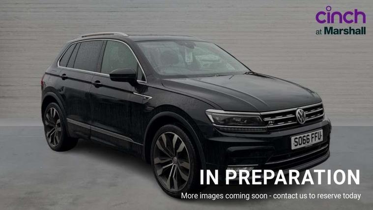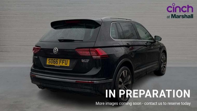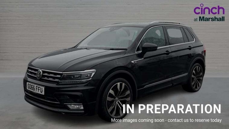 App-Connect, Active information display, Adaptive cruise control, Bluetooth phone integration system, Instrument cluster, Lane assist, Low washer fluid warning light, Outside temperature display, Service interval indicator, Warning lights, Diesel particulate filter, Sports suspension, Aux-in socket, DAB Digital radio, SD card slot, USB connection, Auto dimming interior mirror, Body colour door handles, Body colour door mirrors, Body colour rear spoiler, Body coloured bumpers, Chrome side window surrounds, Chrome trimmed radiator grille, Coming/leaving home lighting function, Dual chrome exhaust, Elec heated + adjust door mirrors, Electric folding door mirrors, Electric panoramic sunroof with sunblind, Front and rear electric windows, LED headlights with dynamic light assist daytime running lights and cornering front fog lights, Piano black rear diffuser, R Line body kit, Rain sensor windscreen wipers, Silver roof rails, Silver under body guard, Tinted windows (B pillar backwards), Twin trapezoid chrome exhaust pipes, 14 way electric adjustable front seats with drivers memory and massage function, 3 rear headrests, 3 zone climate control, 4 load lashing points, 40:20:40 split folding rear seats, Bag hook in luggage compartment, Black headlining, Driver + front passenger lumbar support, Front + rear carpet mats, Front centre armrest with 12v socket, Front centre armrest with storage + rear 2 air vents + cupholders, Front seatback folding tables, Height adjustable front seats, Height/reach adjust steering wheel, Illuminated driver/passenger vanity mirrors, Illuminated scuff plates, Interior light with delay, Isofix Preparation 2 Rear child seats, Leather gear knob, Leather multifunction steering wheel, Lockable cooled glovebox, Luggage compartment lighting, Map pockets on front seats, Rear cupholders, Removable luggage cover, Sliding/reclining rear seats, Stainless steel pedals, Storage compartment in driver's door, Storage compartment in passenger's door, Storage drawers under front seats, Storage tray on dashboard, Sunglasses storage, Variable boot floor, Ambient lighting pack - Tiguan, 3 rear 3 point seatbelts, ABS+EBD+Brake assist, Active bonnet, Active pedestrian safety system, Curtain airbags, Driver/Front Passenger airbags, Driver/Passenger whiplash optimised head restraints, Drivers knee airbag, Electronic parking brake with auto hold, ESP with EDL + ASR, First aid kit, Front assist including city emergency braking, Front side airbags, Head airbag system, Height adjustable front 3 point seatbelts + pretensioners, Hill hold control, Passenger airbag deactivate switch, Passenger knee airbag, Pre crash system, Rear side airbags, Seatbelt warning lamp and buzzer, Warning triangle, Alarm with interior protection, Electronic engine immobiliser, Chrome door trim inserts, Piano black interior trim, 20" Suzuka alloy wheels + anti theft wheel bolts, Steel space saver spare wheel,