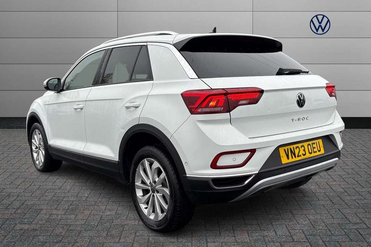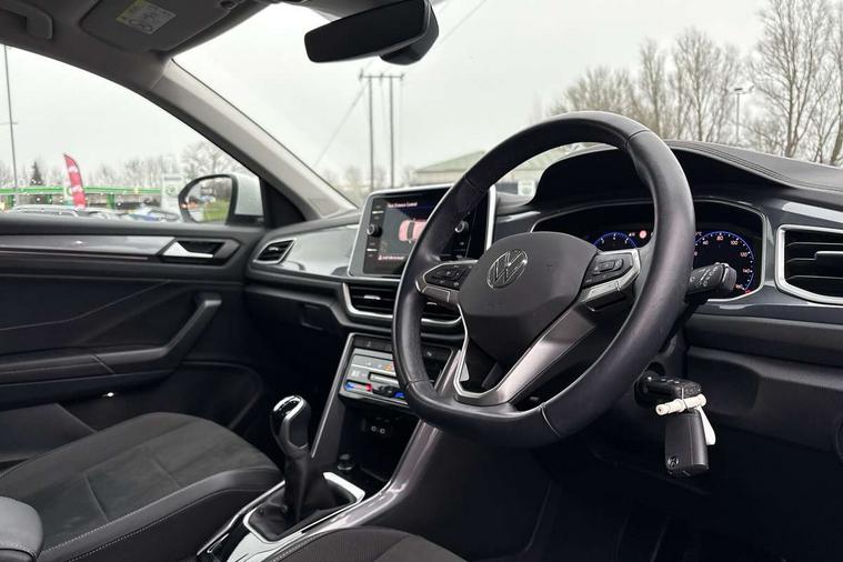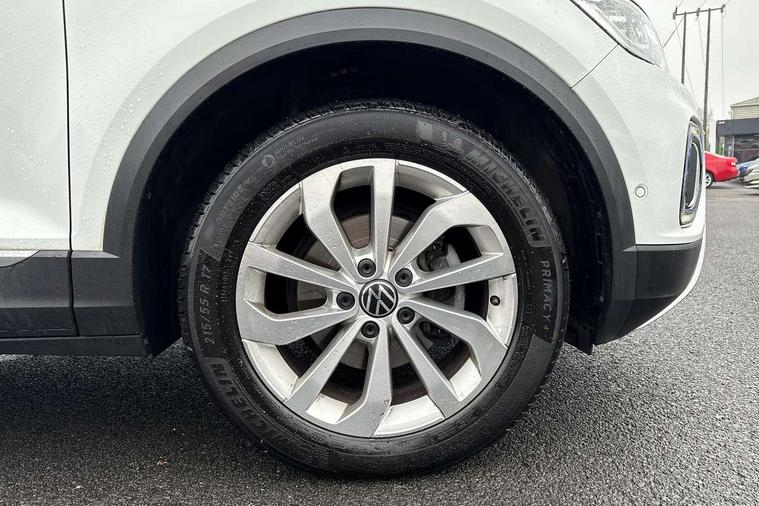 10.25" Digital cockpit pro, Bluetooth mobile phone interface, Driver alert system with fatigue detection, Driver tips and journey analysis, Dynamic road sign display, Emergency call service, Lane keeping system Lane Assist, Modified key software - reduce switch off time for key status change to Long no motion, Online services, Park assist including front and rear parking sensors, Power assisted speed sensitive steering, Service interval indicator, Tailgate/trunk lid release from outside, Think blue trainer driver tips and journey analysis, Warning sound and light for front seatbelts unfastened, Wireless app connect, Battery regeneration during braking, Front shock absorption, Rear shock absorption chassis with increased ride height, Start/stop function with battery regeneration, Diversity antenna for FM reception, Music playback - MP3, WMA and AAC files, Premium USB cable in choice of either Apple or Android smartphone compatibility, SD card slot, Simultaneous pairing of 2 compatible mobile devices, Title and cover art display, We Connect and We Connect Plus functionality, 3rd brake light, Auto dimming interior rear view mirror, Automatic hazard lights activation under emergency braking, Automatic headlight control with LED separate daytime running lights with coming/leaving home function, Body colour sports bumpers with silver metallic underbody fascia, Dynamic headlight range control with self adjusting whilst driving, Extended roof spoiler, Exterior mirrors aspherical on driver side, convex on front passenger side, External USB type C socket and charging sockets, Front windscreen wiper with intermittent wipe and 4 position delay, Heated rear window, LED rear combination lamps, LED rear number plate lights, LED tail lamp rear comination lamps, Light mode for poor weather, rain, fog or snow, Power windows with comfort operation and circuit breaker, Rain sensor, Rear exhaust tailpipe, Rear fog light on one side and reversing lights on both sides, Rear side wing doors, Rear wash/wipe with intermittent wipe setting, Remote electrically foldable door mirrors, puddle lights and reverse activated passenger's door mirror, 12V power socket in centre console, 3 rear head restraints, 3 seat bench in 2nd row, 4 load lashing points in luggage compartment, Air care climatronic air conditoning system with active combination filter and 2-zone temperature control, Chrome plated radiator grille inserts, air vent surrounds and light switch surrounds, Door and side trim panel with leatherette insert, Drawer under drivers seat, Front + rear carpet mats, Front centre armrest, Front comfort sports seats, Front cupholders x 2, Front footwell illumination, Instrument lighting, white adjustable panel illumination, Interior ambient lighting and surround lighting, Interior light delay, Isofix child seat preparation, Leather gearshift handle, LED interior light with switch off delay/dimmer and 2 front/rear LED reading lights, Load-through provision with cup holder when folded down ('Unsplit rear seat bench, split folding backrest, with centre armrest), Luggage compartment lighting, Non-folding front passenger seat backrest, Single front passenger seat, Storage compartment in left and right luggage area, Storage compartment in rear doors, Storage compartments in driver and front passenger doors, Sunvisors with illuminated vanity mirrors, Variable boot floor, height adjustable and removable, Driver assistance pack without proactive passenger protection - T-Roc, 3 point height adj front seatbelts + pretensioners, 3 point seatbelts in outer rear with ECE label, ABS, Child locks on rear doors, Driver and front passenger airbag with front passenger airbag deactivation, Driver and front passenger safety-optimised head restraints, Drivers seatbelt reminder, Electronic parking brake, Electronic Stability Control (ESC) inc EDL (Electronic Differential Lock) and ASR (Traction Control), Front and rear passengers curtain airbag system including front side airbags, Front assist with city emergency braking and pedestrian monitoring, Front disc brakes, Front seat side impact airbags, Predictive pedestrian protection, Rear disc brakes, Single tone horn, Tyre pressure loss indicator, Volkswagen roadside assistance, Anti-theft alarm system with interior monitoring, backup horn, and towing protection, Remote central locking with SAFELOCK, radio remote control with 2 remote control folding keys, Trims for alloy wheels,